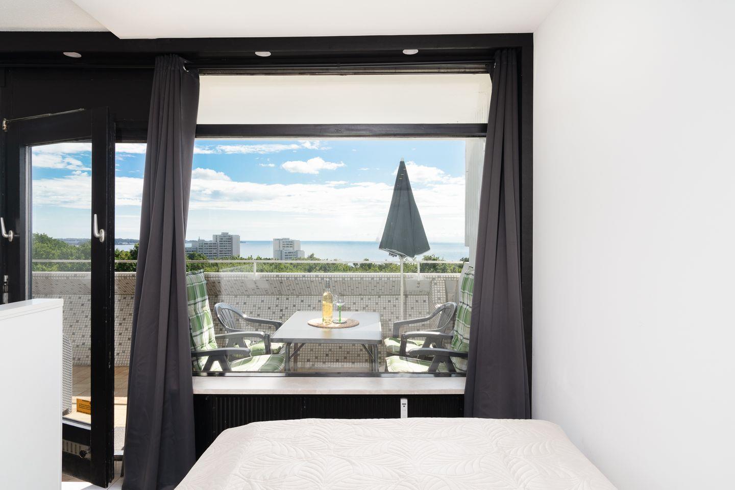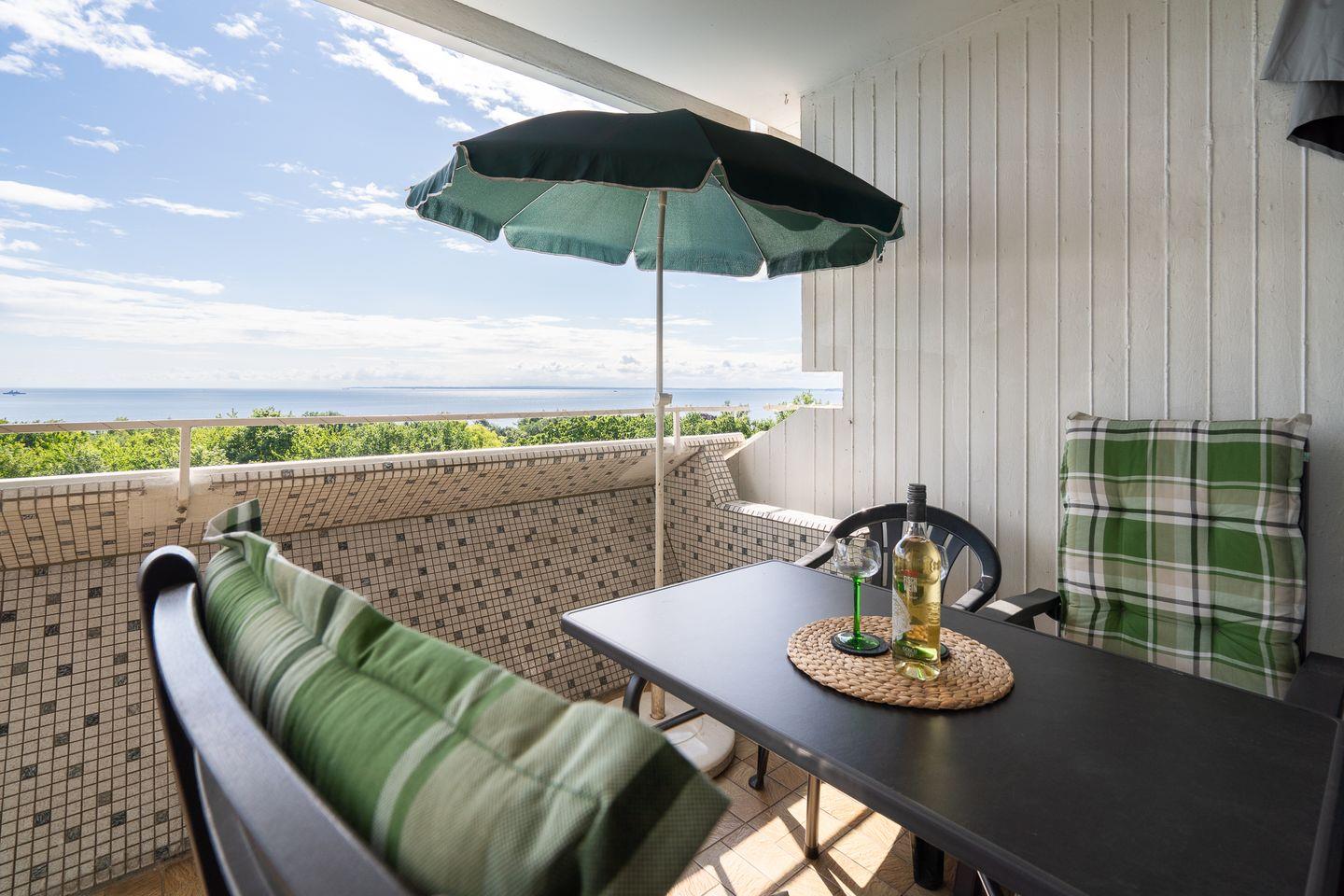Early Birds genießen auf der großzügigen, überdachten Loggia den traumhaft schönen Sonnenaufgang über der See und Spät(er)aufsteher nehmen Ihr Frühstück in der Morgensonne mit Blick über die Lübecker Bucht ein! Und wer länger in den Federn bleibt, dem schmeckt der erste Kaffee im Bett mit Seeblick!