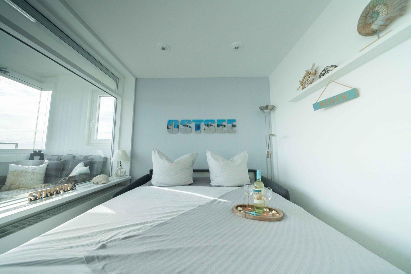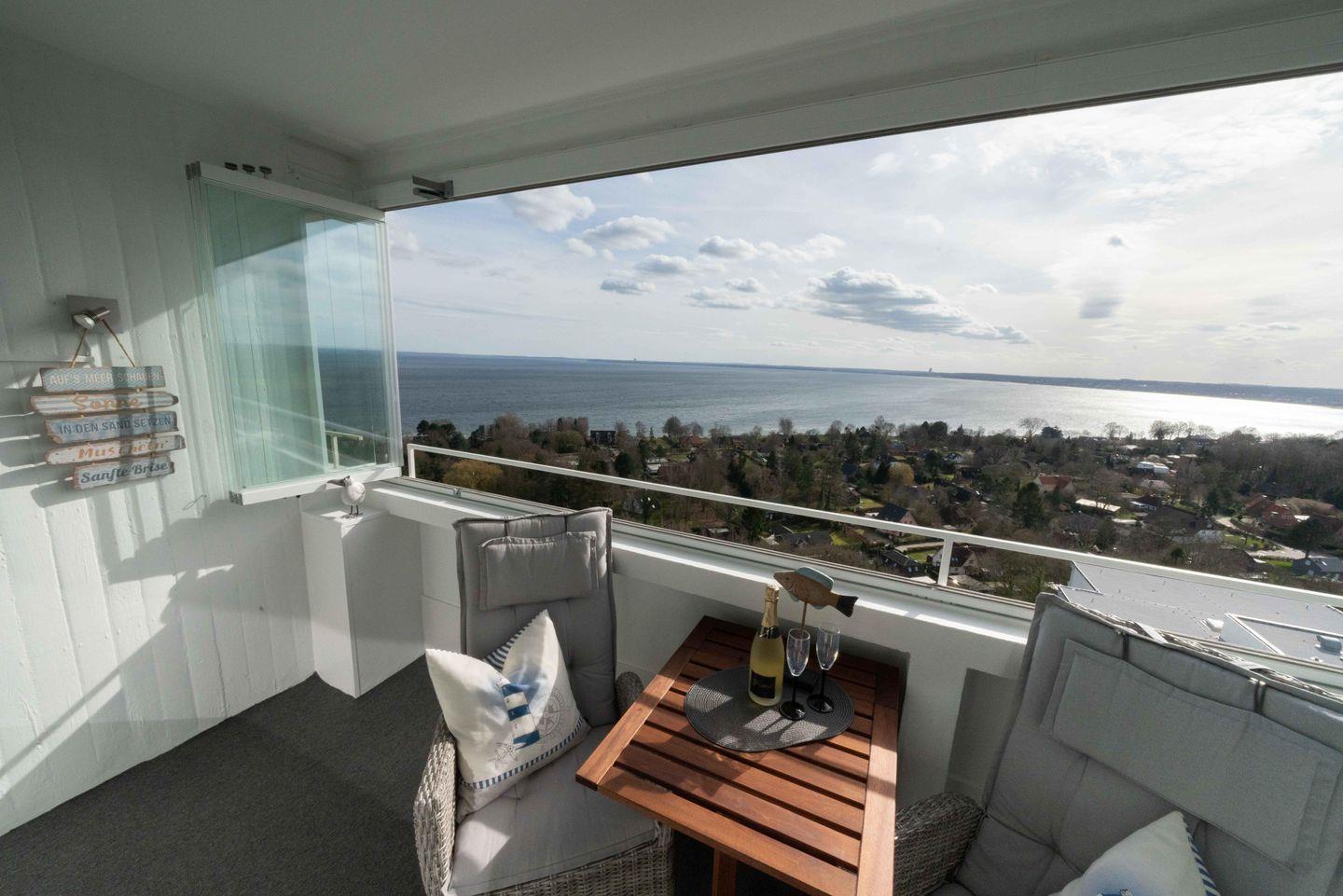 Mega-Ausblick direkt auf die Lübecker Bucht - inkl. Strandkorb, WLAN, Stellplatz, 2 Zimmer, verglaster Balkon, modern eingerichtet , ...,