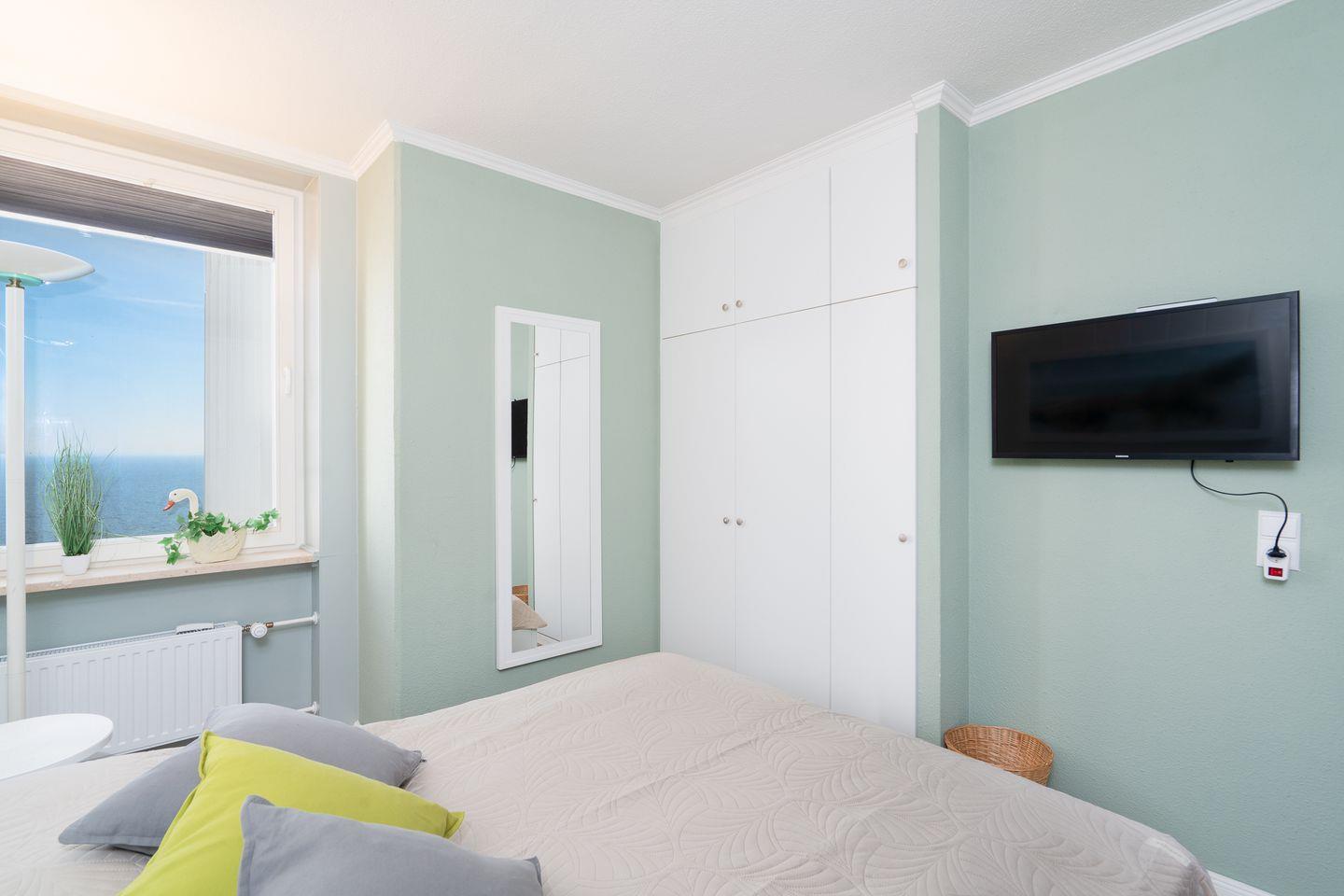 Diese helle und schöne 2-Raum-Ferienwohnung ist ein wunderbares Feriendomizil. Vom Balkon haben Sie einen herrlichen Blick auf die Ostsee. Die Küche ist mit Spülmaschine, Backofen und Herd ausgestattet und mit einer Durchreiche zum gemütlichen Wohn-/Essbereich hin offen. Der Schlafraum hat ein Doppelbett, ein zusätzliches TV-Gerät und ein Fenster mit Meerblick. Im Wohnbereich steht zum ein Schlafsofa. Das Duschbad ist innenliegend. Zum Strand sind es nur wenige Fußschritte. WLAN inklusive.
