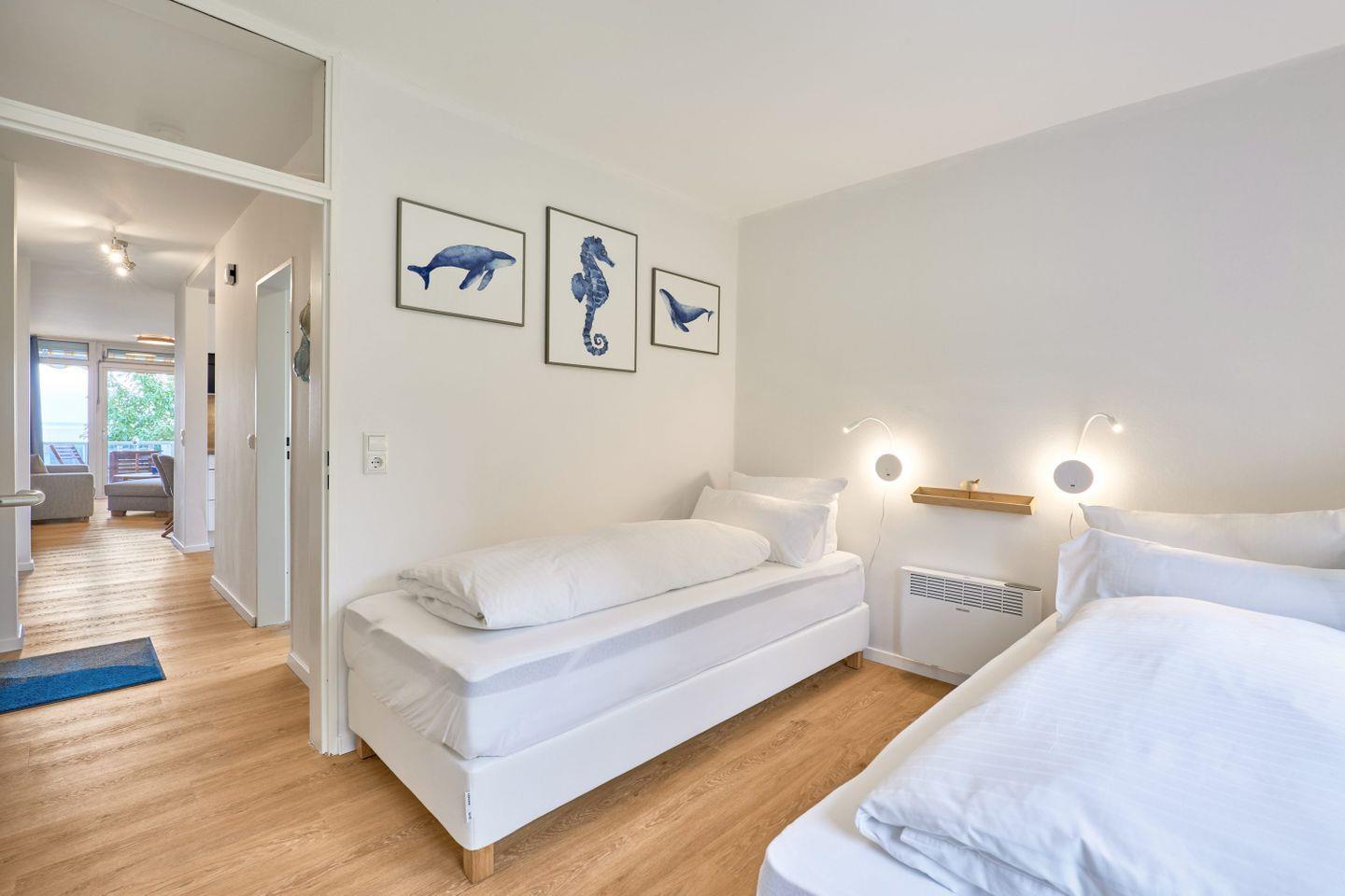 Die Wohnung befindet sich in einer Sackgasse, fernab vom Trubel, was für eine besonders entspannte Atmosphäre sorgt. Mit zwei Schlafzimmern ist genügend Platz für bis zu 4 Personen vorhanden. Das Hauptschlafzimmer ist mit einem gemütlichen Doppelbett ausgestattet, während das zweite Schlafzimmer mit zwei Einzelbetten ideal für Kinder oder Freunde ist. Beide Schlafzimmer verfügen über Smart-TVs für Ihr Entertainment.