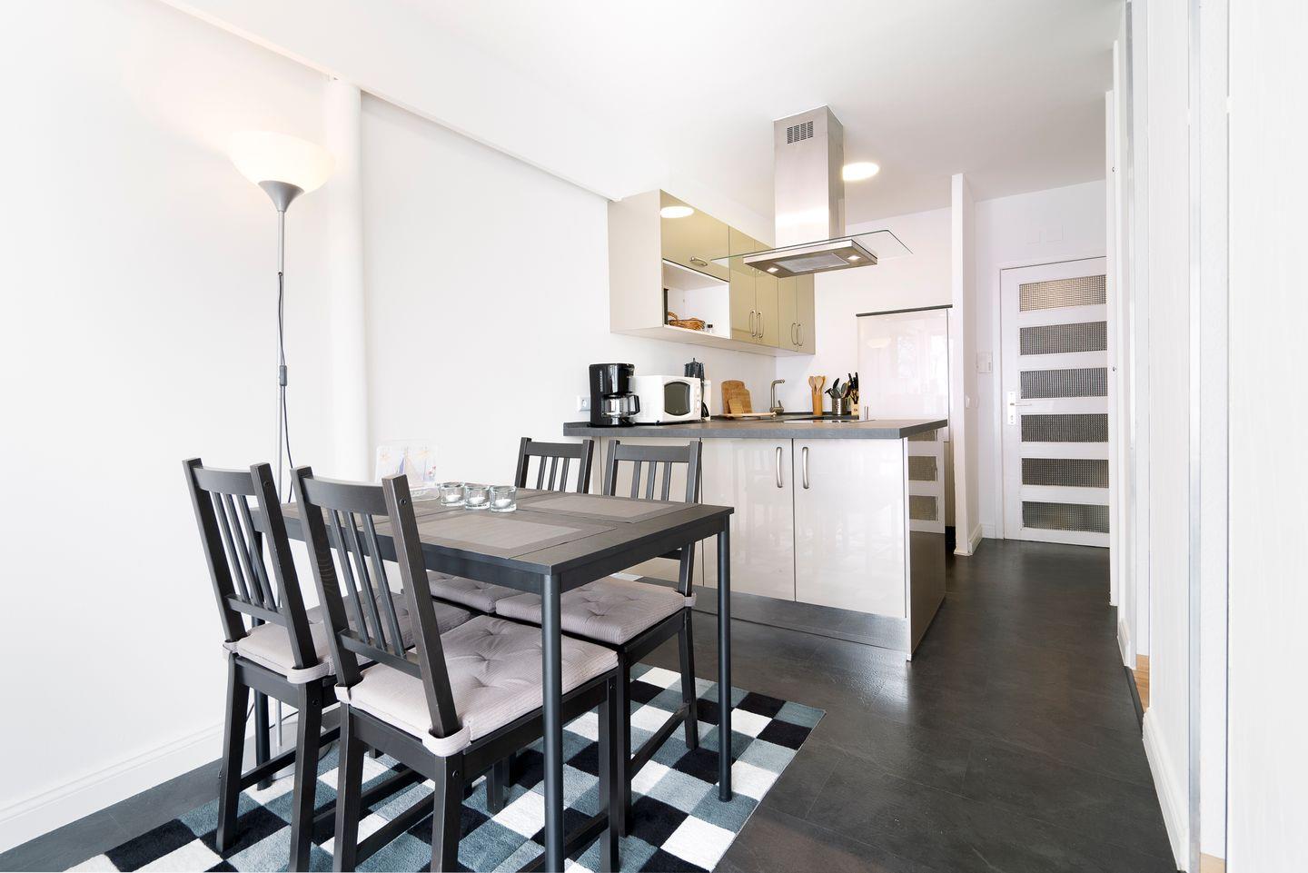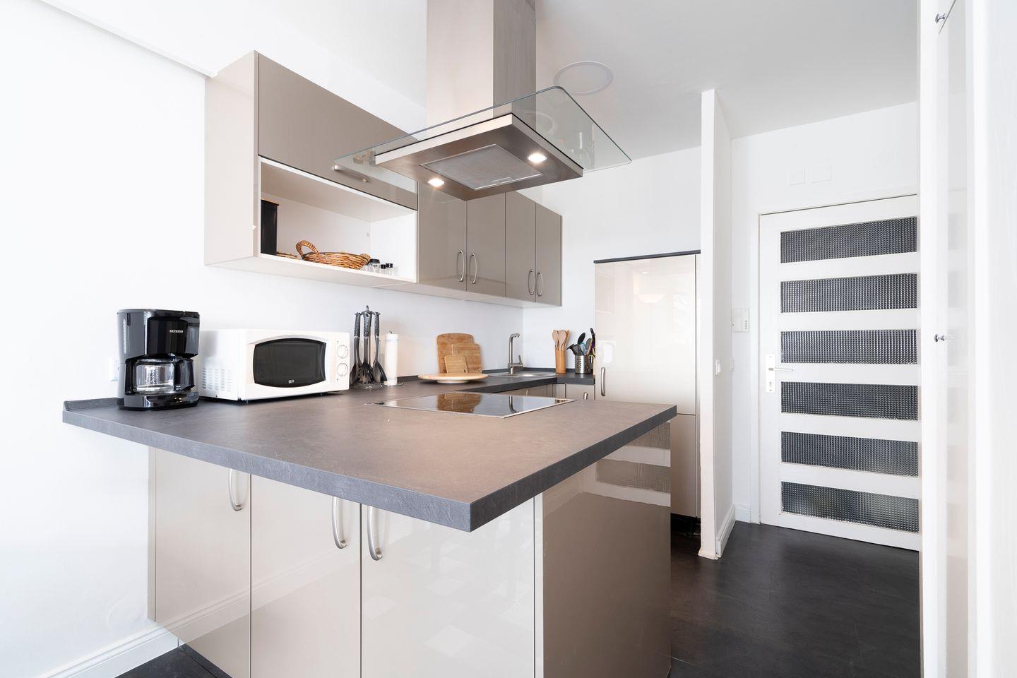 Genießen Sie auf dem großzügigen Balkon in Südlage die Sonne und lassen Sie Ihre Seele baumeln! Vom kombinierten Wohn- und Essbereich mit offener Küche haben Sie Zugang zum möblierten Balkon. Die Küche ist mit Spülmaschine, Backofen und Herd ausgestattet. Das Schlafzimmer verfügt über ein bequemes Doppelbett (2x 90 cm x 200 cm) und ist optisch durch Raumteiler vom Rest der Wohnung getrennt. Auf dem Schlafsofa (140 cm x 200 cm) im Wohnbereich ist Platz für zwei weitere Personen. Das moderne Bad ist mit einer bodentiefen Dusche und einem kleinen Fenster ausgestattet. Zum Strand sind es nur wenige Gehminuten. PKW-Stellplatz inklusive.