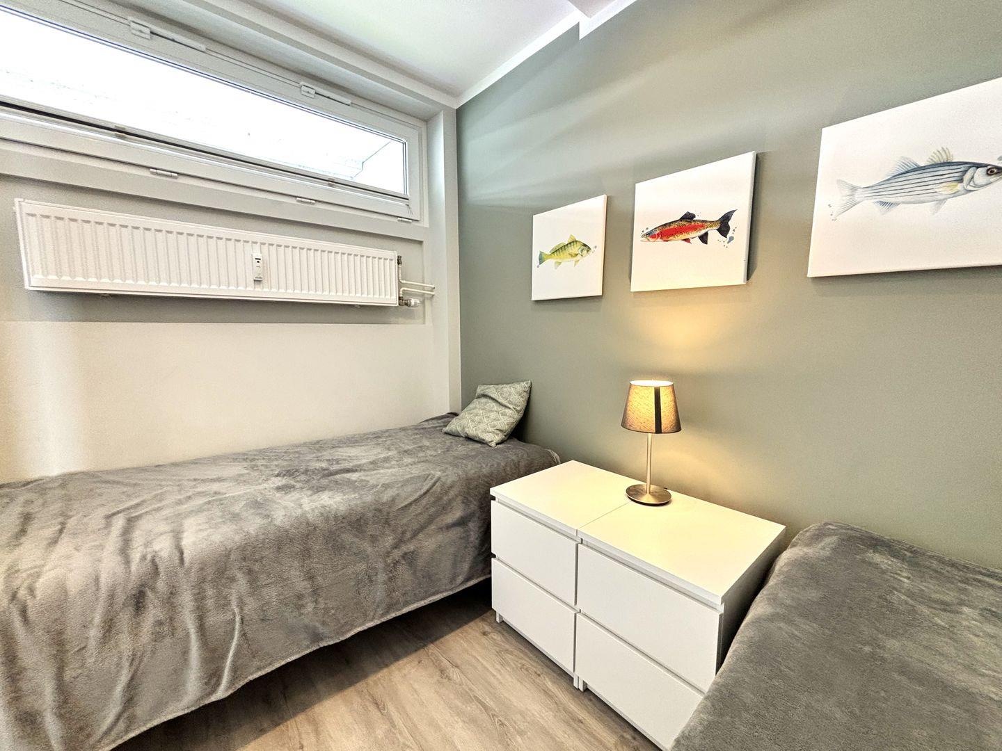 Herzlich Willkommen in der 3-Raum-Ferienwohnung "Baywatch"! Diese schöne Wohnung liegt in der 1. Reihe der Flachbauten (2. Etage) und hat somit einen herrlichen Blick auf die Ostsee. Der gemütliche und stimmig eingerichtete Wohn- und Essbereich mit angrenzendem Balkon lädt zu entspannten Urlaubstagen ein. Ein bequemes Doppelbett (160 cm x 200 cm) steht optisch getrennt in einer Nische ebenfalls im Wohn- und Essbereich. Die moderne Küche ist mit Spülmaschine, Backofen und Herd ausgestattet und ist in den Wohn-/Essbereich integriert. Im Schlafzimmer stehen zwei Einzelbetten (jeweils 90 x 190 cm), die man nicht zusammenschieben kann. Die Wohnung verfügt über ein abgetrenntes Ankleidezimmer. Das hell geflieste und moderne Badezimmer hat eine bodentiefe Dusche und ist innenliegend. Ohne eine Straße zu überqueren sind es zum Strand nur wenige Fußschritte. PKW-Stellplatz inklusive. Ihre Fahrräder können Sie sicher in der zur Wohnung gehörenden Kellerbox abstellen.