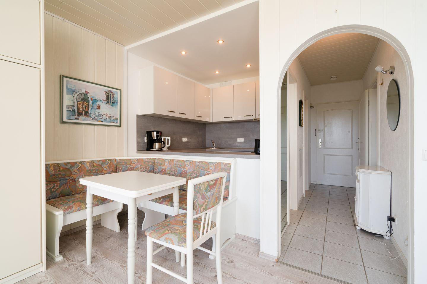 Die Ferienwohnung mit Balkon liegt in der 2. Etage und ist für 4 Personen geeignet. Vom Balkon aus haben Sie einen schönen Blick in die Neustädter Bucht. Die Küche ist zum Wohn- und Essbereich hin offen und ist mit Backofen, Herd und Spülmaschine ausgestattet. Die Essecke schließt an die Küchenanrichte an, so dass es keine langen Wege zum Tischdecken gibt. Im Wohnbereich mit Sofa und TV steht zudem ein Schrankbett, das Platz für 2 Personen bietet (180 cm x 200 cm). Im separaten, innen liegenden Schlafraum stehen zwei EInzelbetten, die man nicht zusammenschieben kann. Das Duschbad ist ebenfalls innenliegend. Zum Strand sind es nur wenige Minuten zu Fuß, hierbei muss keine Straße überquert werden. PKW-Stellplatz inklusive.
