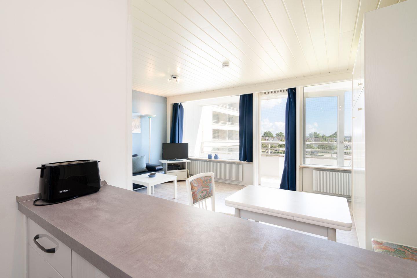 Die Ferienwohnung Nr. 625 mit Balkon liegt in der 2. Etage. Vom Balkon aus haben Sie einen schönen Blick in die Neustädter Bucht. Die Küche ist zum Wohn- und Essbereich hin offen und mit Backofen, Herd und Spülmaschine ausgestattet. Im Wohnbereich mit Essecke, Sofa und TV steht zudem ein Schrankbett, das Platz für 2 Personen bietet. Im separaten Schlafraum stehen zwei EInzelbetten. Das Duschbad ist ebenfalls innenliegend. Zum Strand sind es nur wenige Minuten zu Fuß. WLAN inklusive.