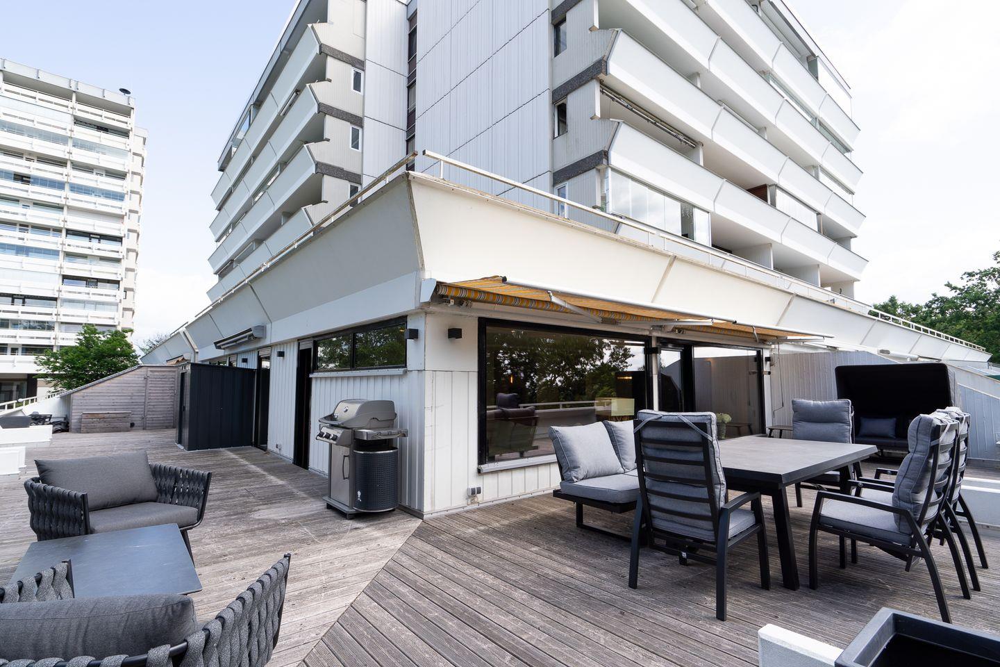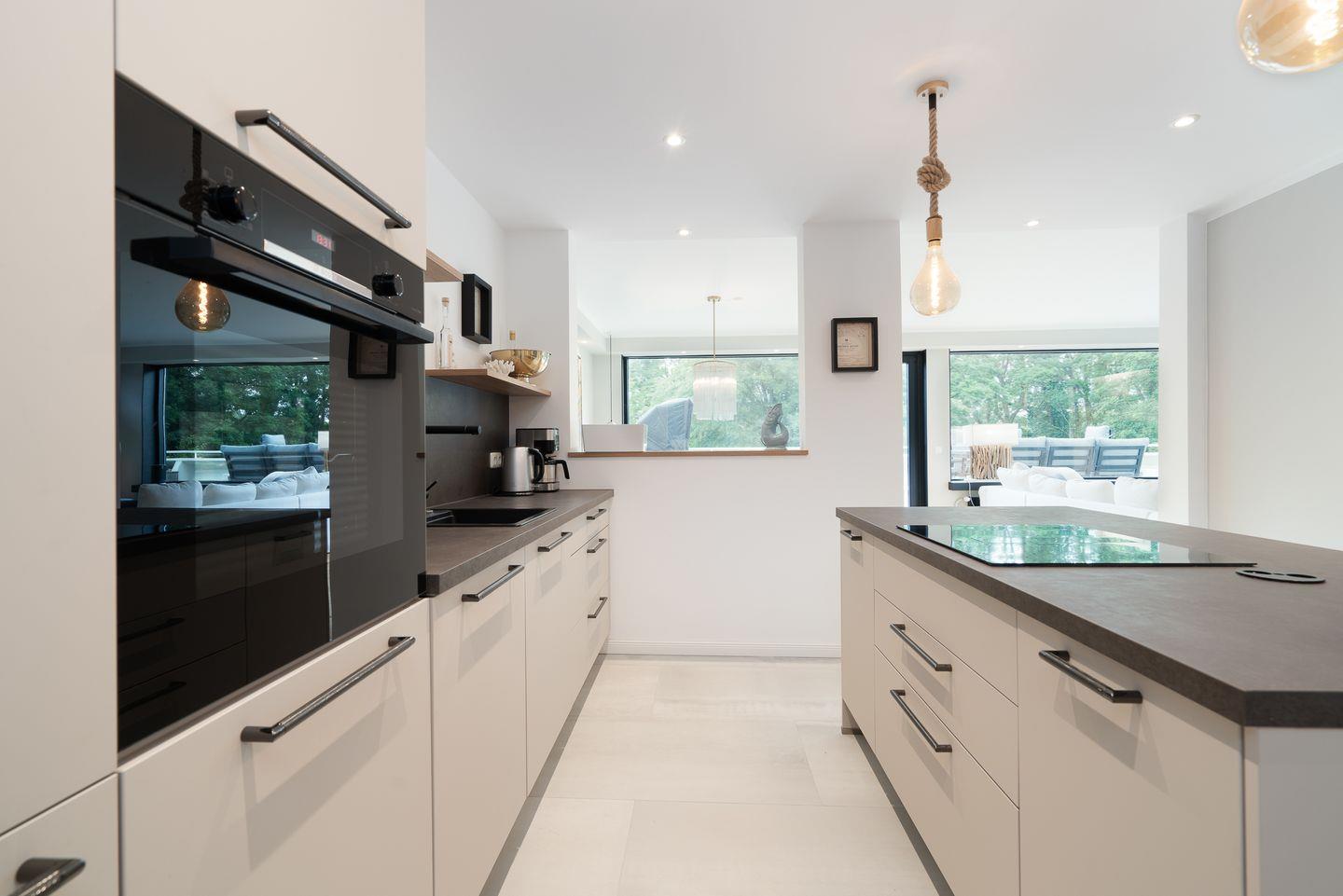 Diese außergewöhnliche 2-Raum-Ferienwohnung mit großer Rundum-Terrasse liegt in der 3. Etage in der Apartmentanlage Panoramic und sorgt für ein besonderes Urlaubserlebnis. Bei der Einrichtung der großzügigen Wohnung wurde auf hochwertige und geschmackvolle Materialien und Möbel geachtet. Die riesige Terrasse mit elektrischen Markisen ist mit mehreren Sitz- und Verweilmöglichkeiten möbliert, so dass Sie der Sonne den Tag über folgen können. Eine kleine Sauna finden Sie ebenfalls auf der Terrasse zu Ihrer exklusiven Nutzung. Genießen Sie auf der gemütlichen Sofalandschaft mit Blick auf den Ethanol-Kamin das besondere Wohlfühl-Ambiente. Die edle und voll ausgestattete Küche mit Kücheninsel verfügt über Backofen, Herd, Mikrowelle und Spülmaschine und macht richtig Lust auf Kochen. Am großzügigen Esstisch können Sie im Anschluss entspannt Ihre Mahlzeiten genießen.
