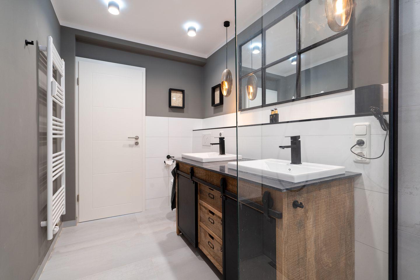 Das bequeme Boxspringbett (180 cm x 200 cm) sorgt für erholsamen Schlaf. Das moderne und stilvolle Badezimmer mit einem Doppelwaschbecken, Dusche und Badewanne runden die exklusive Ausstattung ab. Zum Strand sind es nur wenige Gehminuten. PKW-Stellplatz inklusive.
