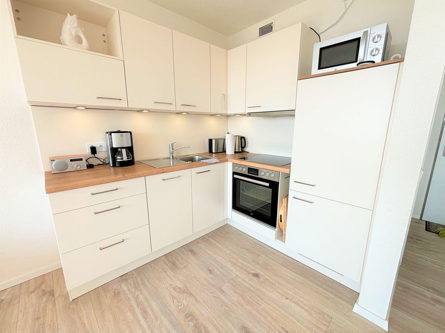 In dieser schönen 2-Raum-Ferienwohnung kommen Sie ganz schnell in Urlaubsstimmung! Vom Balkon haben Sie über die Anlange hinweg Ostseeblick „bis zum Horizont“. Im Wohn- und Essbereich mit offener Küche steht ein komfortables Schrankbett. Die moderne Küche ist mit Spülmaschine, Backofen und Herd voll ausgestattet. Für die Kinder steht im separaten Schlafzimmer ein Etagenbett zur Verfügung. Das helle Duschbad ist innenliegend. Zum Strand sind es nur wenige Schritte. WLAN inklusive.