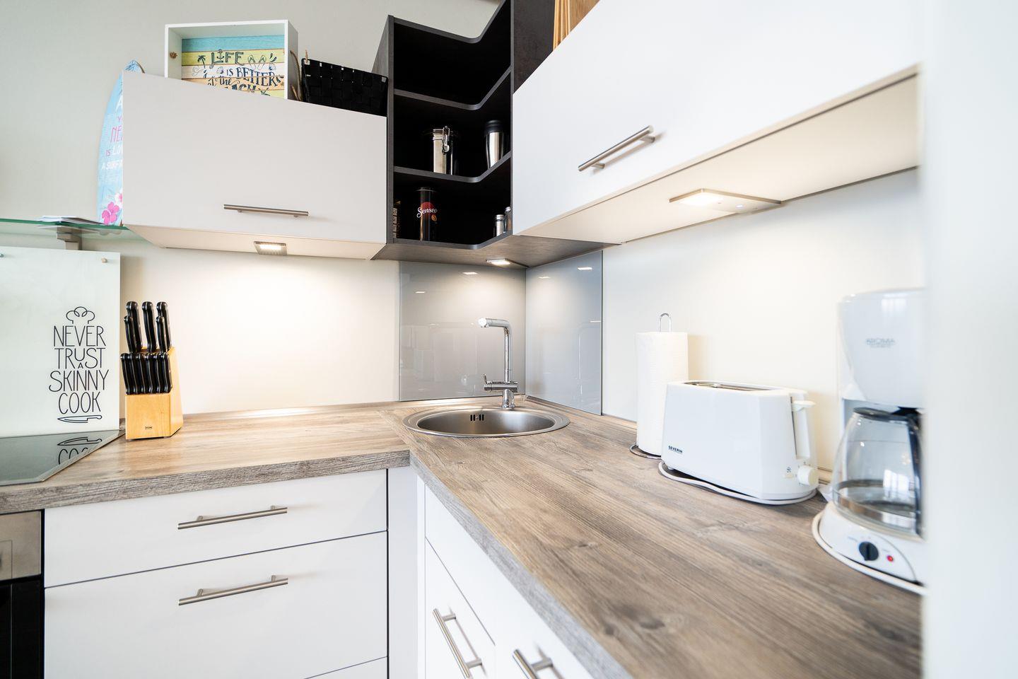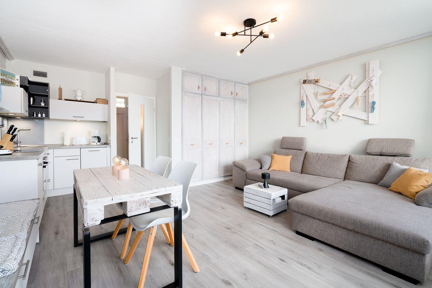 Die moderne 2-Zimmerwohnung liegt in der 5. Etage mit Balkon und ist für bis zu vier Personen geeignet. Vom kombinierten Wohn- und Essbereich mit offener Küche haben Sie Zugang zum Balkon mit herrlichen Blick über die Lübecker Bucht. Die Küche ist mit Spülmaschine, Backofen und Herd ausgestattet. Im Schlafzimmer stehen zwei Einzelbetten. Das Wohnzimmer verfügt über ein Schlafsofa. Das moderne Duschbad ist innenliegend. PKW-Stellplatz inklusive. Zum Strand sind es nur wenige Minuten zu Fuß.
