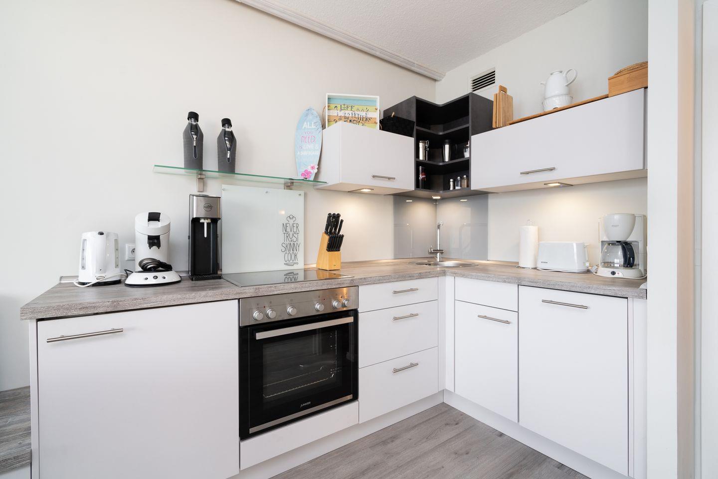 Die moderne und helle 2-Zimmerwohnung liegt in der 5. Etage mit Balkon und ist für bis zu vier Personen geeignet. Vom Balkon aus können Sie einen herrlichen Blick über die Lübecker Bucht genießen. Vom kombinierten Wohn- und Essbereich mit offener Küche haben Sie Zugang zum Balkon. Die Küche ist mit Spülmaschine, Backofen und Herd voll ausgestattet. Im Schlafzimmer mit Fenster stehen zwei Einzelbetten (jeweils 90 x 200 cm), die man nicht zusammenschieben kann. Das Wohnzimmer verfügt über ein Schlafsofa (140 cm x 220 cm). Das moderne Duschbad ist innenliegend. PKW-Stellplatz inklusive. Vom PKW-Stellplatz führt ein Seiteneingang zum Fahrstuhl zum ebenerdigen Be-und Entladen. Ohne eine Straße zu überqueren sind es zum Strand nur wenige Minuten zu Fuß.