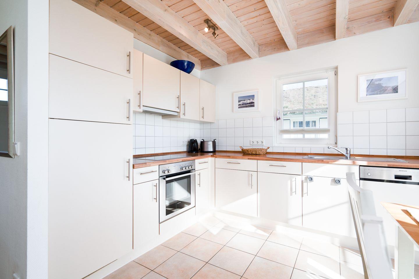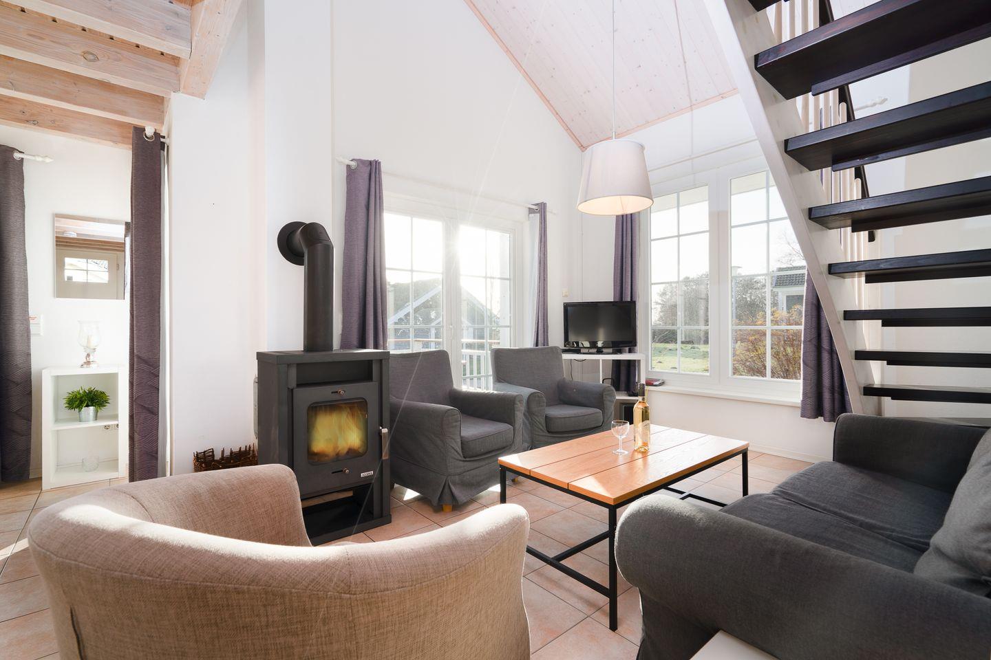 Unsere "Koggen" sind alleinstehende Häuschen mit zwei Terrassen, die ideal für Ihren Ostseeurlaub für bis zu 4 Personen sind. Im Erdgeschoss befinden sich die offene Küche mit Essbereich und der gemütliche Wohnbereich mit Kaminofen. Der Ofen sorgt für behagliche Stunden mit Freunden und Familie. Die Küche ist mit Spülmaschine, Backofen und Herd voll ausgestattet. Vom Essbereich haben Sie Zugang zur Terrasse, von der aus Sie einen wunderbaren Blick auf die Ostsee genießen können. Ein Schlafraum mit Doppelbett (2x 80 cm x 200 cm), sowie das Bad mit Whirlwanne und Sauna sind ebenfalls im Erdgeschoss. Der Komfort einer eigenen Sauna wird sehr von unseren Wintergästen geschätzt. Eine eigene Waschmaschine gehört ebenfalls zur gehobenen Ausstattung. Ein zweiter Schlafraum mit Doppelbett (2x 80 cm x 200 cm) befindet sich in der 1. Etage mit Blick auf die Ostsee, und einem separaten Duschbad. Aufwachen und das Meer sehen, was will man mehr?