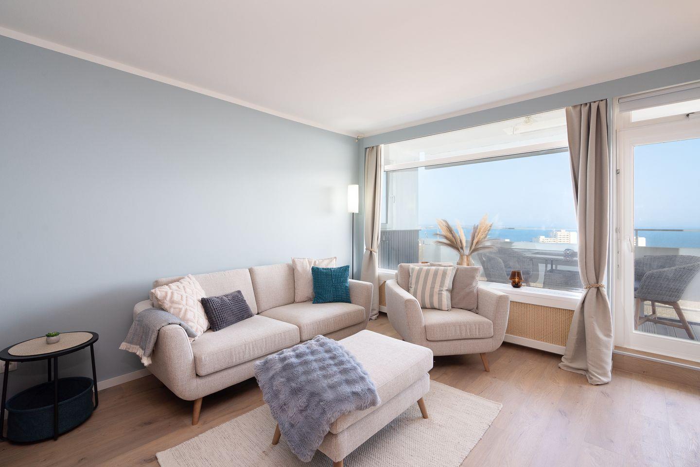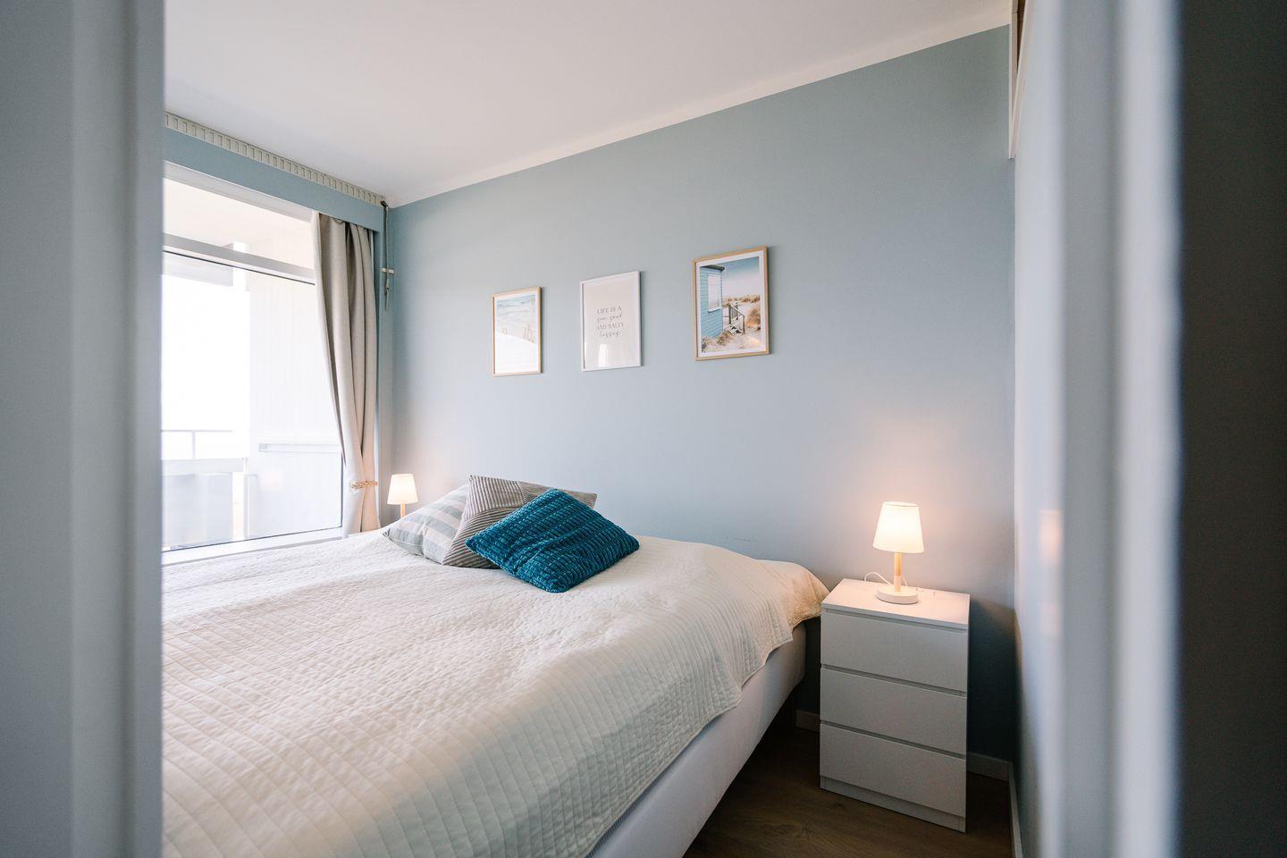 Die frisch sanierte und moderne 3-Raum-Ferienwohnung befindet sich im 12. Stock mit Balkon und einem atemberaubenden Blick über die Lübecker Bucht. Die top ausgestattete Küche ist zum kombinierten Wohn- und Essbereich hin offen. Im ersten Schlafzimmer mit Meerblick steht ein Doppelbett, im zweiten Schlafzimmer steht ein Einzelbett mit großem Kleiderschrank. Das moderne Duschbad ist innenliegend. WLAN wird geboten. Die Nutzung des Schwimmbads in der Anlage ist inklusive.