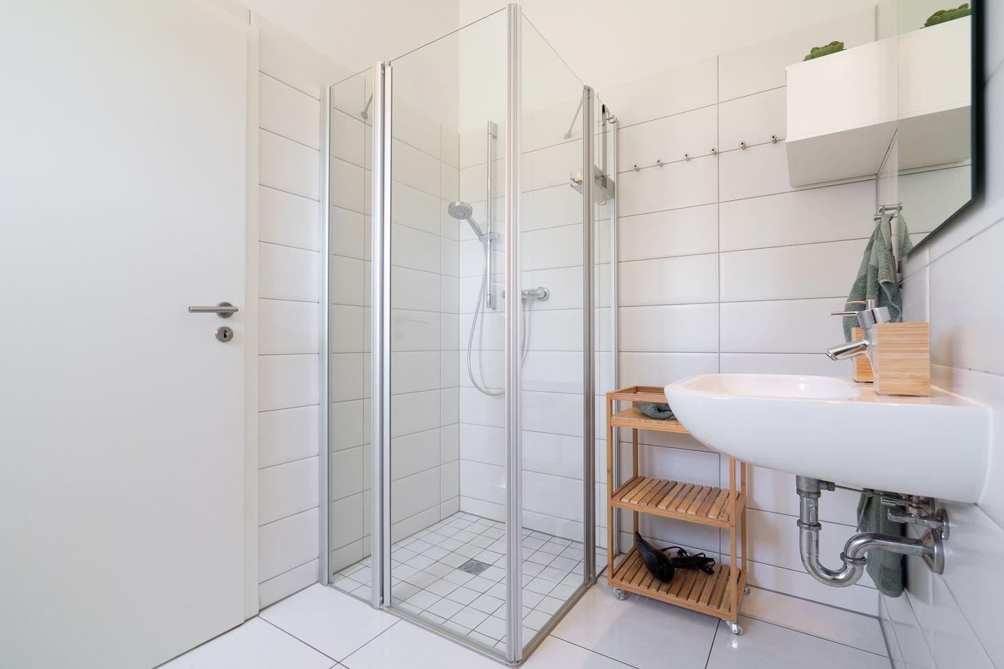 Im Badezimmer steht Ihnen eine Dusche zur Verfügung. Für längere Aufenthalte oder Familien ist die eigene Waschmaschine und der Trockner mit Eigennutzung besonders praktisch. Die Beheizung erfolgt über Elektroheizungen und den Ofen.
