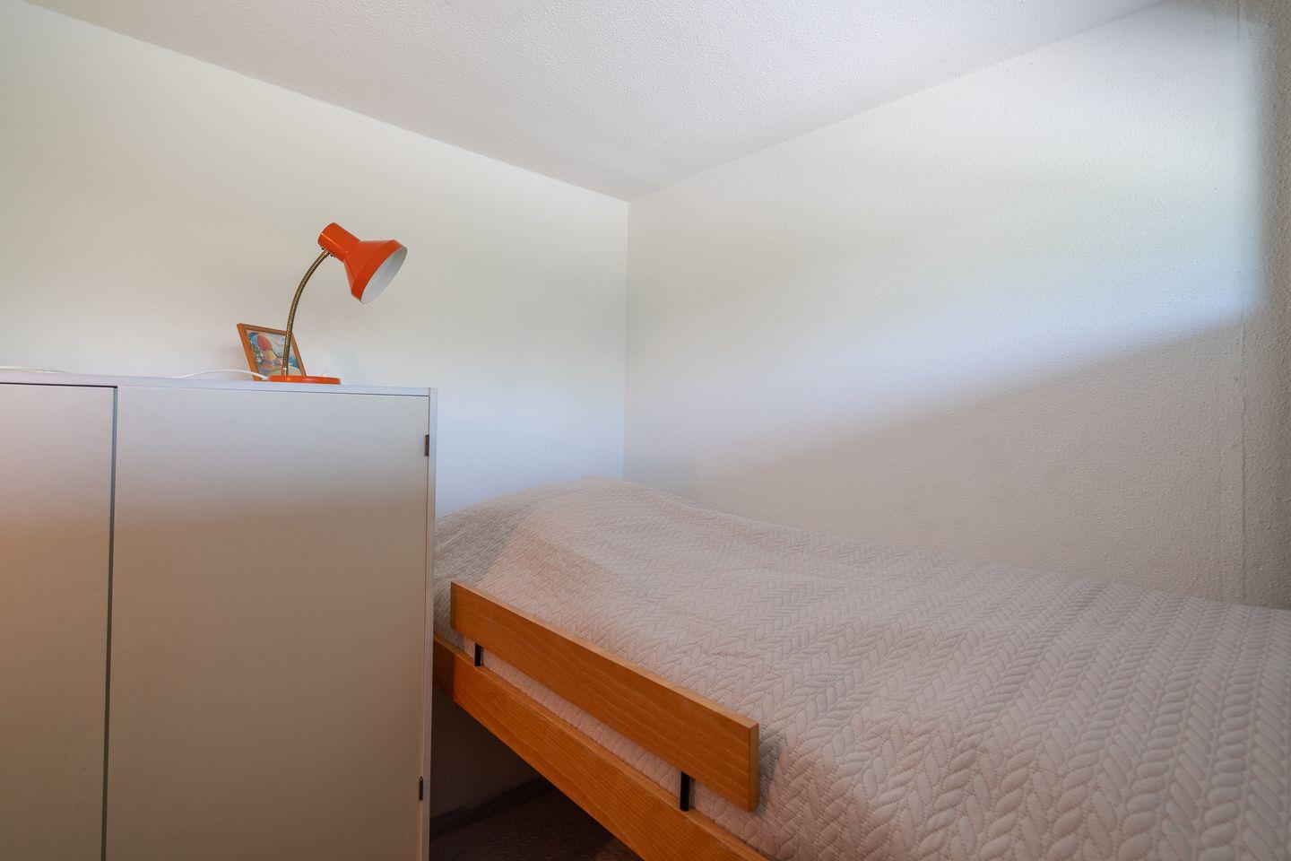 Das rund 50 m² große Apartment bietet Raum für bis zu fünf Gäste und ist somit sowohl für Familien als auch für kleine Gruppen und Paare bestens geeignet. Zwei separate Schlafzimmer mit komfortablen Schlafmöglichkeiten, ein großzügiges Wohnzimmer mit offener Küche und gemütlicher Sofaecke sorgen für eine angenehme Wohnatmosphäre. Der offen gestaltete Essbereich mit Esstisch lädt zu gemeinsamen Mahlzeiten ein, während Sie sich auf dem überdachten Balkon mit Gartenmöbeln und Sonnenschutz entspannen und das Panorama der Ostsee genießen können. Im ersten Schlafzimmer mit Oberlicht stehen zwei Einzelbetten (jeweils 90 cm x 190 cm), im zweiten Schlafzimmer steht ein Etagenbett (jeweils 90 cm x 180 cm). Auch dieses Schlafzimmer verfügt über ein Oberlicht. Das Sofa mit Schlaffunktion (140 cm x 190 cm) im Wohnzimmer bietet Platz für eine weitere Person.