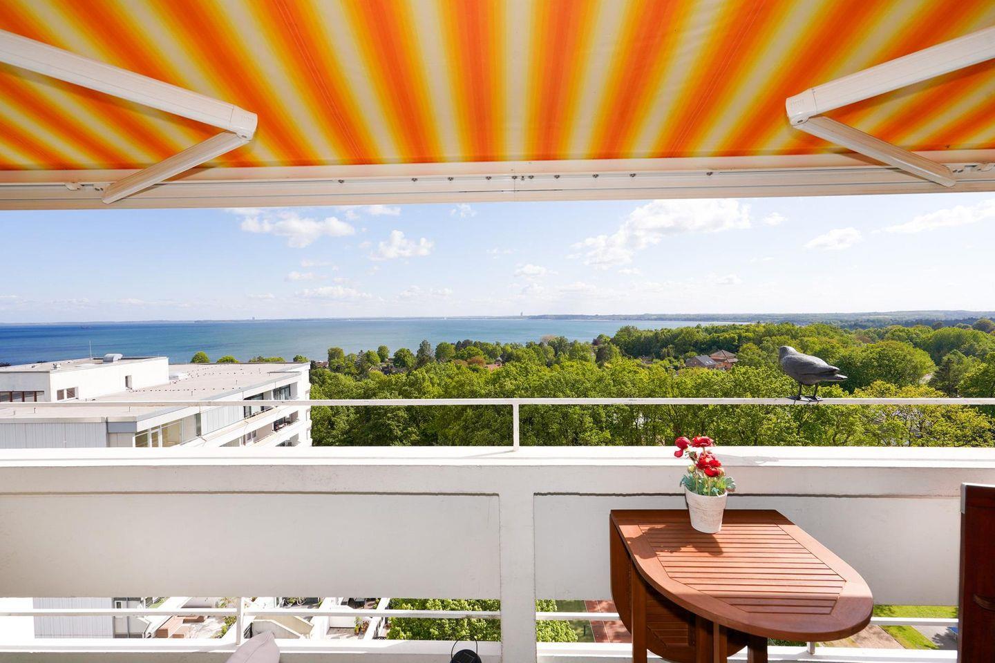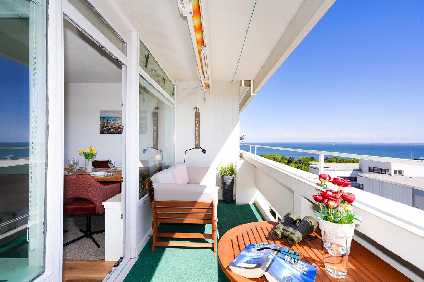 Die Wohnung befindet sich in der 9. Etage und ist bequem über Aufzüge erreichbar. Vom Südbalkon mit Markise genießen Sie einen traumhaften Blick über die Lübecker Bucht. Im Strandkorb lässt sich der Tag wunderbar bei einem Sundowner ausklingen.