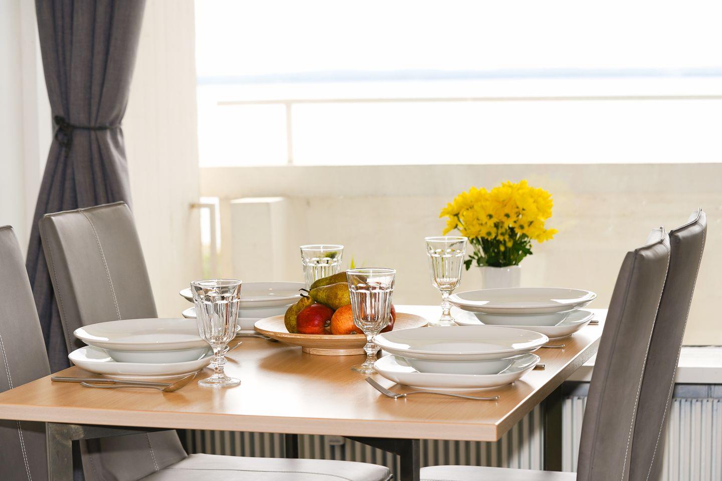 Gourmets und Feinschmeckern bietet die praktische und voll ausgestattete Einbauküche Gelegenheit, auch leckere Gerichte zuzubereiten. Der Balkon mit Traumblick über die Lübecker Bucht ist mit wetterfesten Möbeln eingerichtet. Ein großer Flachbildfernseher gehört ebenfalls zur Einrichtung der Ferienwohnung.