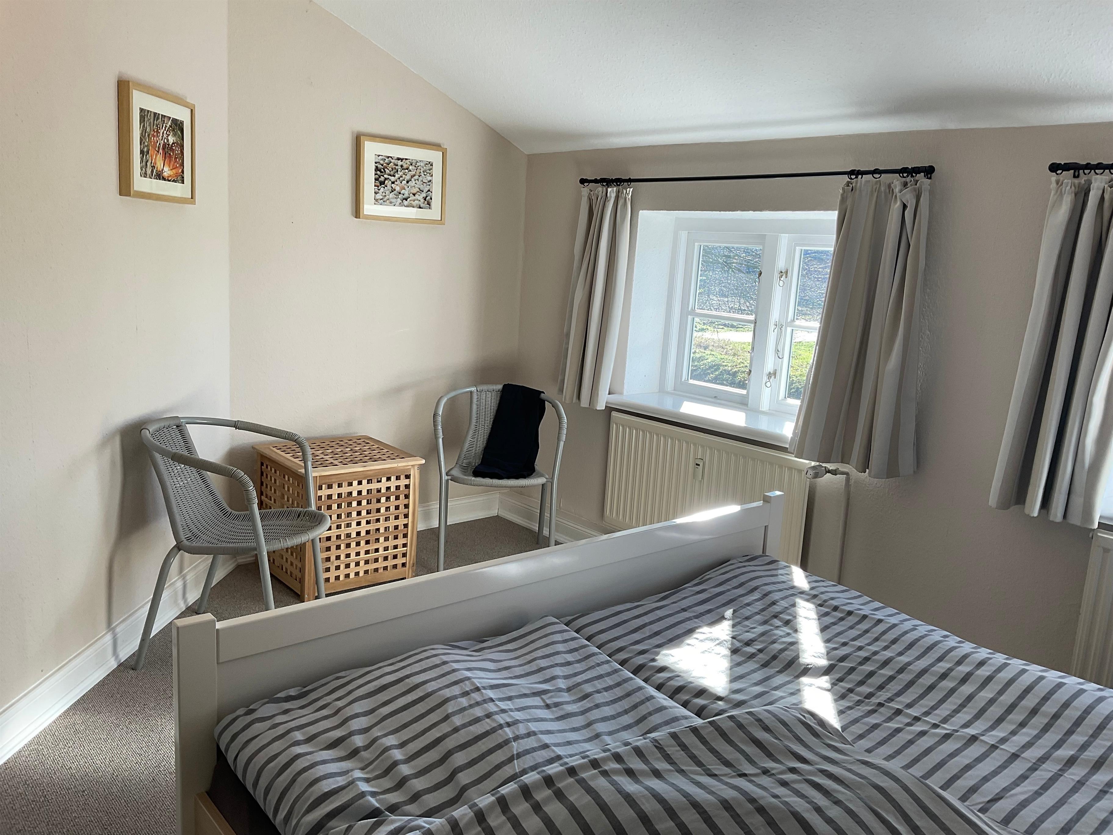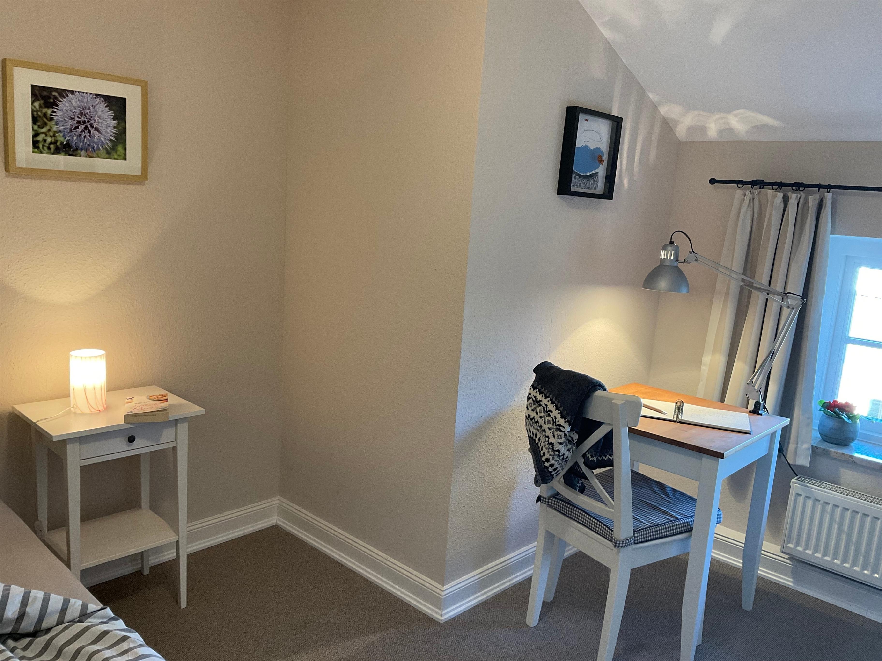 Helle, komfortabel und geschmackvoll eingerichtete Ferienwohnung für 2-3 Personen. Die Wohnung verfügt über zwei Schlafräume, eines mit Doppelbett und das zweite mit einem Einzelbett. Des weiteren findet sich hier ein Wohnraum mit offener Einbauküche inklusive Essbereich samt Backofen, Mikrowelle und Geschirrspüler. Der Wohnraum hat einen Flachbildfernseher, einen DVD Player und eine Stereoanlage und ist auch für Homeoffice geeignet mit einem Glasfaser-Internet mit 200Mbit`s. Das Bad ist mit Dusche und WC ausgestattet. Im Garten warten Sitzmöbel auf der Liegewiese auf Sie und laden zum Entspannen ein. Handtücher und Bettwäsche sind schon im Preis enthalten. Dieses Objekt ist eine Nichtraucherwohnung. Babybett auf Anfrage. Ein PKW-Stellplatz sowie ein Abstellraum für Fahrräder vorhanden.