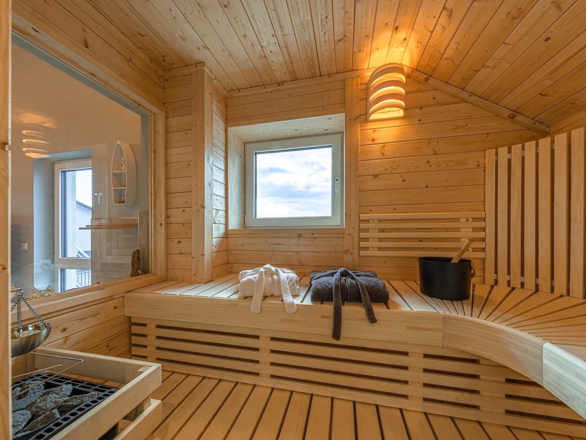 Wohnungen verfügen jeweils über eine eigene Sauna und einen Gaskamin. Von den
