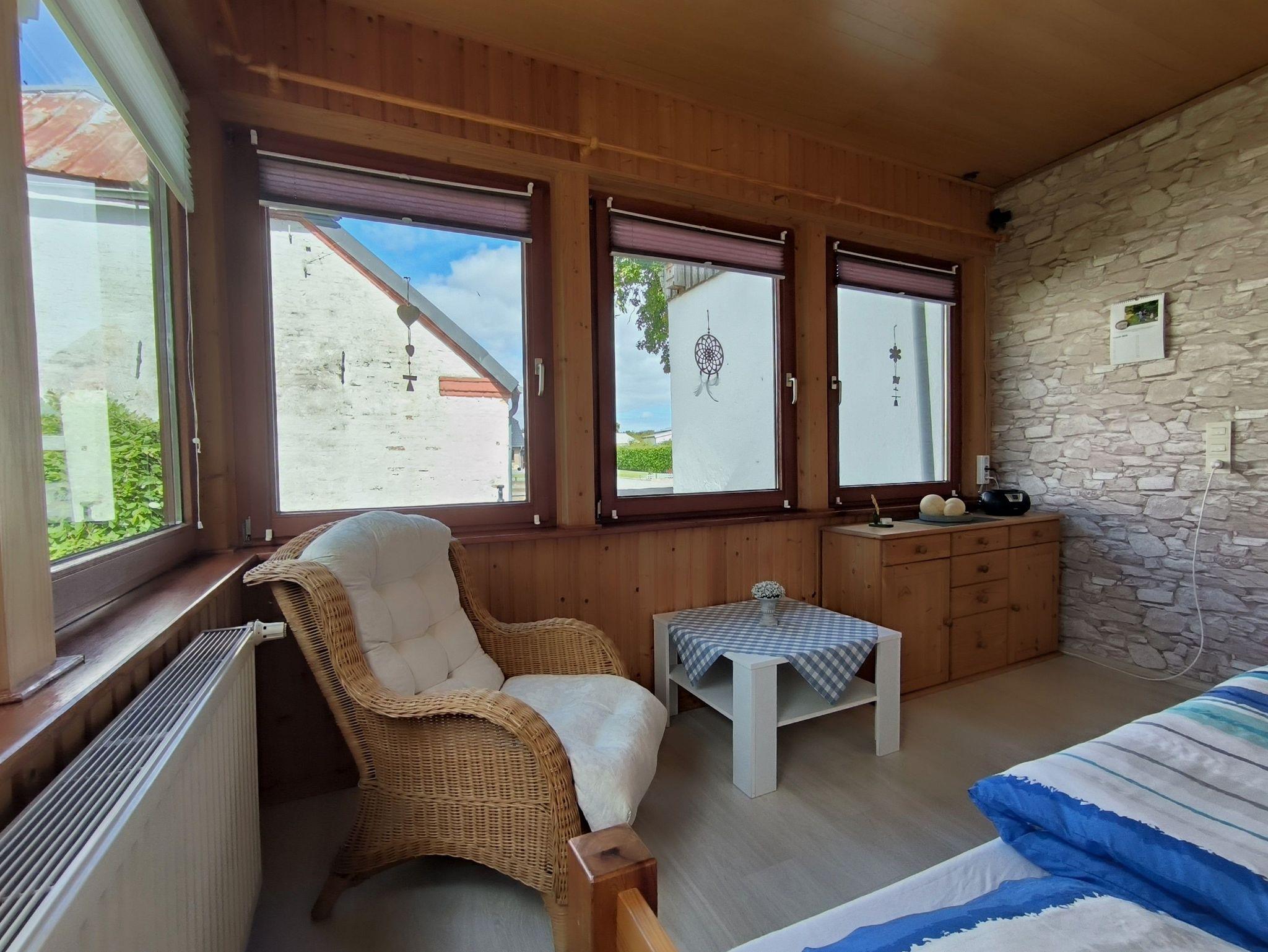 Im Anbau eines großen Bauernhofgebäudes erholen Sie sich auf knapp 65qm: vom großzügigen Eingangsbereich geht gleich das Bad mit Tageslicht, Toilette, Dusche und Waschtisch ab. Das Wohnzimmer ist mit Sofa, elektrischem Sessel, TV und Esstisch ausgestattet. Hiervon gehen zwei Schlafzimmer ab: Im großen Schlafzimmer stehen ein Kleiderschrank und zwei große Betten (1,40x2,00m): je nach Vorliebe der Gäste einzelnstehend oder zusammengestellt mit Matratzenbrücke. Der helle Wintergarten ist nicht mit einer Tür vom Wohnzimmer abgetrennt, kann jedoch auch als Schlafzimmer genutzt werden: hier steht ein weiteres Bett (0,90x2,00m). Bis zu drei Erwachsene finden also einen gemütlichen Schlafplatz. Besonders familienfreundlich: Kinder bis 10 Jahre übernachten kostenfrei.