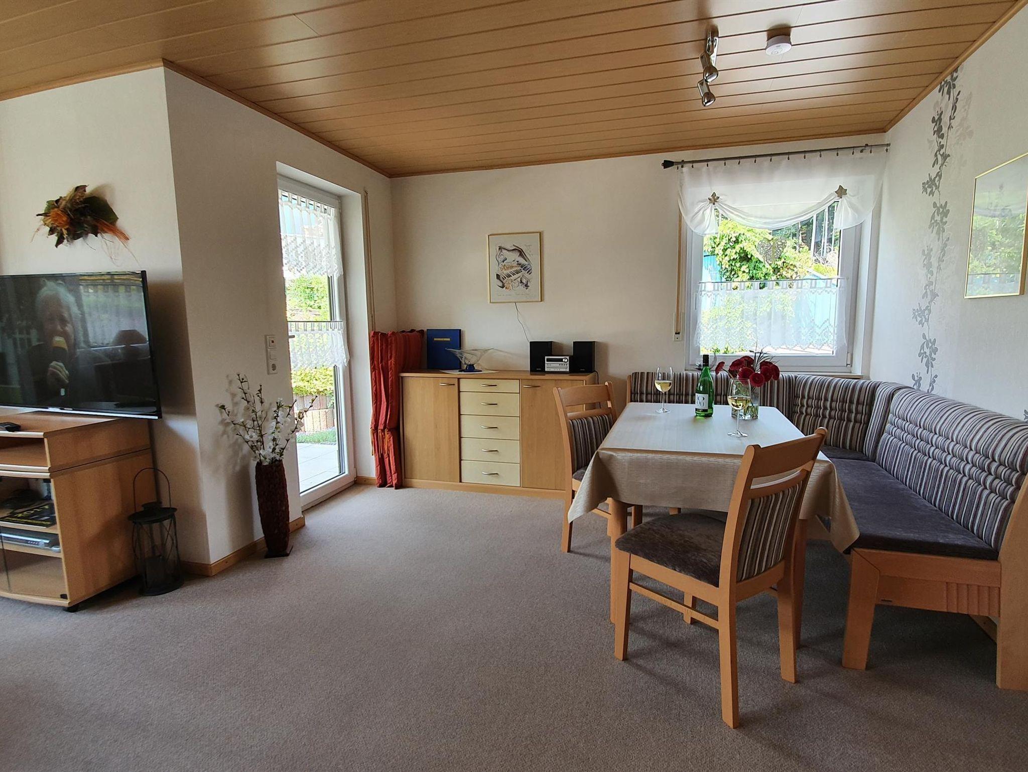 direkt am Waldrand. Modern eingerichtete Ferienwohnung mit Tel., TV, W-Lan, Dusche/WC und Wohnraum ,Kühlschrank. Terrasse, Liegewiese.