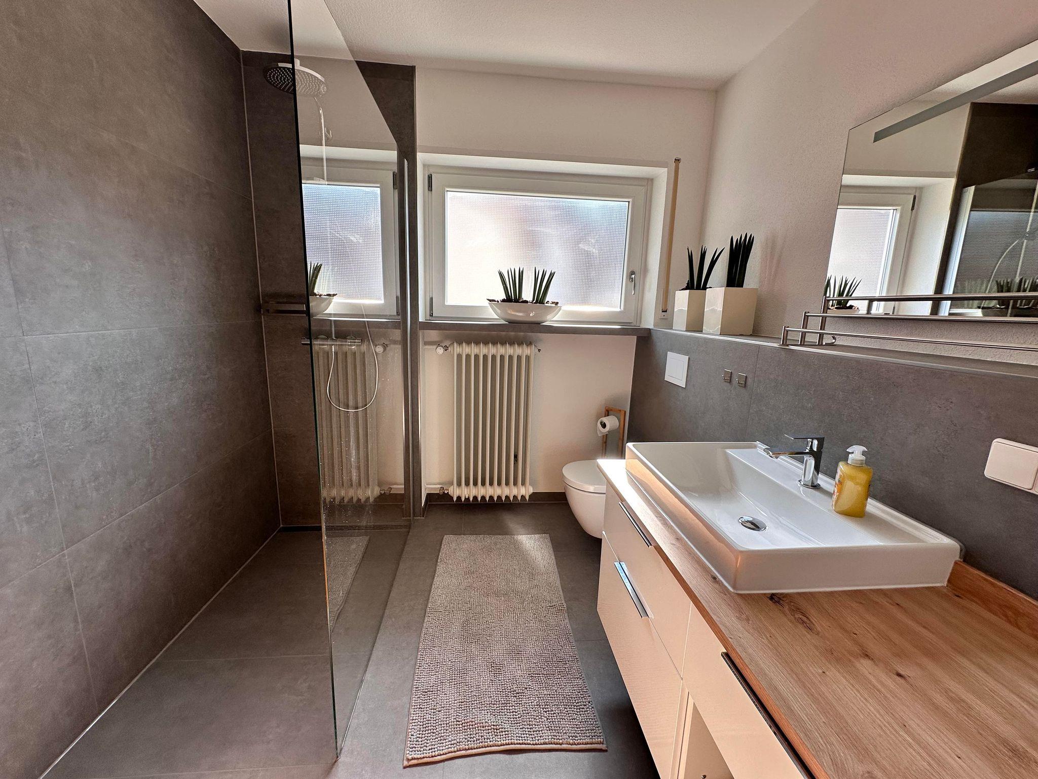 • Zur Wohnung gehört ein großer Balkon mir Freisitz für 8 Personen und direktem Zugang zum großen Garten in dem sich auch das Saunahaus mit Whirlpool befindet