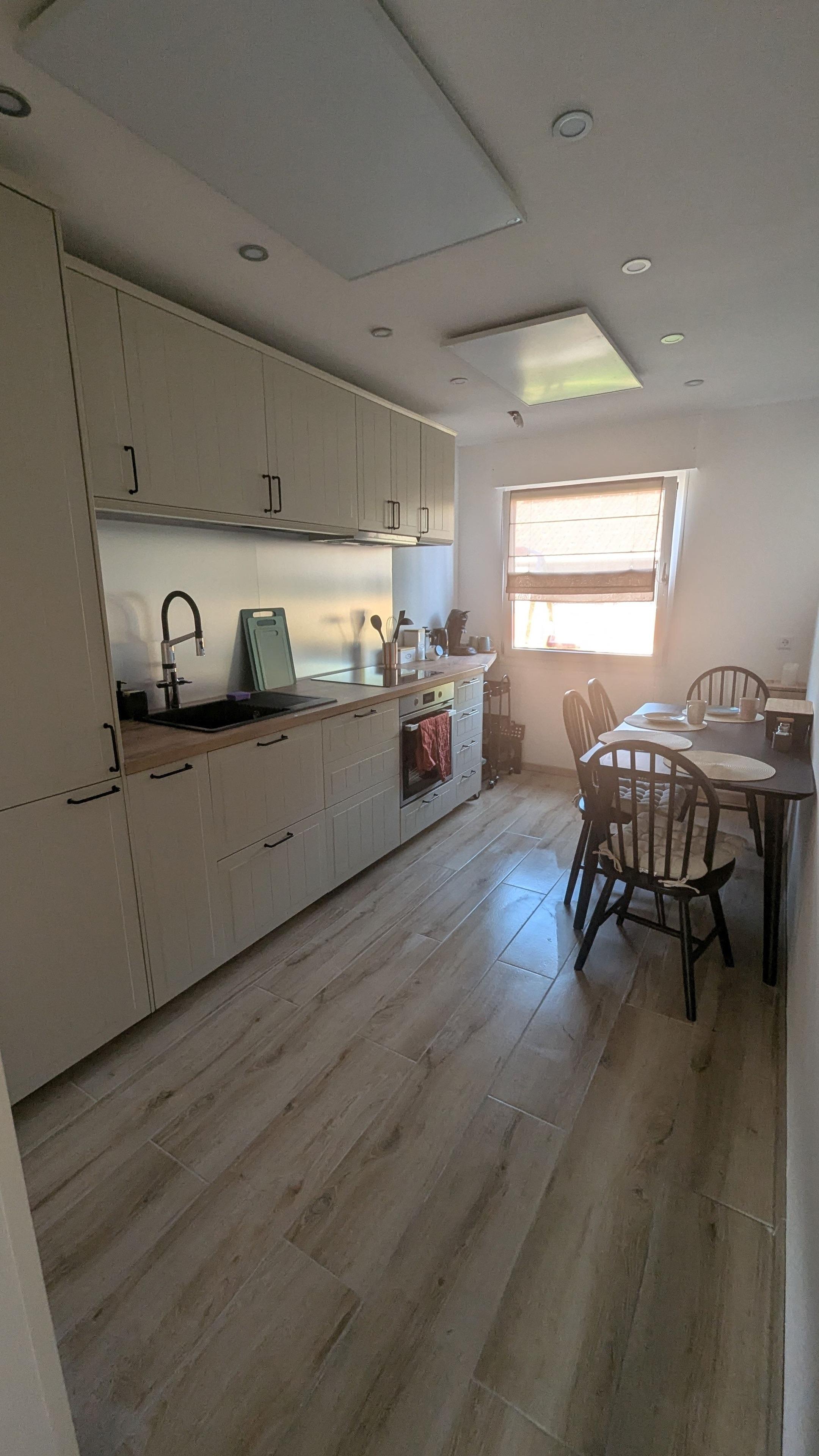 Ein Schlafzimmer + gemütliche Schlafcouch im Wohnbereich. Voll ausgestattete Küche mit Spülmaschine, modernes Bad mit großer Dusche und Waschtrockner, WLAN und TV – alles da für entspannte Urlaubstage.