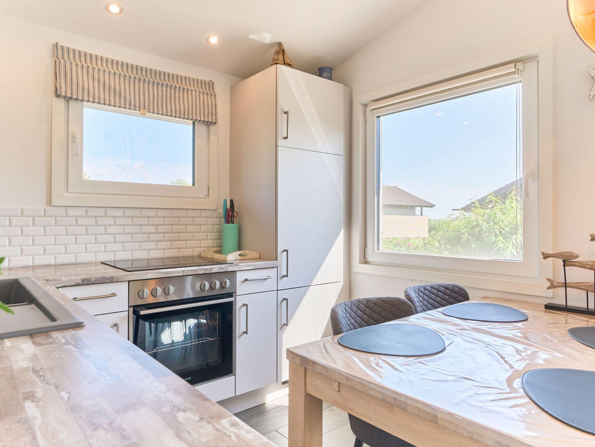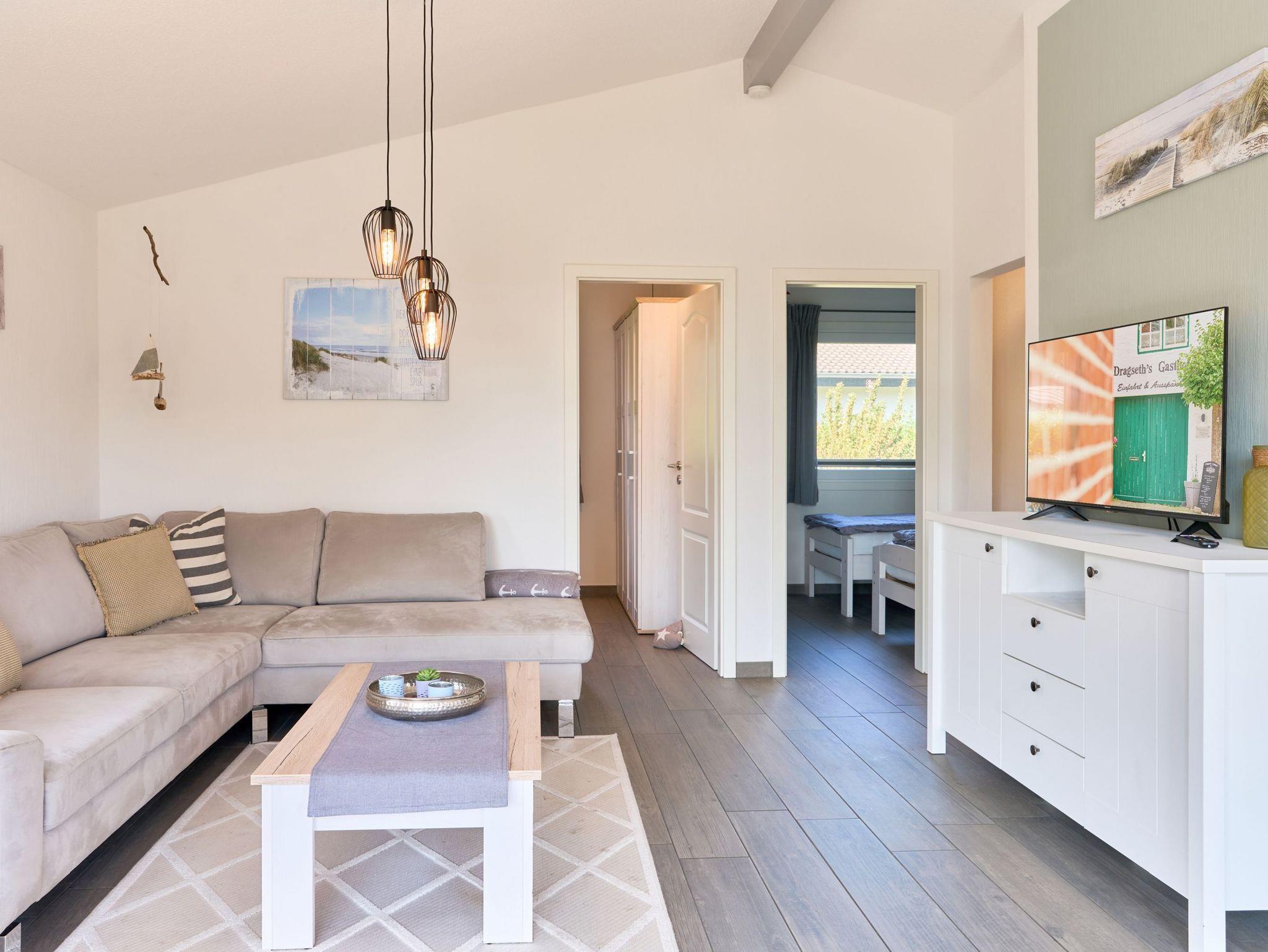 Wohnzimmer, Küche, 2 Schlafräume 1x 160er Bett 2x 80er Betten, 1 Dusch/WC mit bodengleicher Dusche, Fußbodenheizung im ganzen Haus mit WLAN und Waschmaschine.
