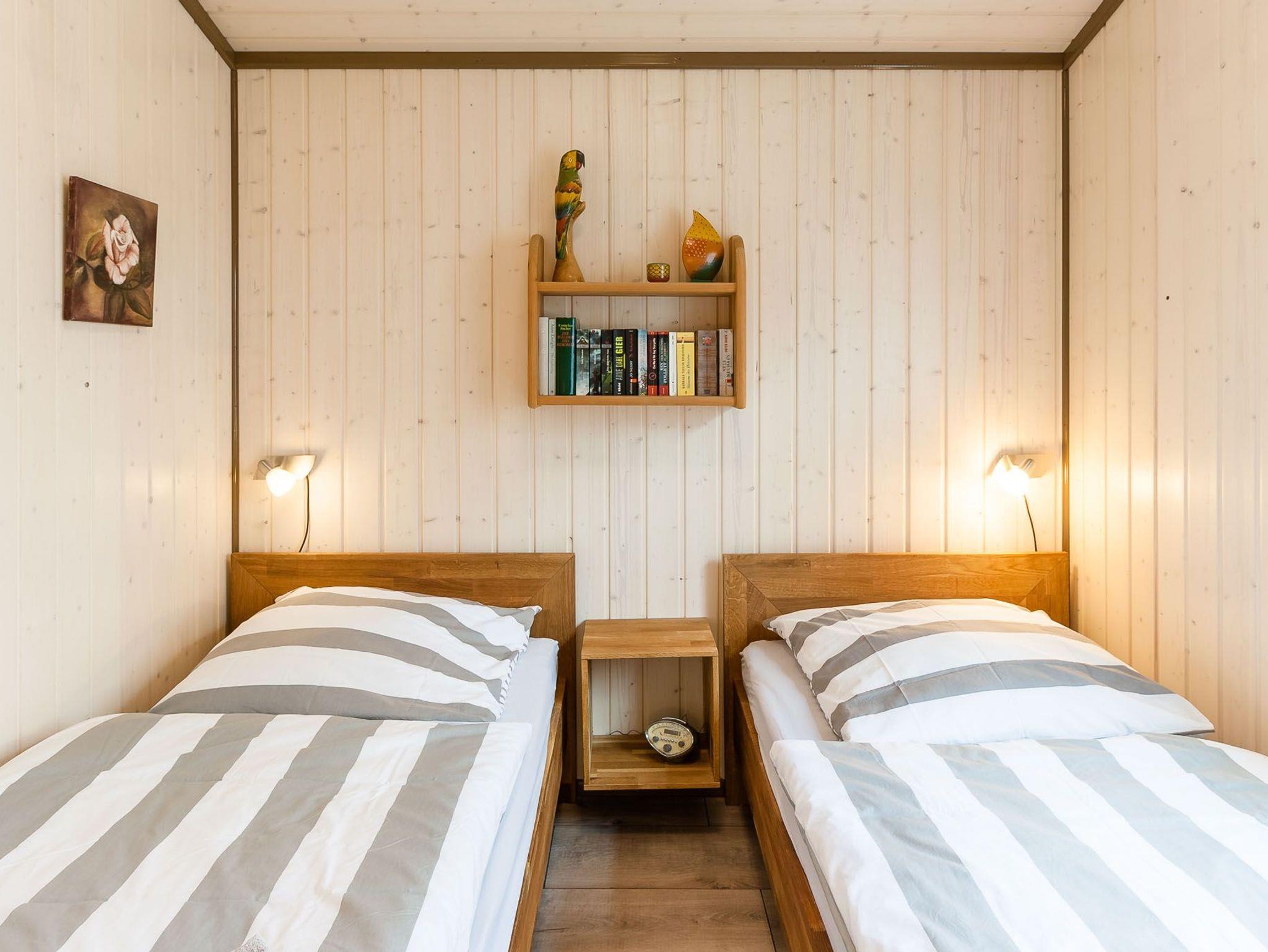 Großes Wohnzimmer, Küche, 2 Schlafräume (2 Einzelbetten [&] 1 Doppelbett, 1 Dusch/WC, Schuppen, Sauna mit Ruheraum überdachte Terrasse in Süd Lage und Gartenmöbel und ist für Hunde geeignet.