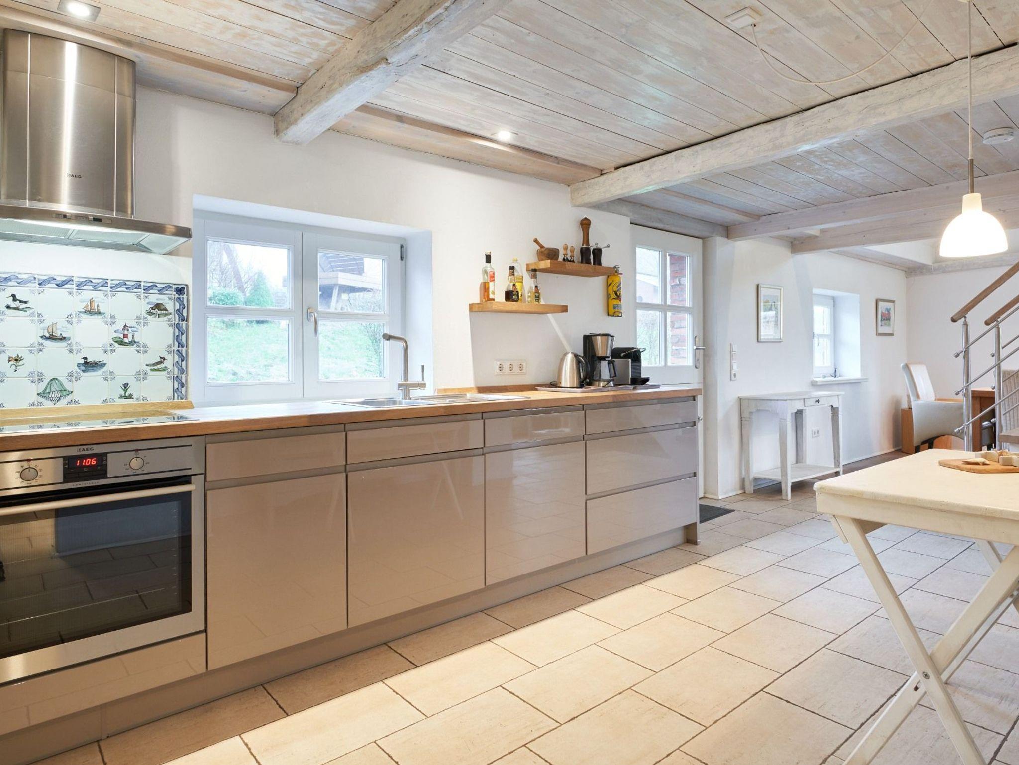 Die offene Wohn- und Essküche lädt Sie zum Verweilen ein. Egal ob Sie auf dem gemütlichen Sofa sitzend Ihren Friesentee oder Eiergrog trinken, am rustikalen Holztisch ein selbst gepultes Krabbenbrötchen essen, oder im großen Garten im Strandkorb sich sonnen, Sie finden hier Ihre Erholung.