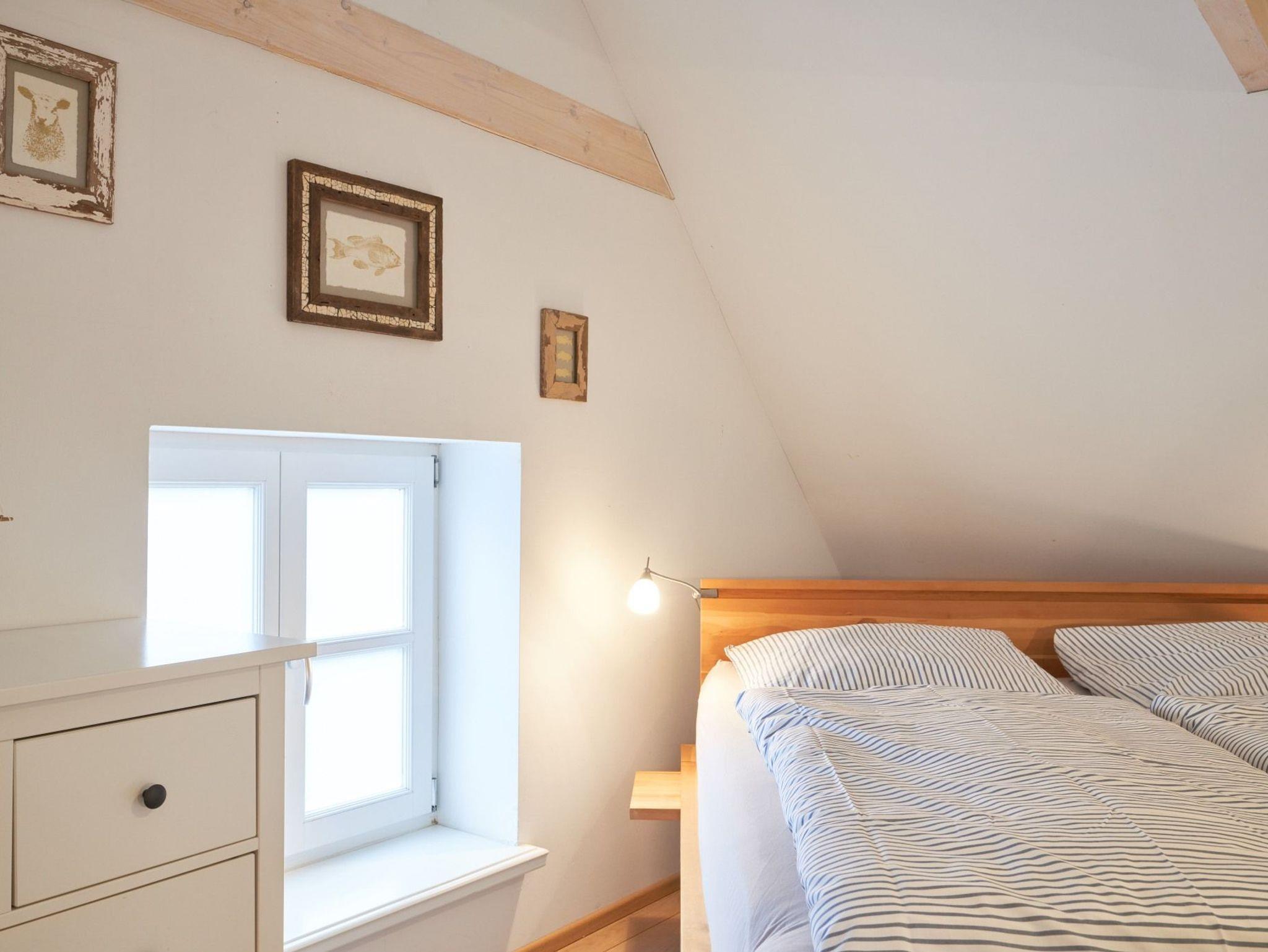 Im offenen Schlafzimmer werden Sie von den ersten Sonnenstrahlen geweckt und von den letzten Sonnenstrahlen in wunderschöne Träume begleitet. Sie schlafen in einem Zirbenholzbett mit Tempurmatratzen und können hier den Tag Revue passieren lassen und einen ruhigen Schlaf finden.