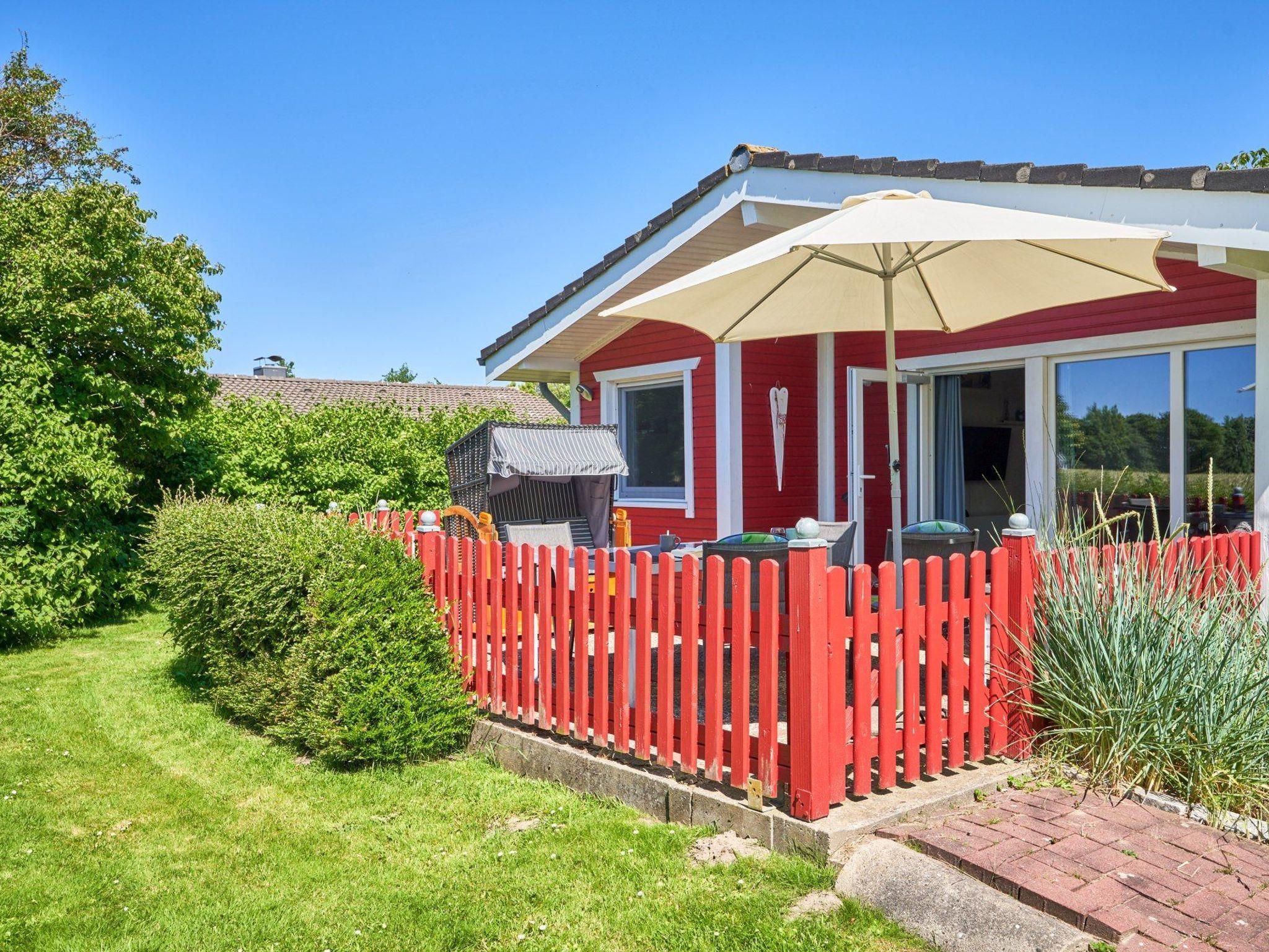 Durch den großen eingezäunten Garten ist das Ferienhaus ideal für Hunde geeignet.