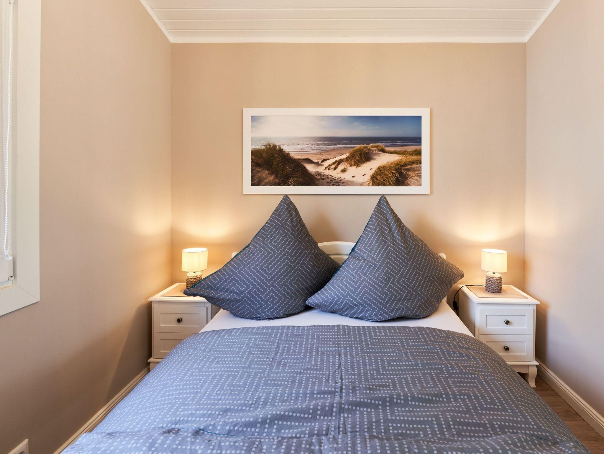 Im Ferienhaus erwarten Sie zwei Schlafzimmer mit komfortablen Betten (1,60m x 2,00m [&] 1,40m x 2,00m), in denen erholsamer Schlaf garantiert ist. Beide Räume sind mit Nachtschränkchen und Nachtleuchten ausgestattet, während Einbauschränke inklusive Bügeln reichlich Stauraum für Ihre Kleidung bieten.