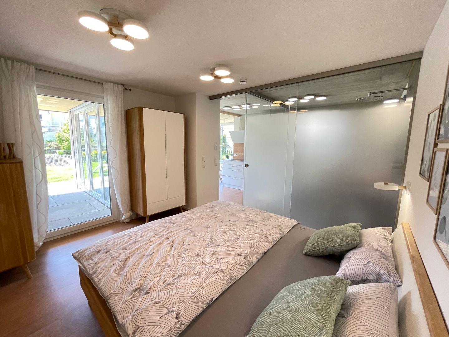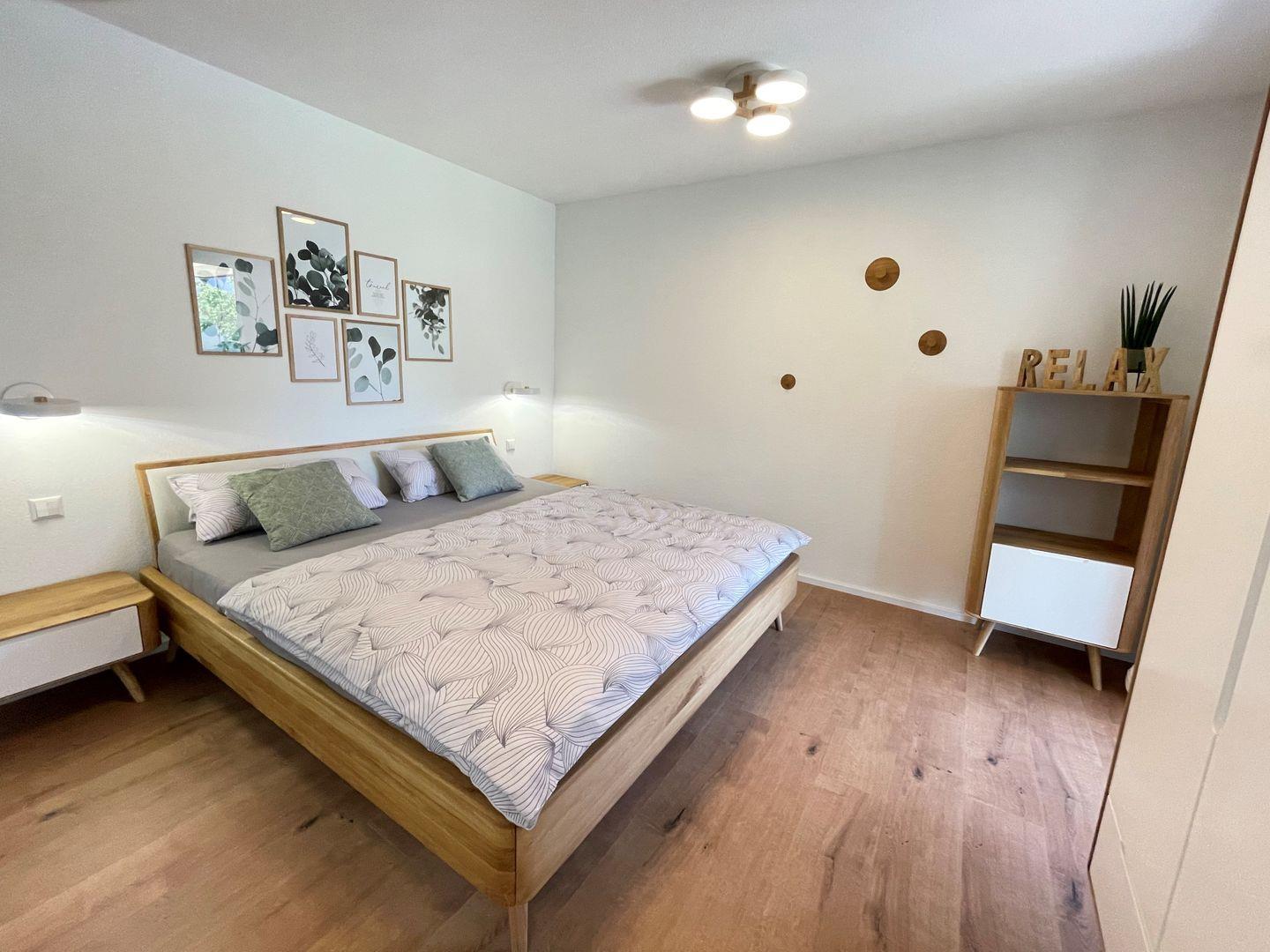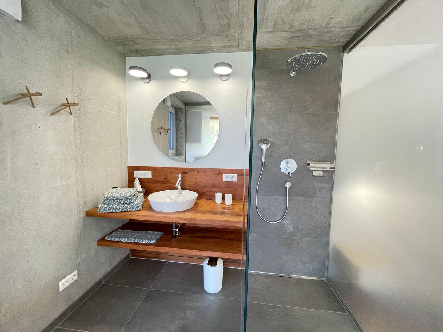 Die Ferienwohnung Torkelstube liegt im Gartengeschoss des Ferienhauses Rebhaus. Sie ist 42m² groß und besitzt eine Gartenterrasse und Liegewiese mit traumhaftem Ausblick. Von dieser Wohnung aus kann der Blick über den idyllischen Dorfkern von Sipplingen hinweg zum gegenüberliegenden Ufer des Bodensees bis zur Ortschaft Bodman schweifen. Die 2-Zimmer-Wohnung hat 1 Schlafzimmer, das mit einem Doppelbett (180x200cm) ausgestattet ist. Der offene Wohn- Essbereich mit integrierter Küche ist stilvoll und modern eingerichtet. Das durch Glaswände abgetrennte, modern gestaltete Tageslichtbad ist mit elegantem Waschtisch aus eingeöltem Birnbaumholz, WC und bodengleicher, direkt begehbarer Dusche ausgestattet.