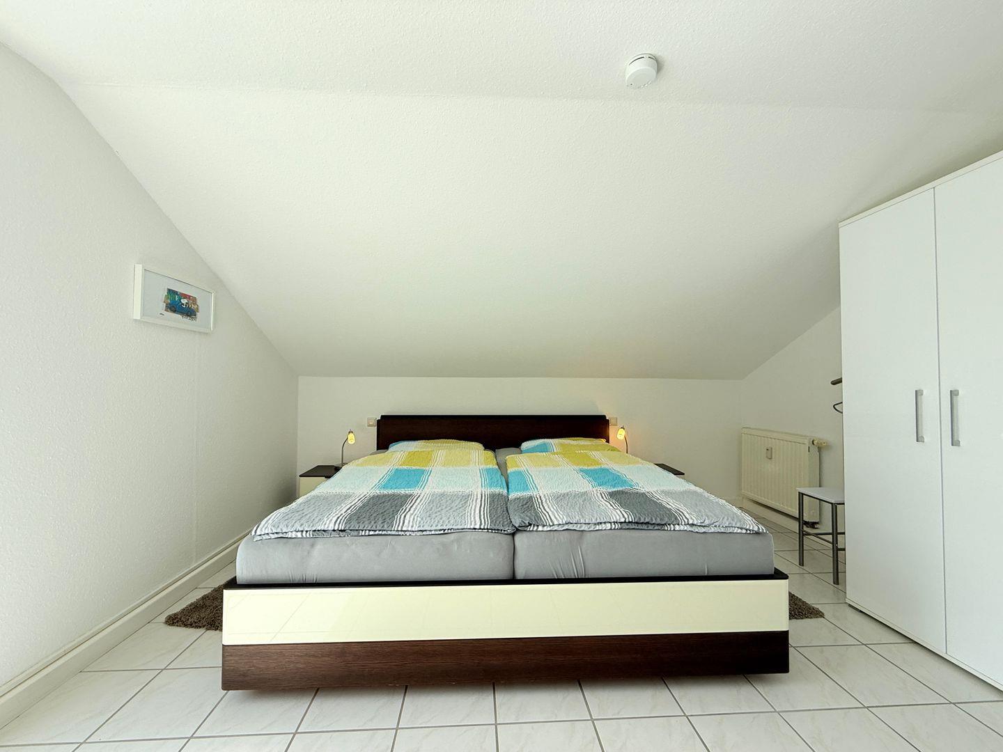 Das Schlafzimmer ist eine Oase der Ruhe und verfügt über einen Fliesenboden sowie reichlich Stauraum in der Kommode und Garderobe. Das geräumige Badezimmer ist mit einer Dusche, einem WC und einem Waschbecken ausgestattet und bietet alles, was Sie für Ihre persönliche Pflege benötigen. Hier genießen Sie dank der großen Fenster viel Tageslicht.