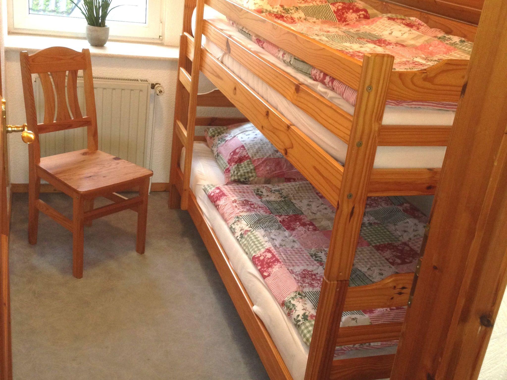 On the ground floor is the kitchen/living room and the bathroom/WC. On the top floor there are 2 separate bedrooms, one with a double bed plus single bed and the other with a bunk bed. The equipment includes a fitted kitchen with oven, 4-plate cooker, refrigerator, coffee maker, toaster, kettle, smart TV, W-LAN, as well as a private terrace including garden furniture and barbecue. Number of sleeping places: Double bed: 2 Single bed: 1 Bunk bed: 2 Optional extra bed: 1