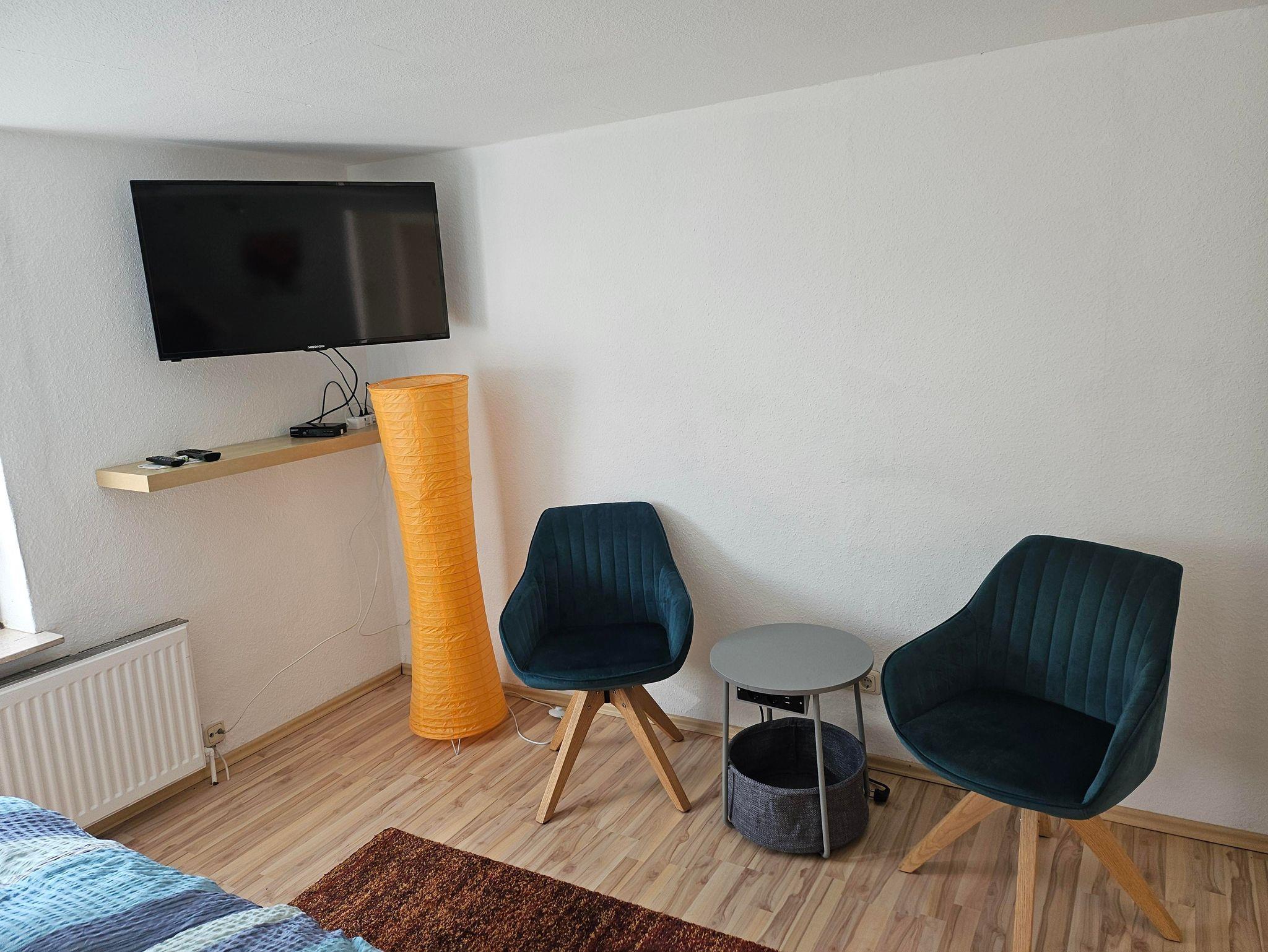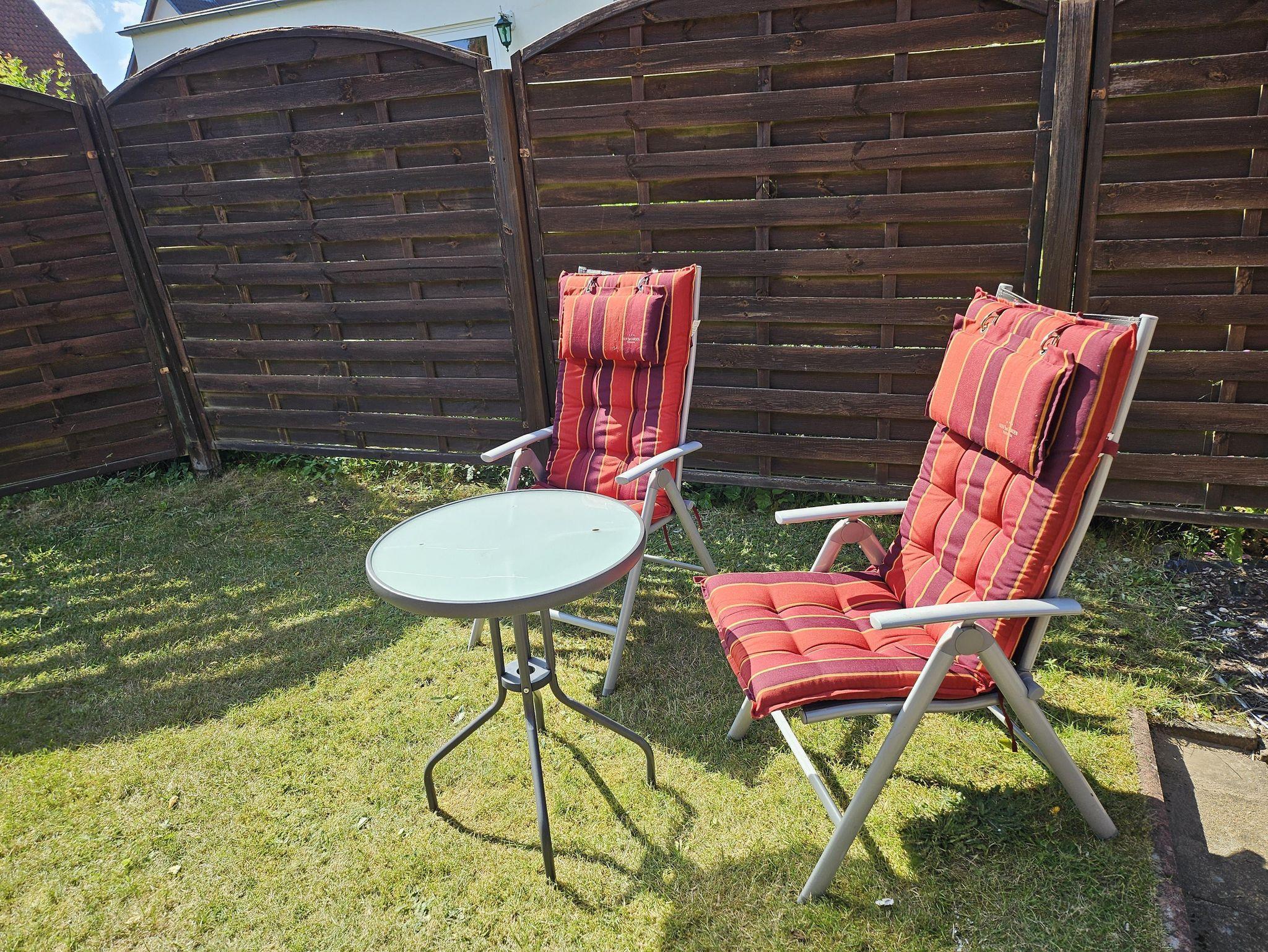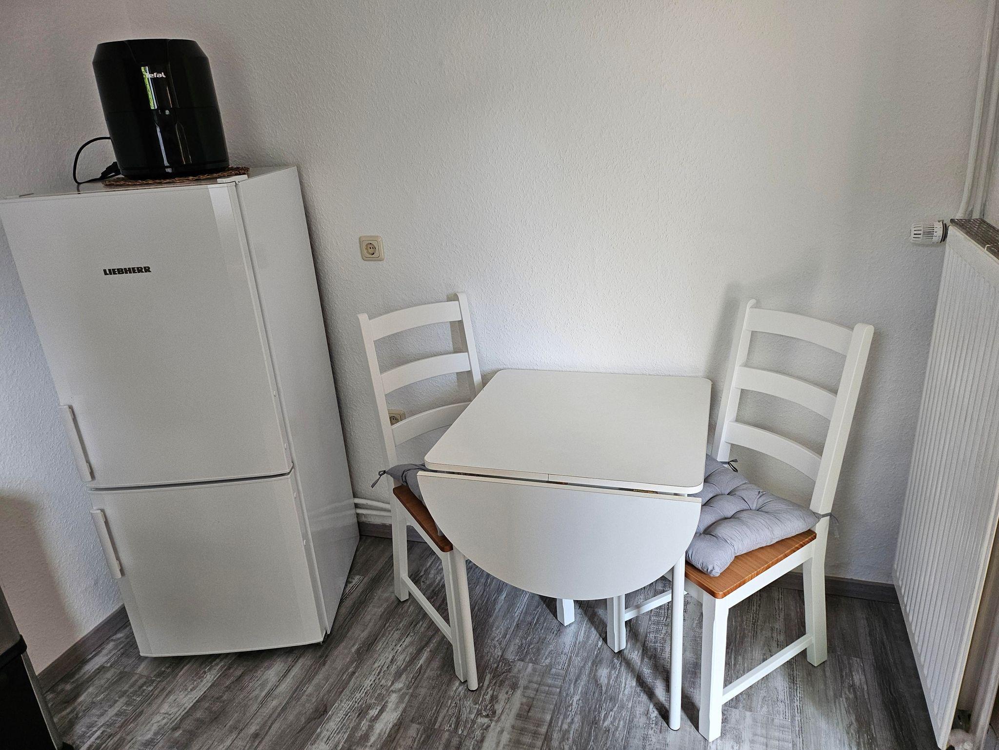 Eine kleine aber feine Ferienwohnung in einem Zweifamilienhaus mit eigenem Eingang. Die Wohnung ist ebenerdig mit Küche und Duschbad. Die Küche ist ausgestattet mit einer Heißluftfritteuse, einer Küchenzeile, einem Standkühlschrank und einer Sitzecke. Vom Flur in den kombinierten Wohn-/Schlafbereich gibt es eine kleine (0,25m) Erhöhung.Terrassenbestuhlung ist vorhanden.