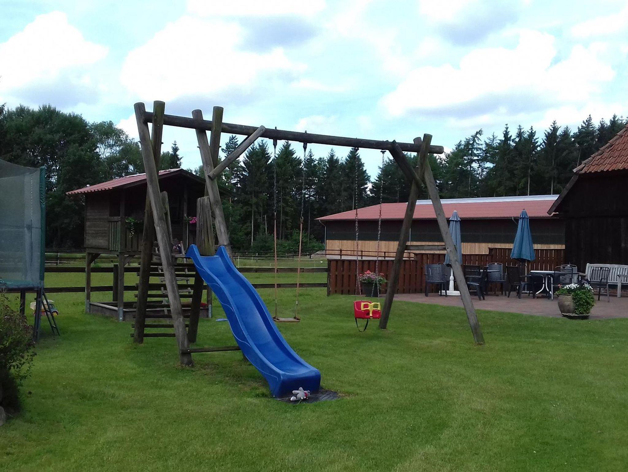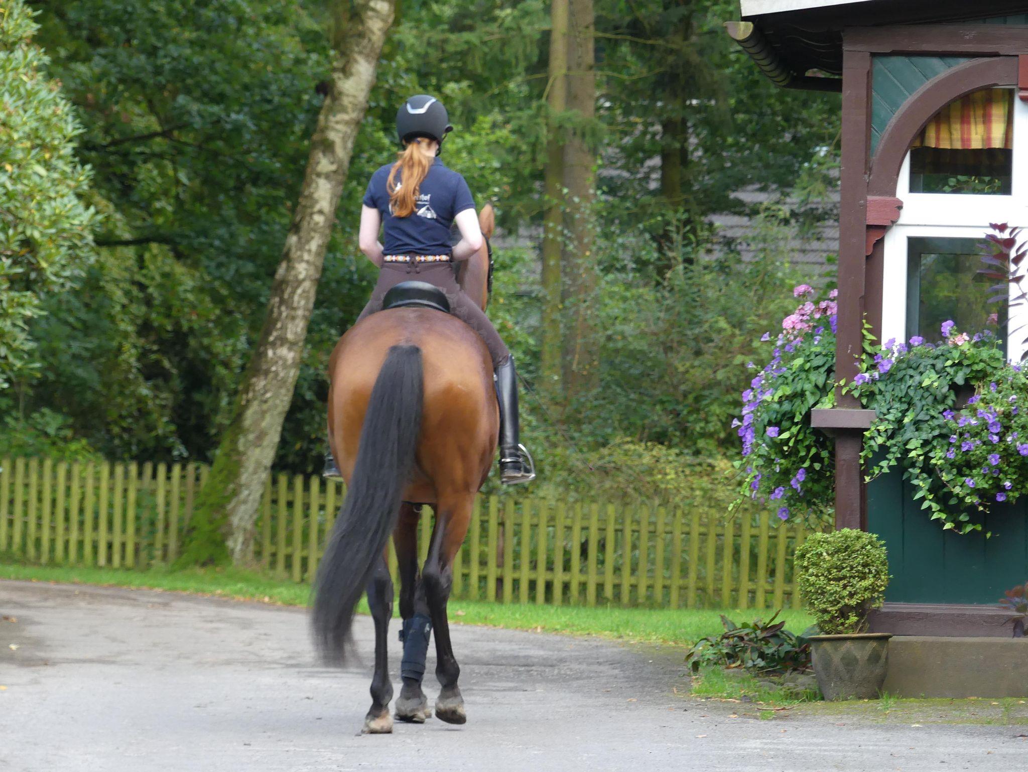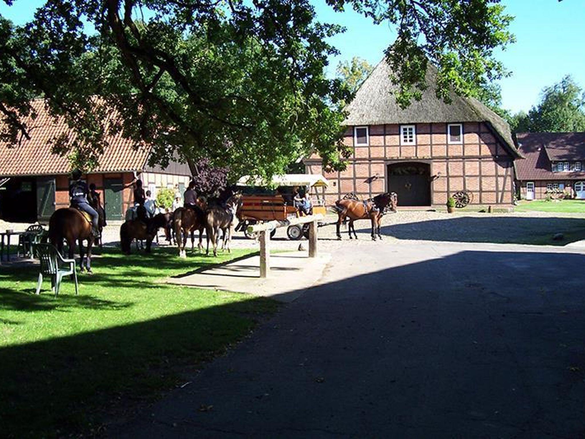 Auch Ihrem Pferd bietet der Theeshof eine Menge. Nur wenige Schritte von Ihrer Unterkunft entfernt, liegt unser FN- und VFD-ausgezeichnete Pensionsstall. Hier werden Ihre Vierbeiner optimal versorgt: Es gibt geräumige Außenboxen, Weidegang auf Wunsch, 2 x täglich Kraftfutter und Heu/Silage, kilometerlange Sandreitwege in naturbelassener Landschaft, eine 1 km lange Galoppbahn mit Natursprüngen, Außenreit-/Springplatz und einen schönen Badeteich zur Abkühlung! Das herrliche Ausreitgelände beginnt direkt bei uns vor der Tür.