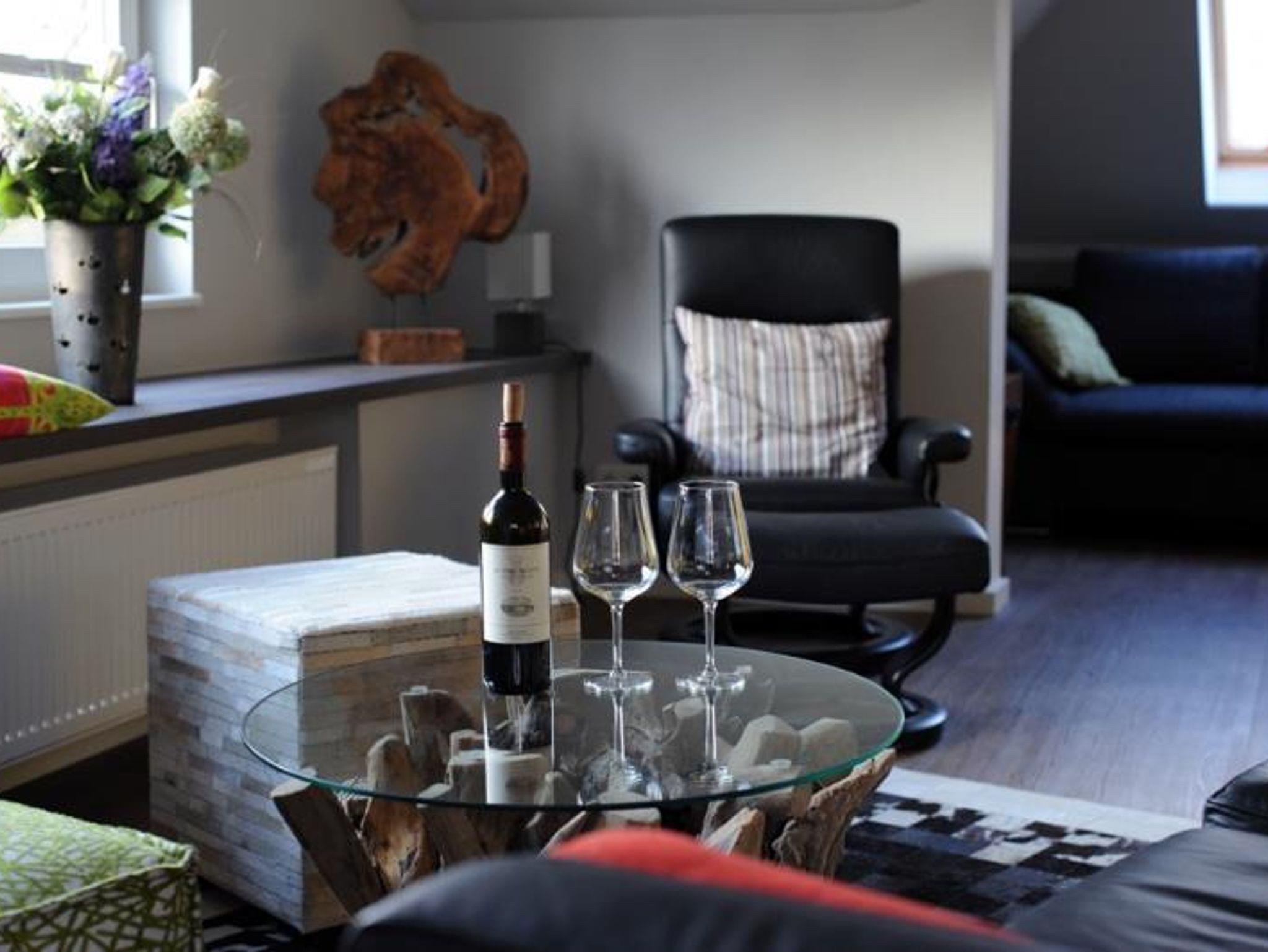 die ZWEI: Die Kleine für 1-2 mit dem gewissen Etwas. 2.5 Zi., 52 qm plus Schrägen, Panoramafenster mit Sitzsims, Kaminofen, Boxspringbett, Walk-in-Duschbad