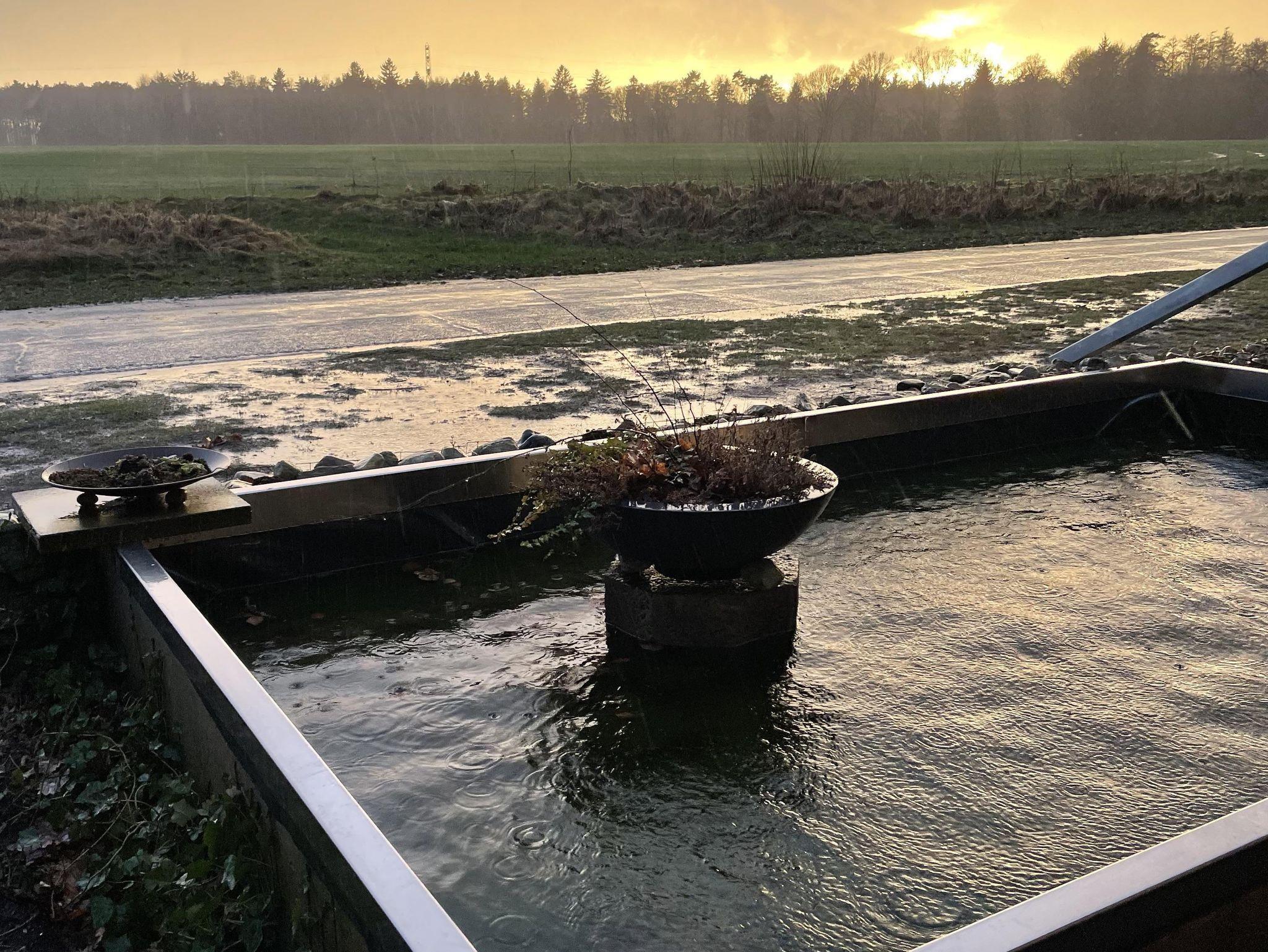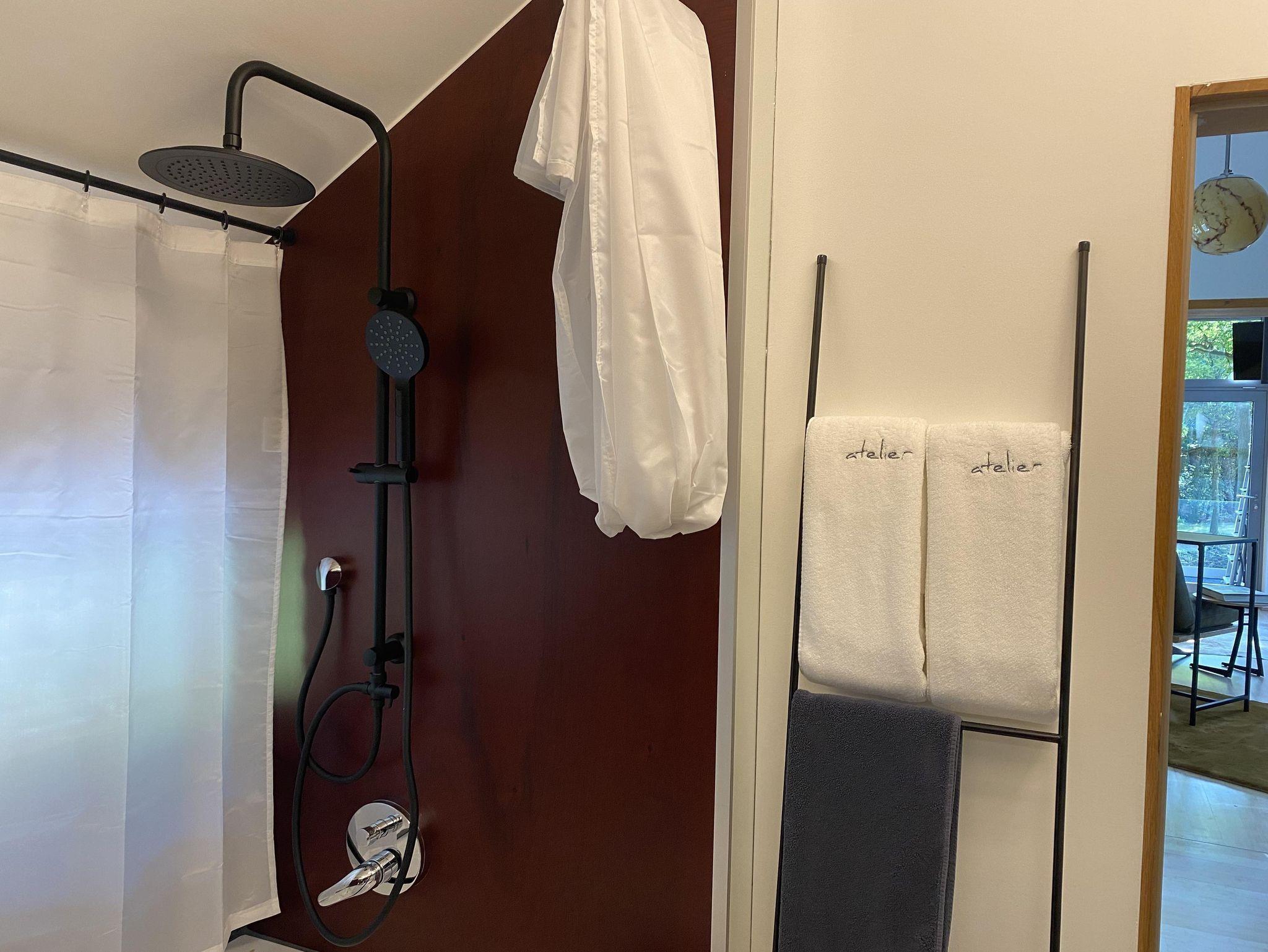 Ein überdachter, windgeschützter Außenbereich mit Lounge-Möblierung ist direkt vom Atelier aus zu begehen.