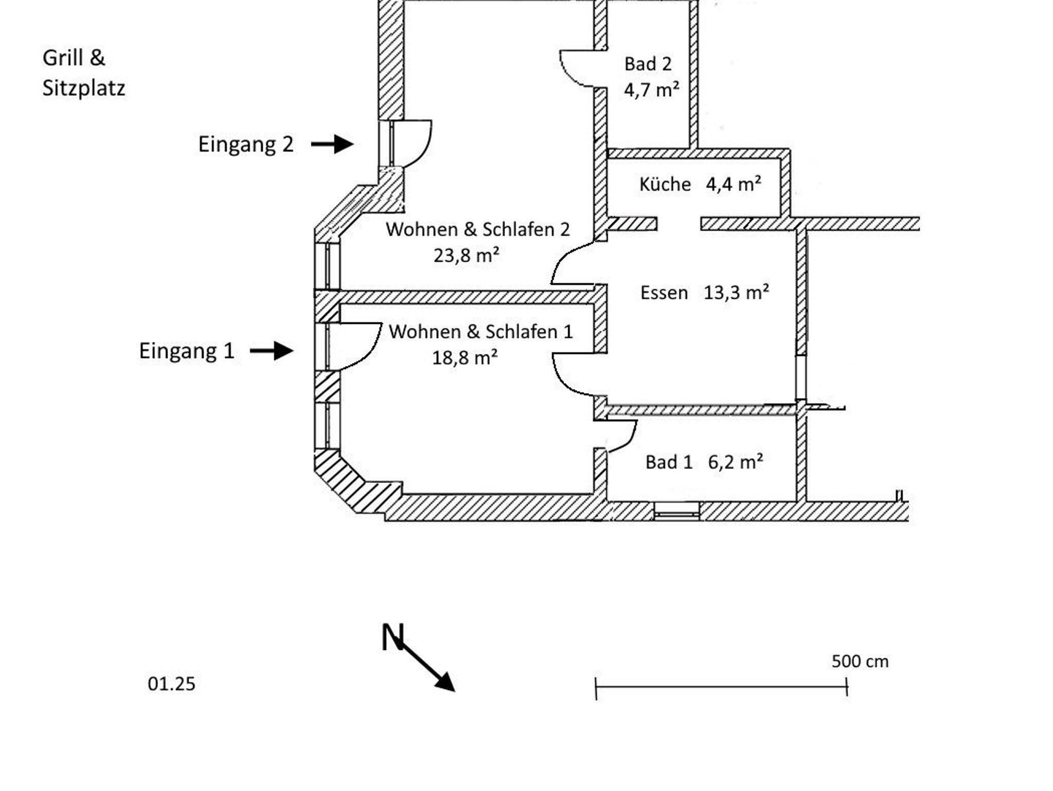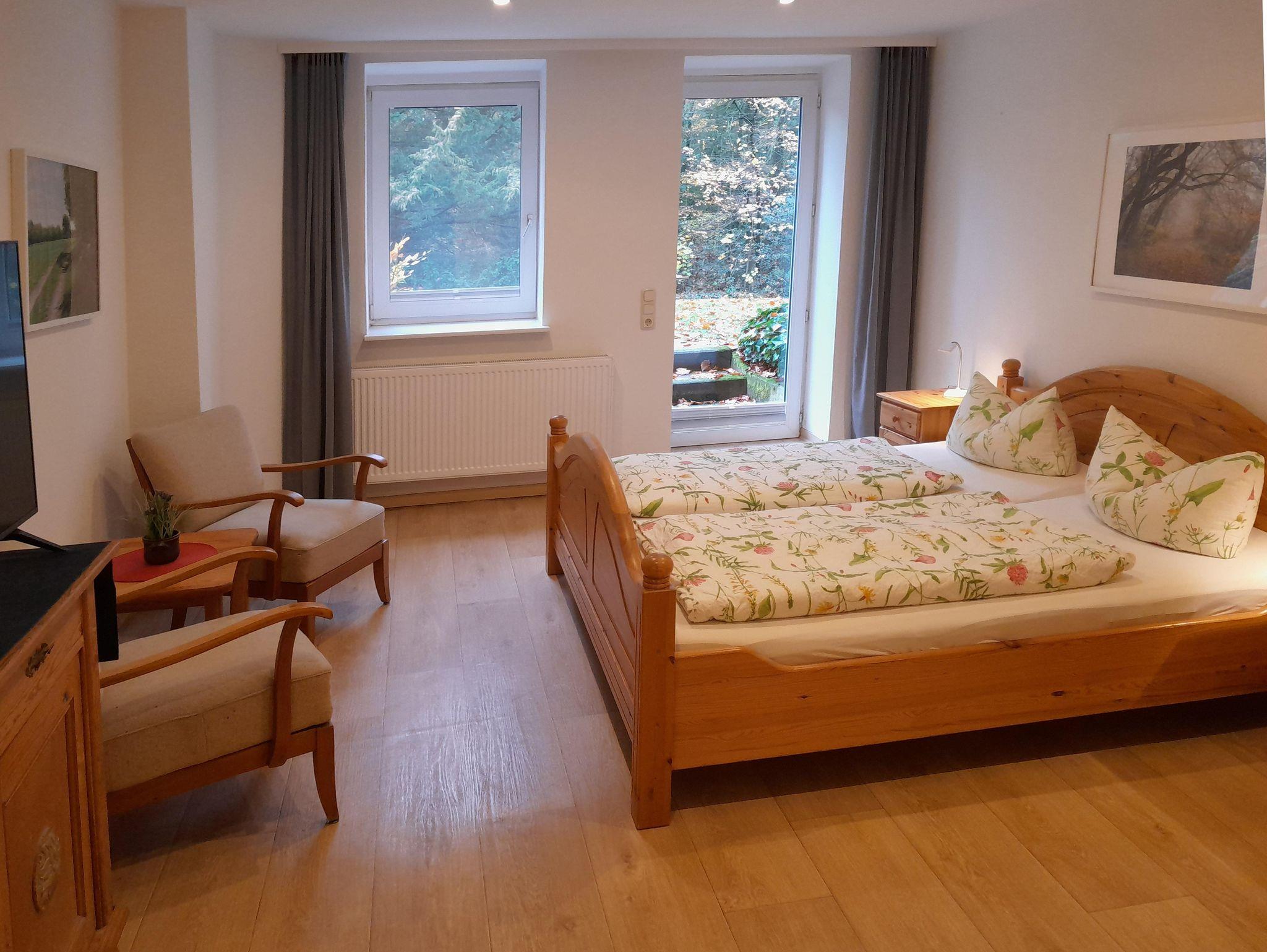 für 2-4 Pers. (max. 4 Erwachsene), 65 qm, 2 Schlafräume, 2 Bäder, Esszimmer, gut ausgestattete Küche, Sitzplatz mit wunderschönem Parkblick, 2 Eingänge. Frühstück (Zusatzleistung) zubuchbar.