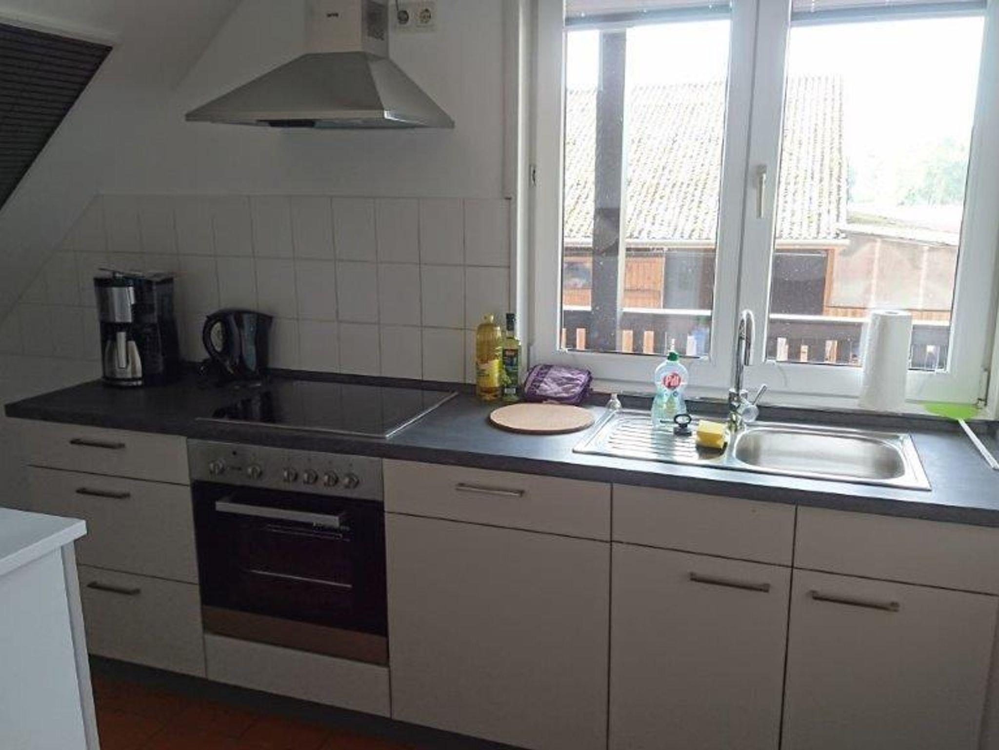 Die neue Einbauküche ist mit Kühlschrank, 4-Platten-Ceran-Kochfeld, Mikrowelle, Backofen und Geschirrspüler ausgestattet. Es gibt Toaster, Kaffeemaschine, Wasserkocher und ausreichend Geschirr, Besteck, Gläser und Töpfe.