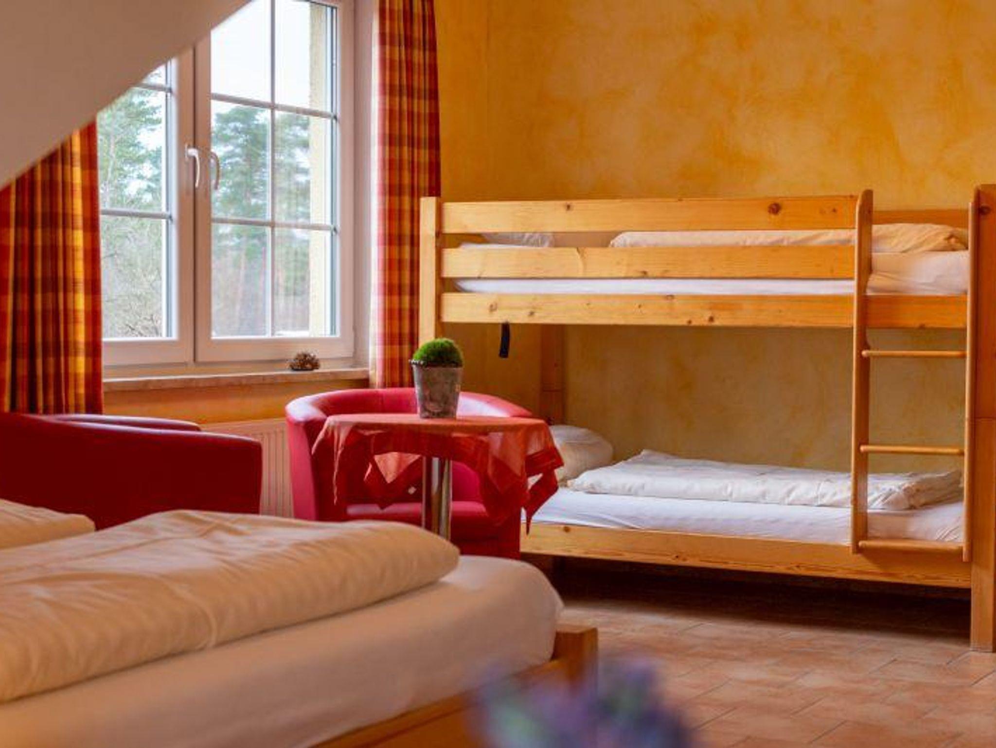 Die Mehrbettzimmer (bis zu 4 Personen) besitzen zusätzlich noch ein Einzelbett bzw. ein Etagenbett. Ein Zustellbett kann auf Anfrage hinzugebucht werden.