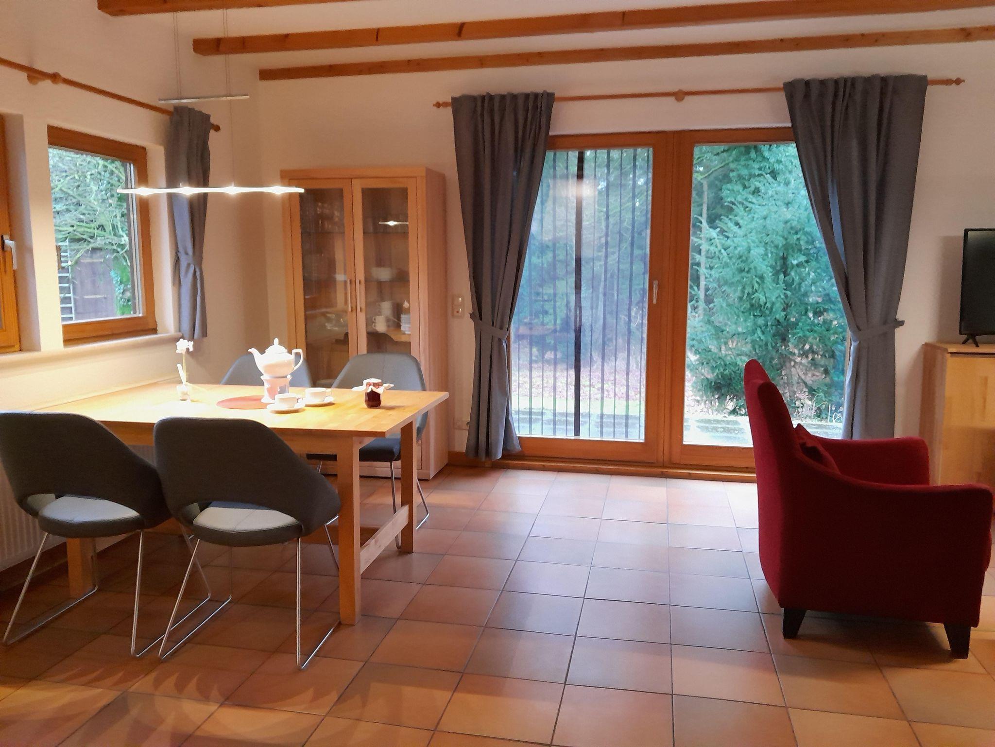 Für 2-4 Pers., 70 qm, 2019 komplett renoviert. 2 Schlafräume als Doppelzimmer, aus einem der Zimmer führt eine Treppe auf einen Schlafboden mit zwei zubuchbaren Betten 90 cm x 200 cm. Im OG ein WC, im EG Dusche/WC, gut ausgestattete Küche , Wohnzimmer mit Terrasse zum Wald, Fußbodenheizung, Frühstück (Zusatzleistung) zubuchbar.