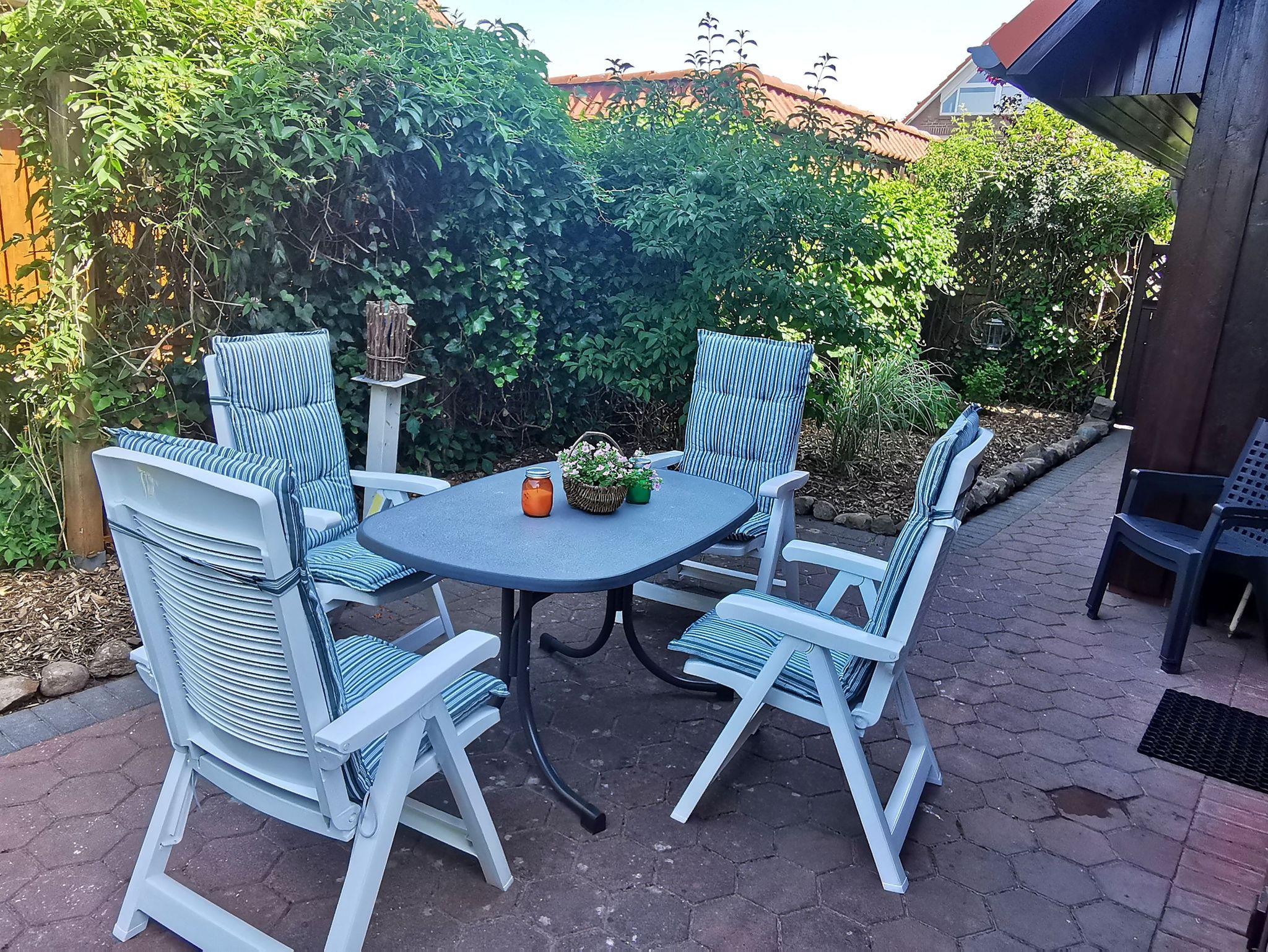 Direkt von dem Wohnzimmer gelangt man auf die sichtgeschützte Terrasse.