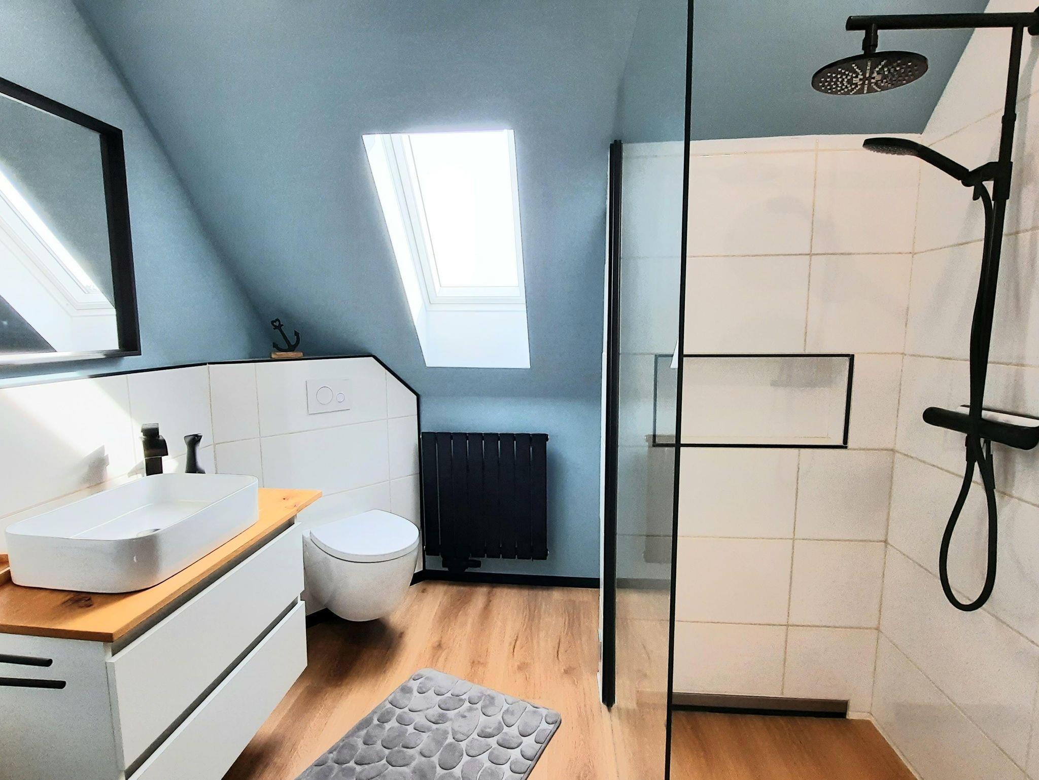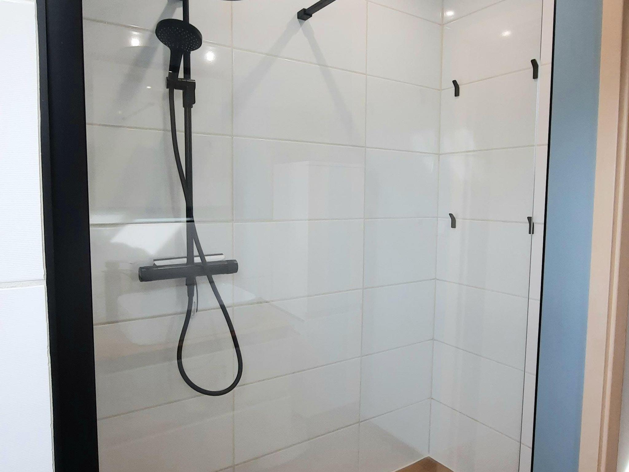 Im Badezimmer befindet sich eine Walk In Dusche, sowie genügend Stauraum für Ihre persönlichen Sachen.