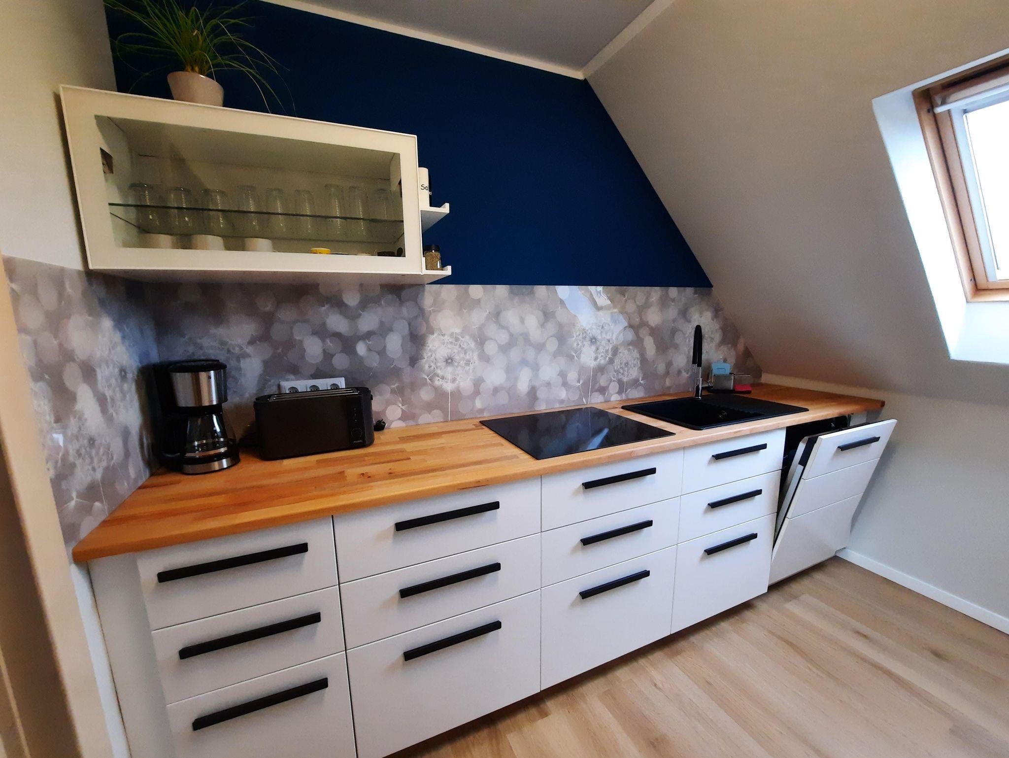 Die Küche bietet alles, was Gäste brauchen: Induktionskochfeld, Ofen, Mikrowelle, Kaffeemaschine und vieles mehr.