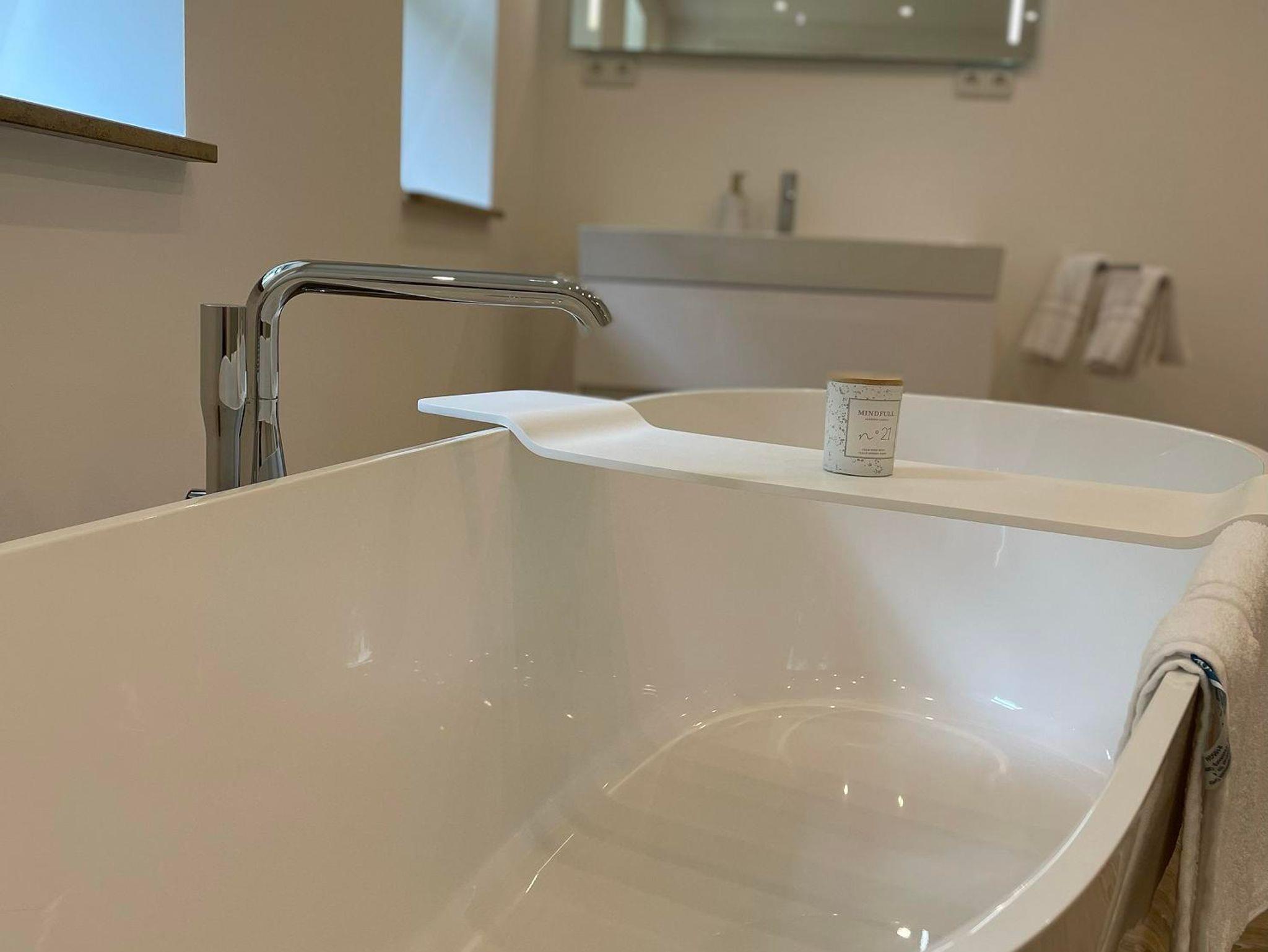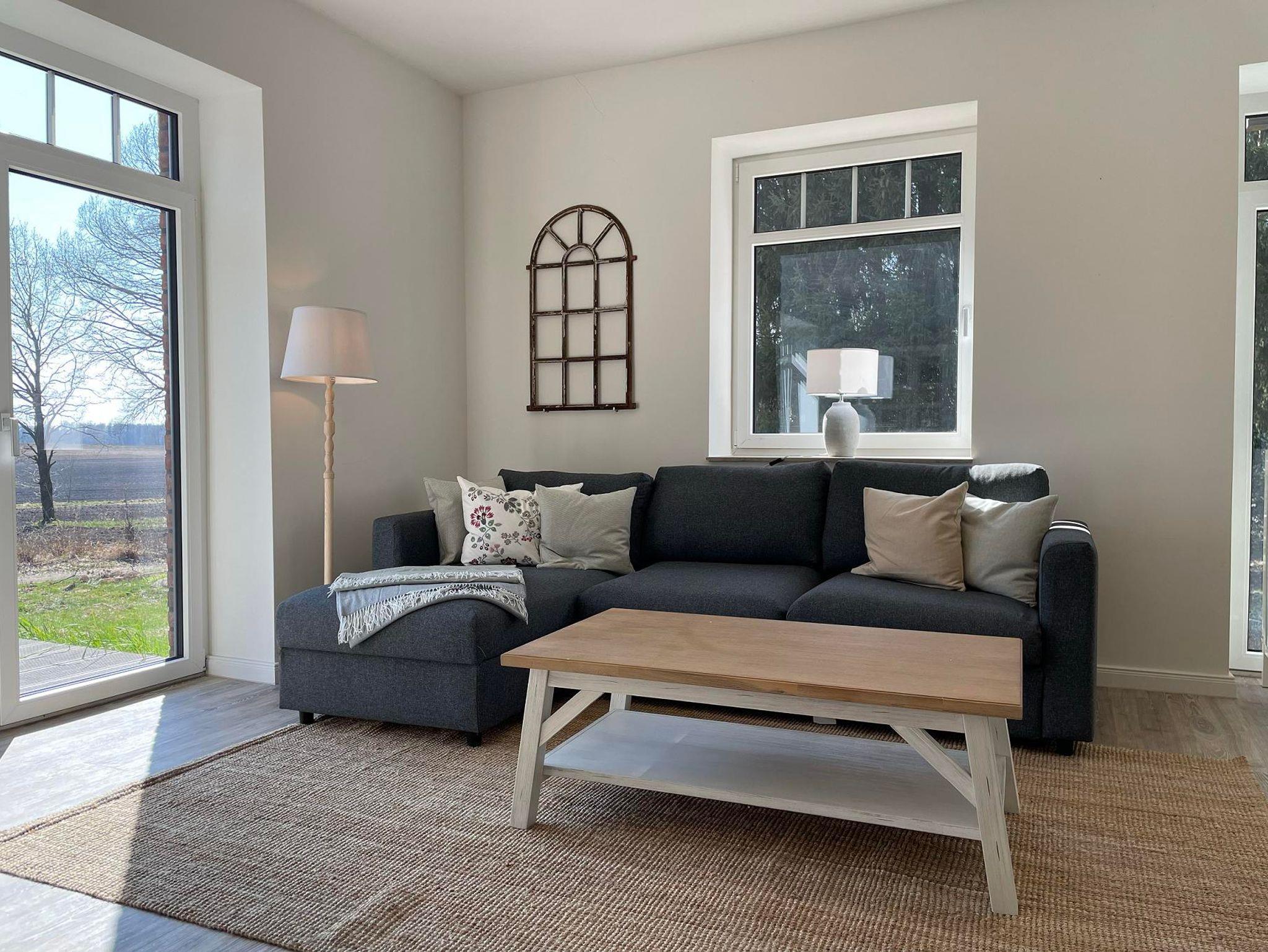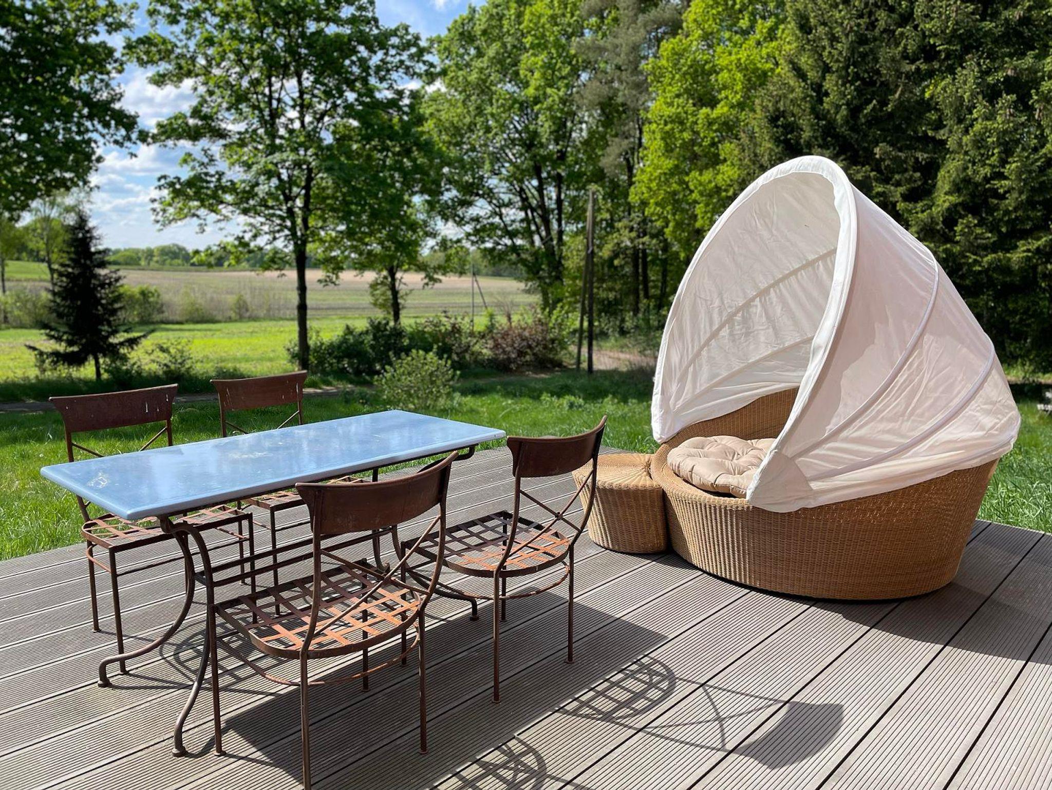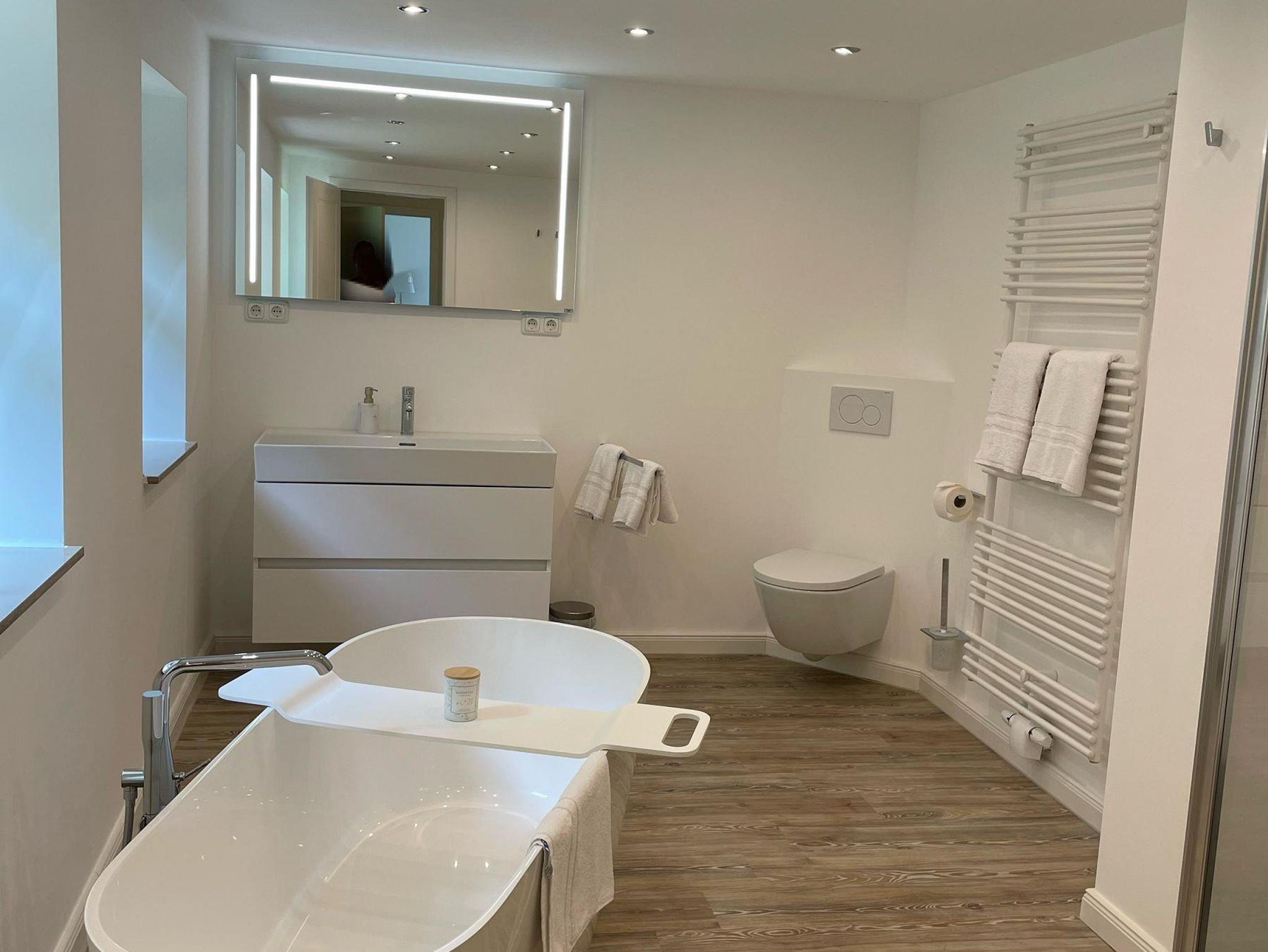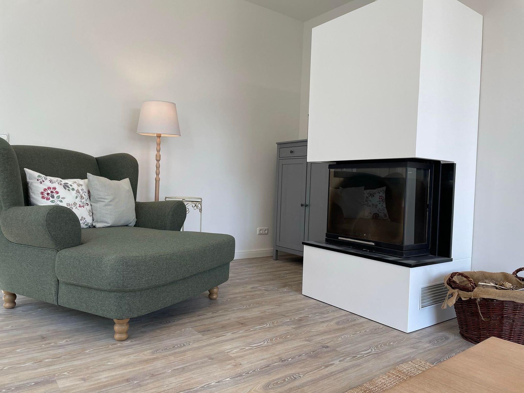 Unsere Ferienwohnung Marlene befindet sich im Erdgeschoss des haupthauses und ist unsere Schmuckstück für eine tolle Zeit zu Zweit bzw. zu Viert. Ihr habt eine großzügige Südterrasse ganz für euch allein, die einen weiten Blick über Felder und Wiesen bietet und wunderbar ist, um beim Beobachten von reh, Fuchs und Hase die Seele baumeln zu lassen. In dem außergewöhnlichen, lichtdurhchfluteten Wohn-/Essbereich mit großer offener Küche habt ihr ausreichend Platz, um es euch richtig gemütlich zu machen. Eines der Highlights der Wohnung ist der XL Sessel vor dem Kamin, der zum Lesen und Herunterfahren einlädt. Im Schlafzimmer könnt ihr in einem 1,80 m Boxspring Bett mal richtig schön in Mitten der Natur ausschlafen. Ein weiteres Highlight der Wohnung ist das große Wellnessbadezimmer mit freistehender Badewanne und großer Dusche.