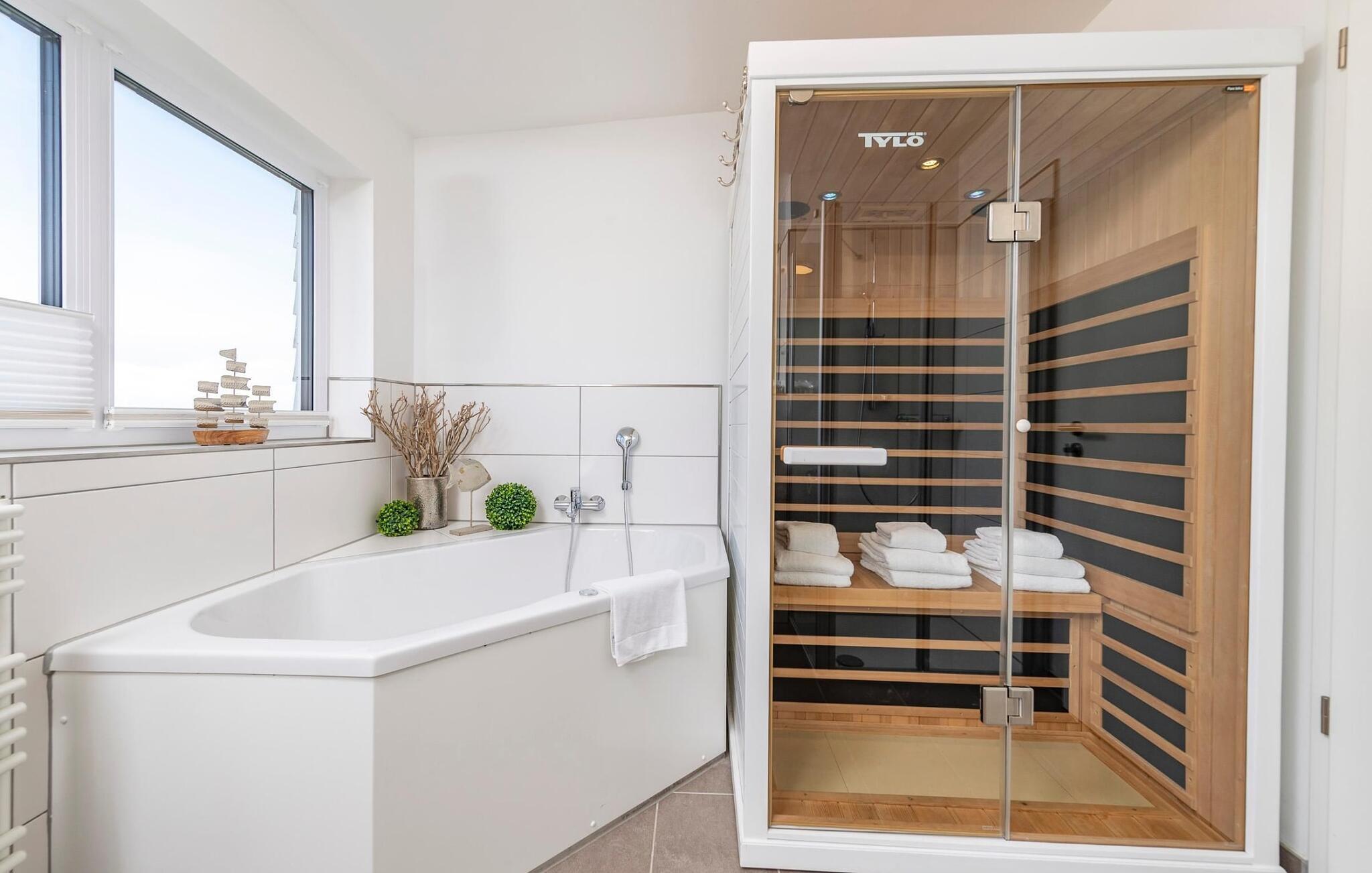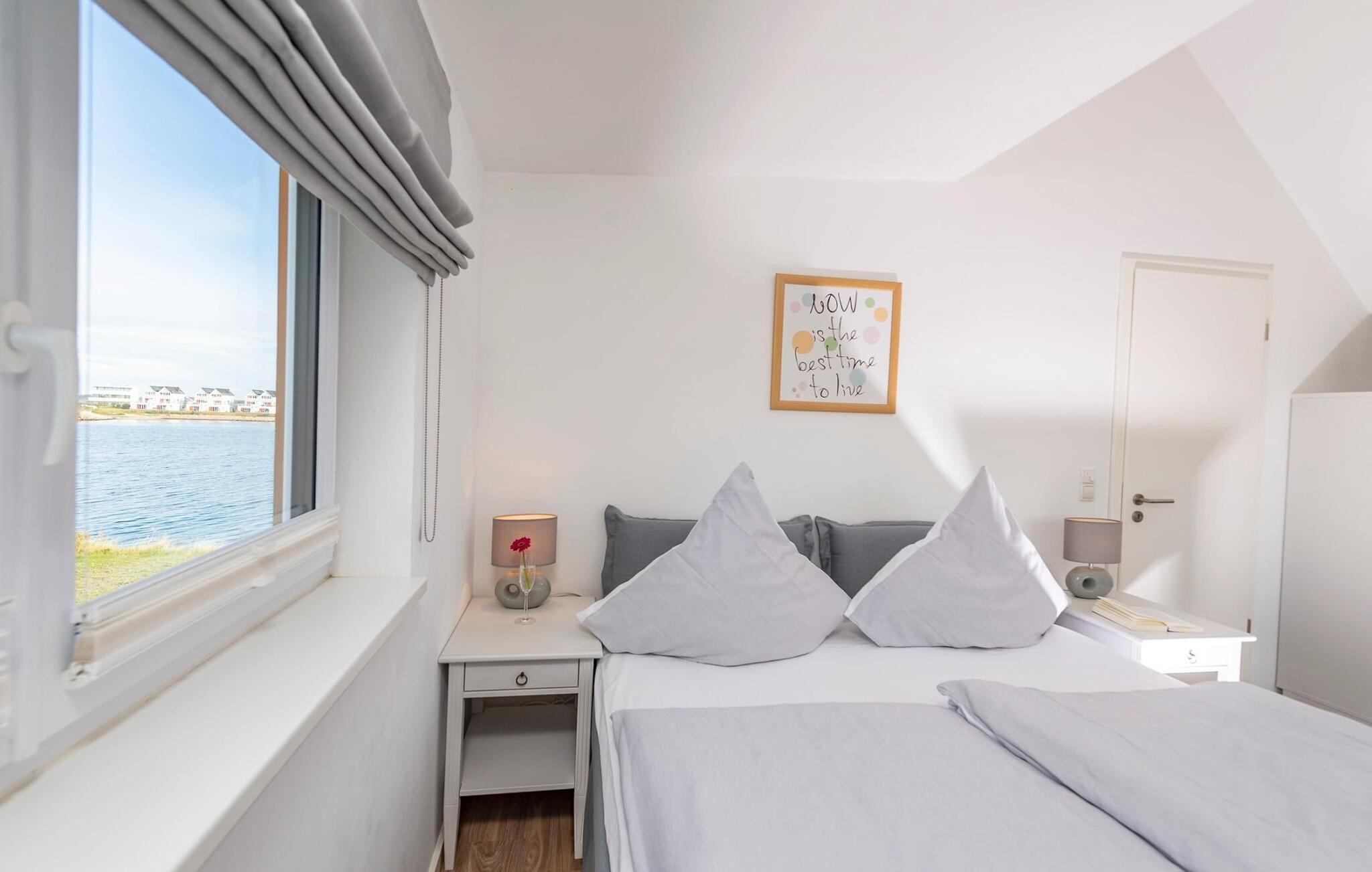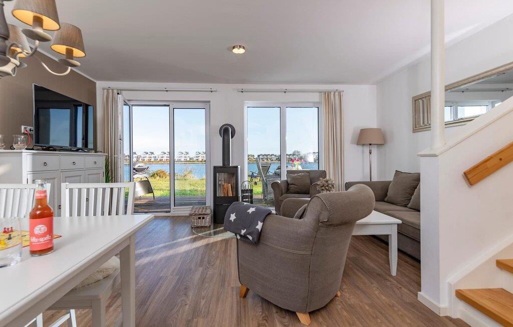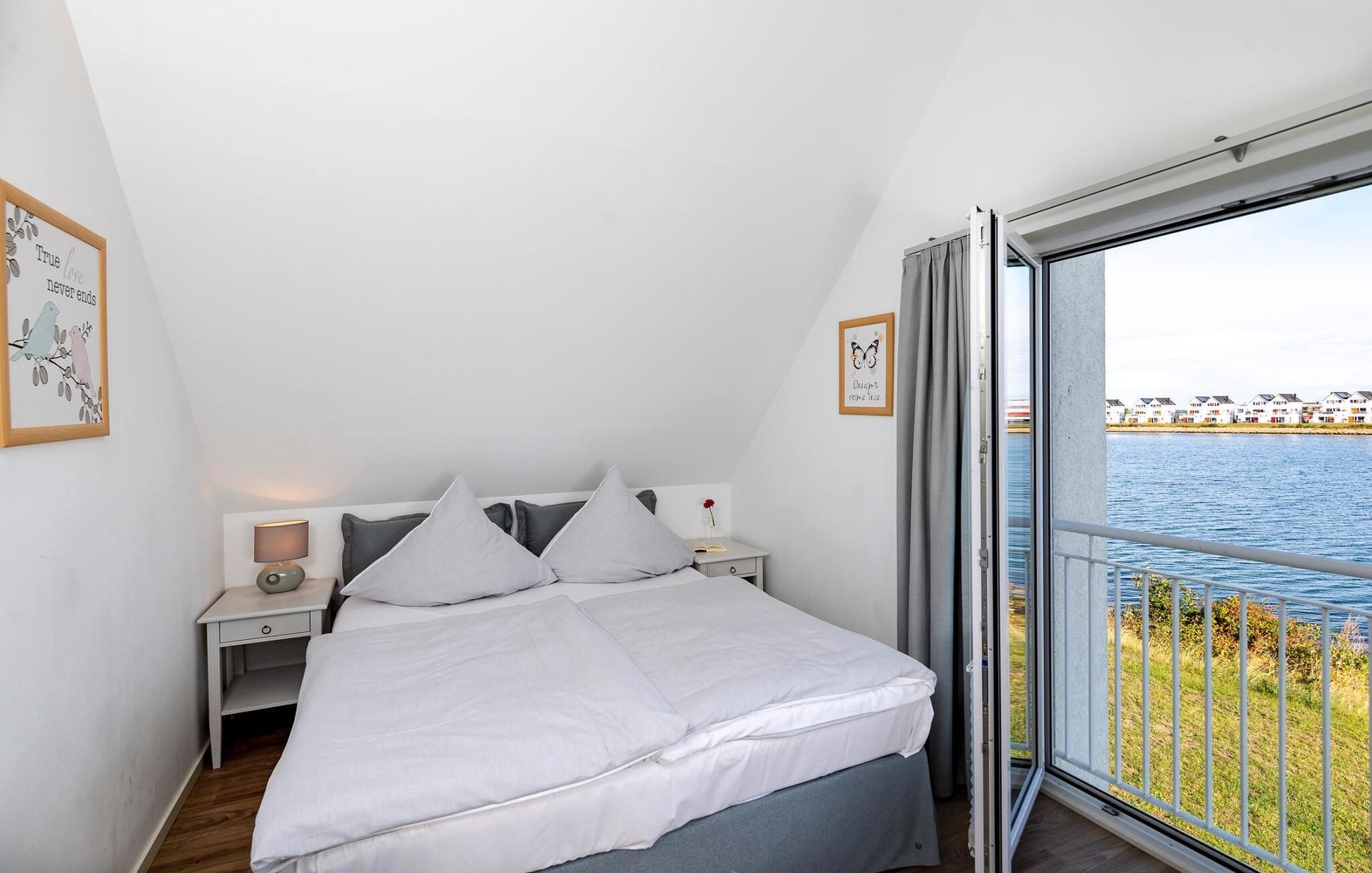 Et fritliggende feriehus i første række lige ud til vandet med fri udsigt til havneindløbet og sejl- og sportsbådshavnen i OstseeResort Olpenitz. Sandstranden Weidefelder ligger i umiddelbar nærhed og kan nås til fods, mens det grønne område omkring huset indbyder til leg og afslapning. Panoramaterrassen byder på en fænomenal udsigt over Østersøen og indbyder til at nyde grillaftener sammen i havnebiografen. Gulvvarme og pejs giver hygge i hver sæson, mens det private wellnessområde med spabad og sauna inviterer til dyb afslapning. Familievenligt og åbent, dette feriehus tilbyder fuld feriekomfort. Den åbne stue/spisestue i stueetagen er husets centrum. Den direkte havudsigt kan nydes her både mens man spiser sammen og fra stuen i en hyggelig aften ved pejsen. Fladskærms-tv med hjemmeunderholdningsprogram sørger også for underholdning. Herfra er der udgang til terrassen i tilknytning til opholdsstuen, som indbyder til at blive hængende lige ved vandet. Hvad enten det er en fælles grillaften med en let sommerbrise eller en solid morgenmad, er havnebiografen her garanteret. Haven omkring huset giver plads til leg og solbadning. Det spisekøkken, der støder op til stue/alrum, er af høj kvalitet og fuldt udstyret. Der er to soveværelser på første sal. Mens det store soveværelse imponerer med en fantastisk udsigt over havnen og Østersøen, har det andet soveværelse et ekstra fladskærms-tv med hjemmeunderholdningsprogram. Sommer Kajüte sommerhus byder på luksusen med to badeværelser, et på hver stueplan. Saunaen (infrarød varmekabine) og hjørnespabadet på første sal lover ren wellness. I kan også nyde en fænomenal udsigt, mens I børster tænder, da passerende sejlskibe i spejlet åbner nye perspektiver mod en fantastisk kulisse. Et brusebad i stueetagen giver ekstra komfort. Der er to parkeringspladser lige foran huset. Der er også et cykelskur lige foran huset. Vores favoritsted: Se havnebiografen fra terrassen og bare slap af. Bemærk venligst: OstseeResort Olpenitz er meget populært, og der bygges fortsat i parken. Ikke desto mindre kan I se frem til en 5-stjernet standard og et førsteklasses ophold. Byggeaktiviteterne kommer ikke til at forstyrre jer på ferien, og derfor gives der ikke yderligere afslag i prisen.