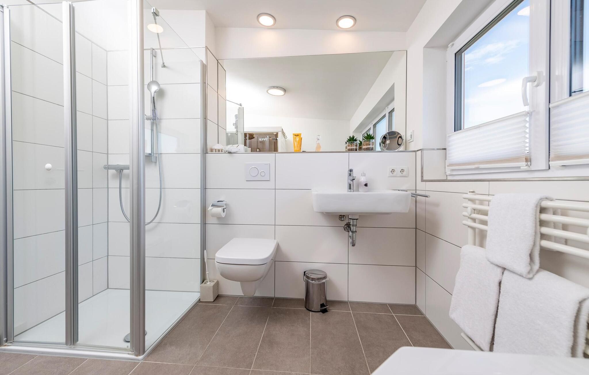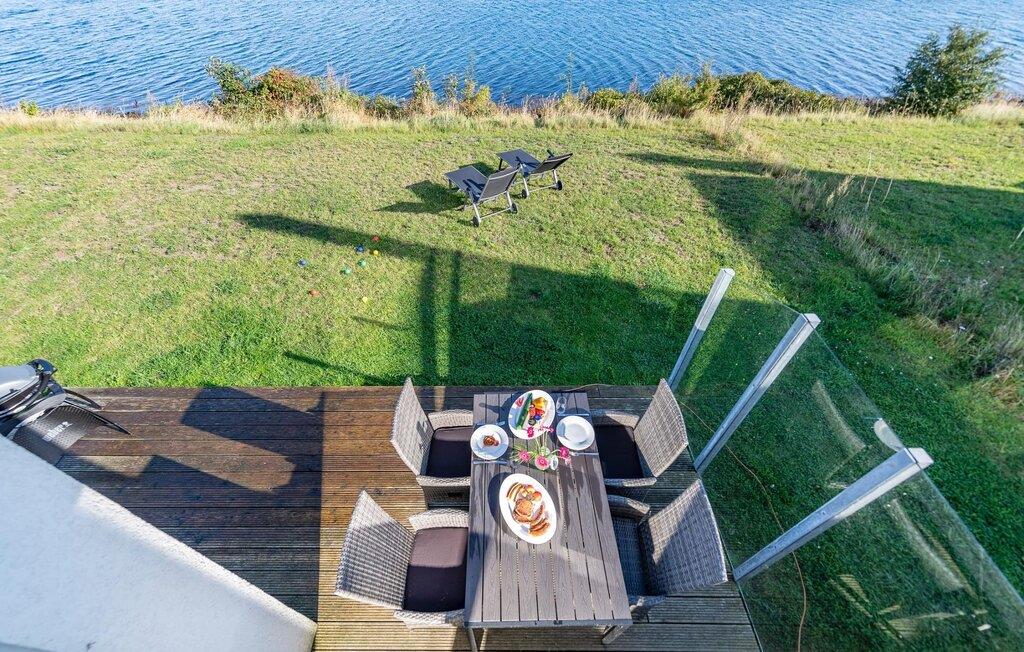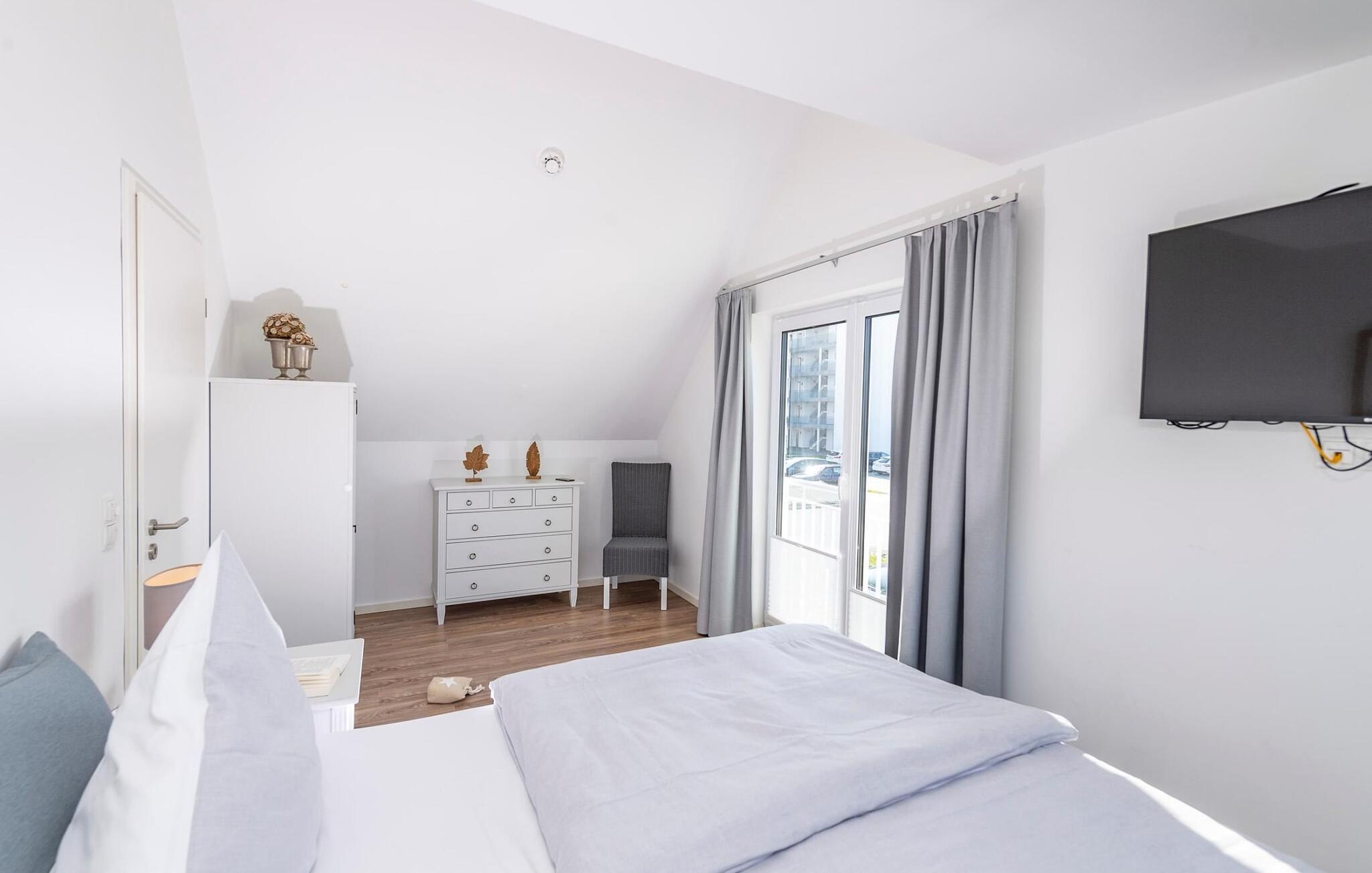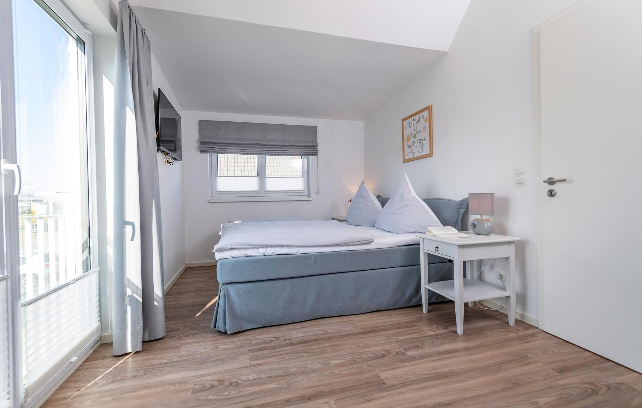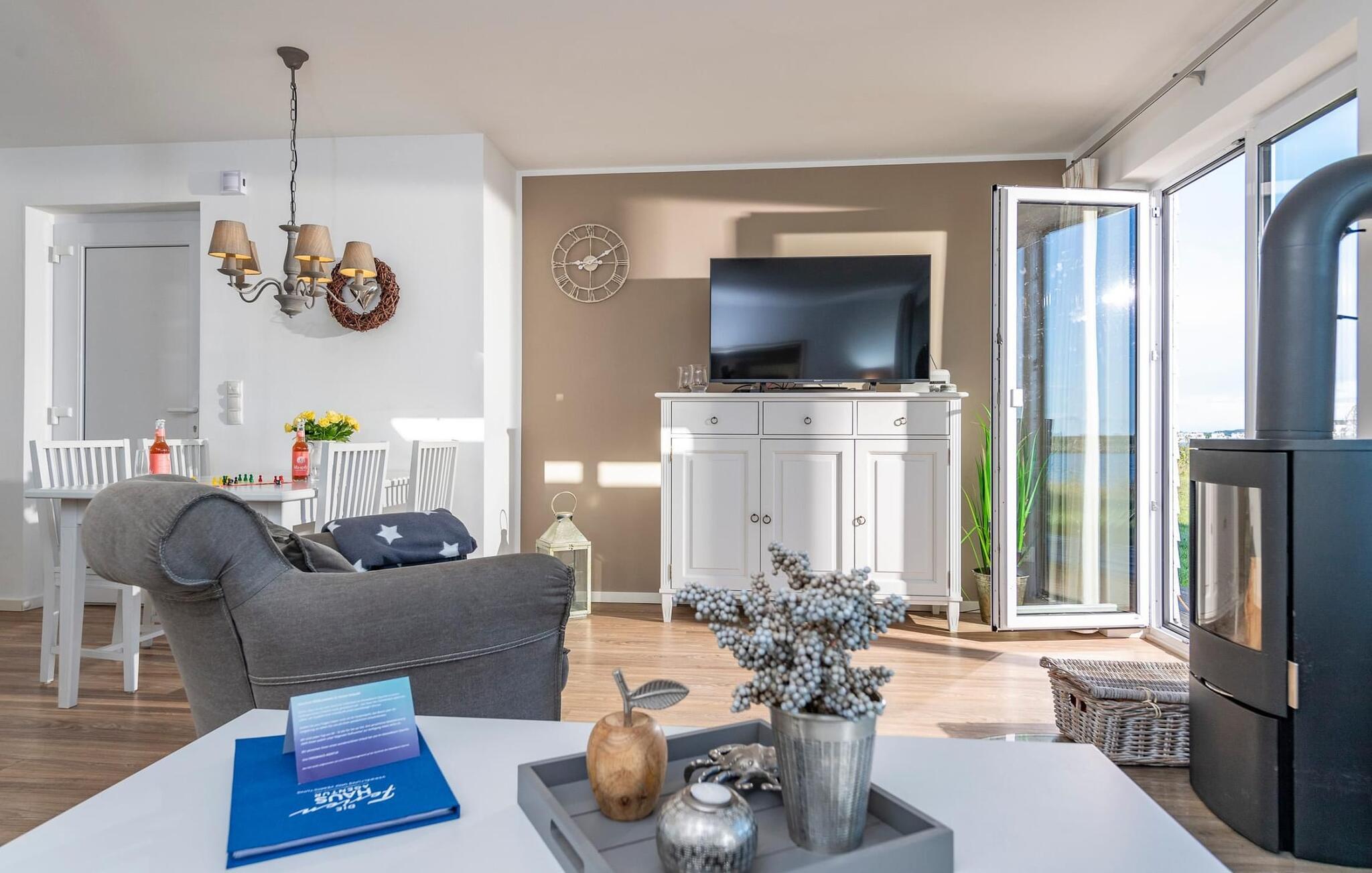 Et fritliggende feriehus i første række lige ud til vandet med fri udsigt til havneindløbet og sejl- og sportsbådshavnen i OstseeResort Olpenitz. Sandstranden Weidefelder ligger i umiddelbar nærhed og kan nås til fods, mens det grønne område omkring huset indbyder til leg og afslapning. Panoramaterrassen byder på en fænomenal udsigt over Østersøen og indbyder til at nyde grillaftener sammen i havnebiografen. Gulvvarme og pejs giver hygge i hver sæson, mens det private wellnessområde med spabad og sauna inviterer til dyb afslapning. Familievenligt og åbent, dette feriehus tilbyder fuld feriekomfort. Den åbne stue/spisestue i stueetagen er husets centrum. Den direkte havudsigt kan nydes her både mens man spiser sammen og fra stuen i en hyggelig aften ved pejsen. Fladskærms-tv med hjemmeunderholdningsprogram sørger også for underholdning. Herfra er der udgang til terrassen i tilknytning til opholdsstuen, som indbyder til at blive hængende lige ved vandet. Hvad enten det er en fælles grillaften med en let sommerbrise eller en solid morgenmad, er havnebiografen her garanteret. Haven omkring huset giver plads til leg og solbadning. Det spisekøkken, der støder op til stue/alrum, er af høj kvalitet og fuldt udstyret. Der er to soveværelser på første sal. Mens det store soveværelse imponerer med en fantastisk udsigt over havnen og Østersøen, har det andet soveværelse et ekstra fladskærms-tv med hjemmeunderholdningsprogram. Sommer Kajüte sommerhus byder på luksusen med to badeværelser, et på hver stueplan. Saunaen (infrarød varmekabine) og hjørnespabadet på første sal lover ren wellness. I kan også nyde en fænomenal udsigt, mens I børster tænder, da passerende sejlskibe i spejlet åbner nye perspektiver mod en fantastisk kulisse. Et brusebad i stueetagen giver ekstra komfort. Der er to parkeringspladser lige foran huset. Der er også et cykelskur lige foran huset. Vores favoritsted: Se havnebiografen fra terrassen og bare slap af. Bemærk venligst: OstseeResort Olpenitz er meget populært, og der bygges fortsat i parken. Ikke desto mindre kan I se frem til en 5-stjernet standard og et førsteklasses ophold. Byggeaktiviteterne kommer ikke til at forstyrre jer på ferien, og derfor gives der ikke yderligere afslag i prisen.