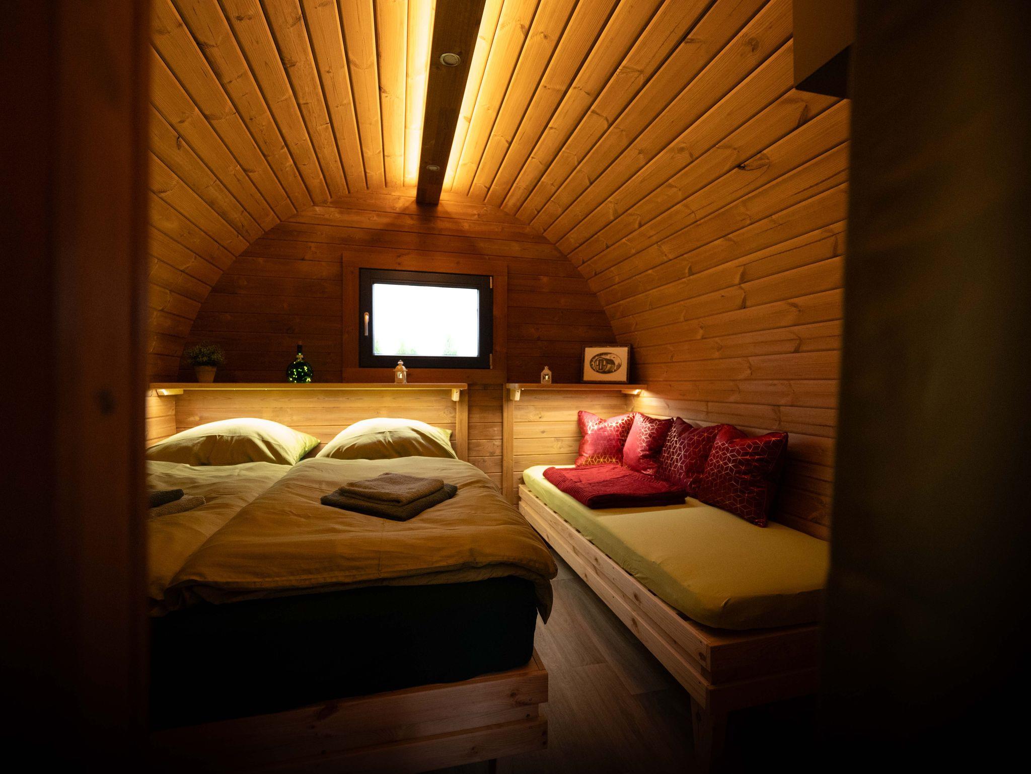 Für erholsamen Schlaf stehen Ihnen ein komfortables Doppelbett (150x200 cm) und ein Einzelbett (70x200 cm) zur Verfügung, bezogen mit frischer Bettwäsche. Dank kostenfreiem WLAN bleiben Sie immer verbunden, und für Unterhaltung sorgt ein DAB+/Bluetoothradio.