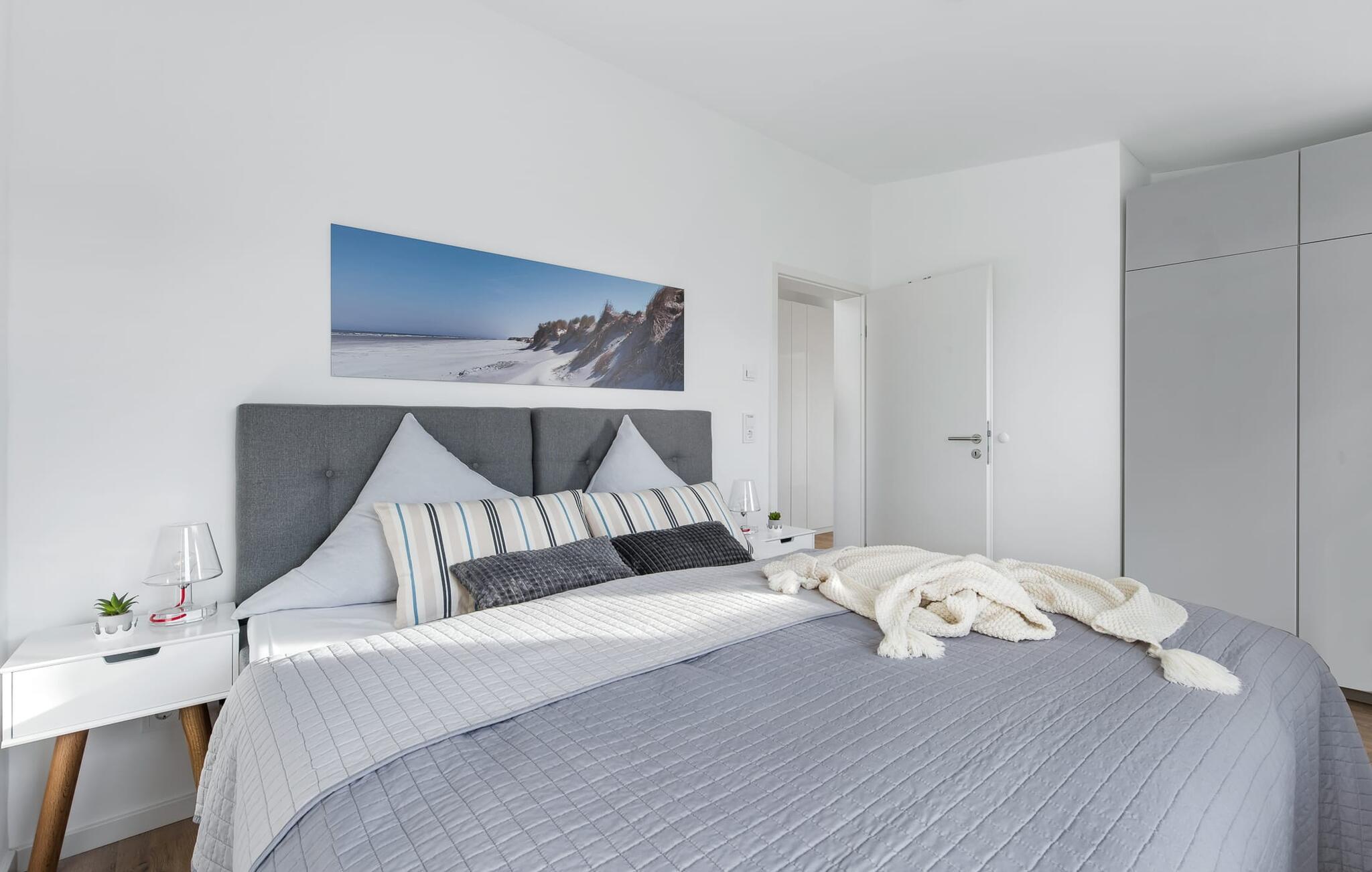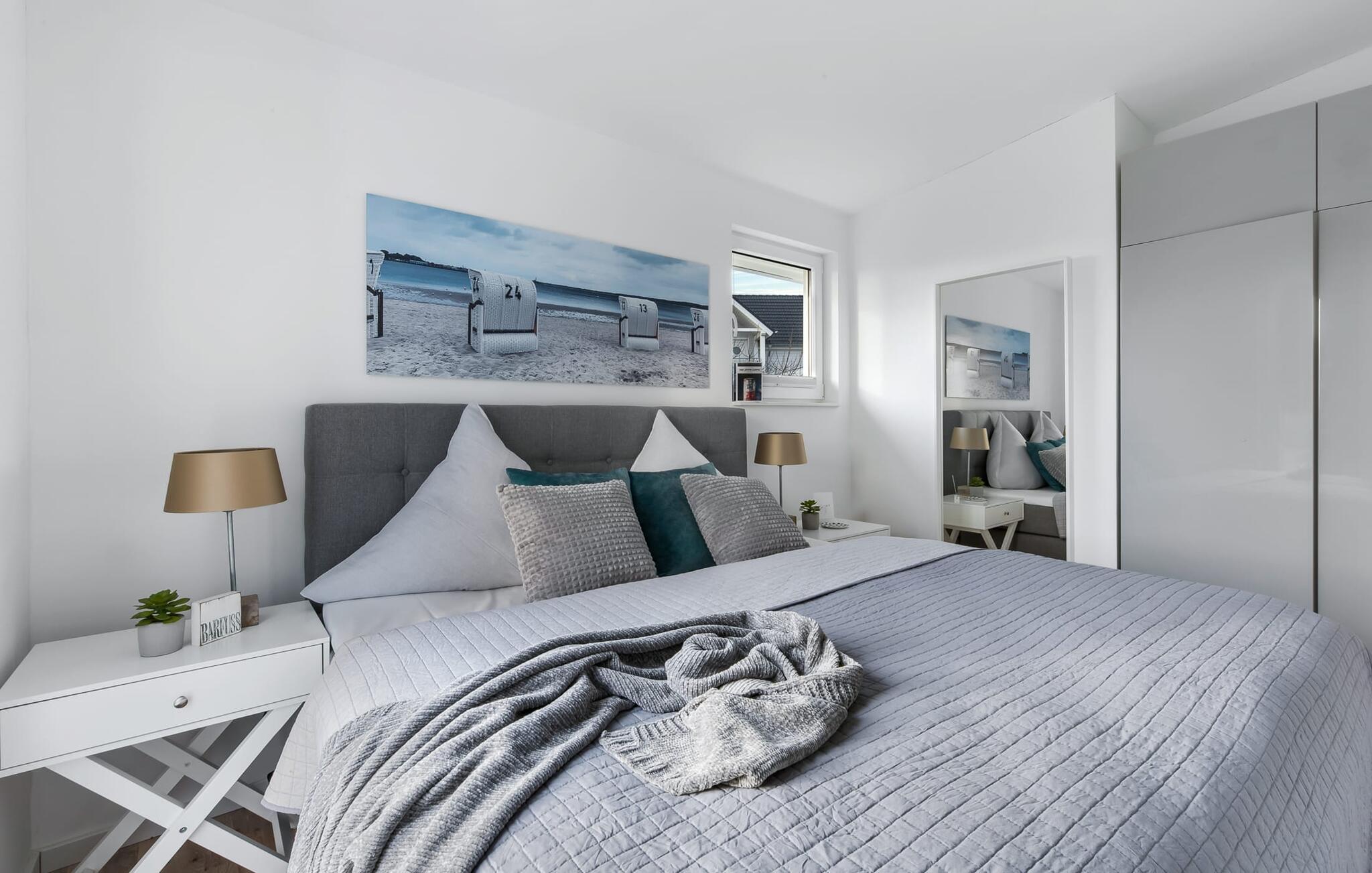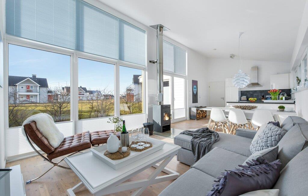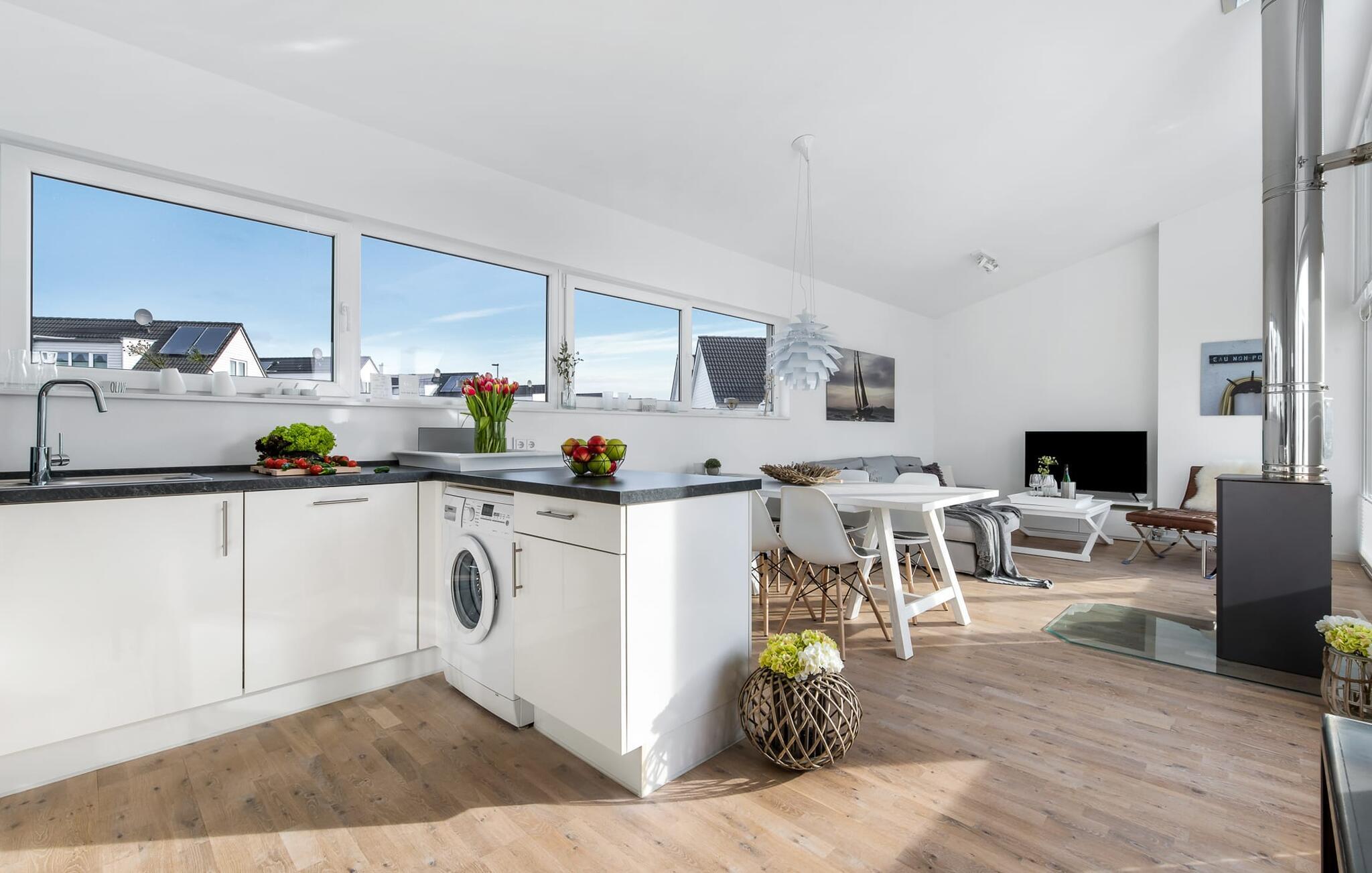 SOMMERHUS er et unikt, fritliggende sommerhus på Kaptajnens halvø, der er beregnet til fire personer. Omgivet af en stor græsplæne byder den også på masser af plads udenfor til at lege, løbe rundt eller bare lave ingenting. Den bedste beliggenhed med udsigt over havnen og den umiddelbare nærhed til stranden taler for sig selv. Både den smukt anlagte minigolfbane og sandstranden Weidefelder ligger i gåafstand og byder på variation for hele familien. Weidefelder-stranden er udstyret med strandstole, en kiosk og en restaurant og er et perfekt sted til svømning, (kite)surfing og SUP, ikke kun om sommeren. Her kan I nyde en gåtur på stranden, også når vinden suser og bølgerne bruser. Lystbådehavnen i feriestedet Olpenitz ved Østersøen som et moderne vandsportscenter og den populære havnepromenade med sine små, charmerende butikker og et velassorteret EDEKA-marked ligger i umiddelbar nærhed. Frisk fisk på havnen, bådudlejning til udflugter til Østersøen og Slien, direkte adgang til Østersøen som et perfekt sejl- og vandsportsområde, inline- og cykelture rundt i havnen eller til maleriske Kappeln lover varierede feriedage. SOMMERHUS imponerer med sit rummelige, åbne rumkoncept og indretning af høj kvalitet. Indrettet i en gennemgående smagfuld skandinavisk stil, udstråler det komfort og lethed. At ankomme her og straks føle sig godt tilpas er én ting! Den kombinerede åbne stue/spisestue med integreret køkken er oversvømmet med lys og har et venligt design takket være vinduesfronten fra gulv til loft. I stuen indbyder den store, komfortable L-formede sofa til at se tv og slappe af foran brændeovnen. Udsigten gennem vinduerne mod havnen med dens skibe, der ankommer og afgår, er stemningsfuld. Fra det højkvalitets og fuldt udstyrede lyse køkken er der udgang til den sydvestvendte træterrasse. Her inviterer en grill, moderne havemøbler og en parasol til at tilbringe ubekymrede timer udendørs. Havtornhække beskytter jer mod vind og nysgerrige øjne. De to soveværelser udstråler også hygge og varme. Udstyret med indbyggede skabe, der byder på masser af opbevaringsplads, kan gæsterne vælge mellem en dobbelt boxmadras eller to enkelt boxmadrasser. I kan sove og drømme afslappet i begge dele. Designerbadeværelset er jeres helt eget private wellness-område. Her venter en rummelig bruser i gulvniveau og en infrarød sauna på at forkæle gæsterne. Hvad kunne være bedre efter en solskinsdag på stranden eller en stormfuld gåtur? Med så mange faciliteter byder SOMMERHUS selvfølgelig også på to parkeringspladser og et aflåseligt cykelskur direkte ved huset. Vores favoritsted: Nyd aftensolen med en (eller måske to) afslappende sundowner på terrassen... Bemærk venligst: OstseeResort Olpenitz er meget populært, og der bygges fortsat i parken. Ikke desto mindre kan I se frem til en 5-stjernet standard og et førsteklasses ophold. Byggeaktiviteterne kommer ikke til at forstyrre jer på ferien, og derfor gives der ikke yderligere afslag i prisen.